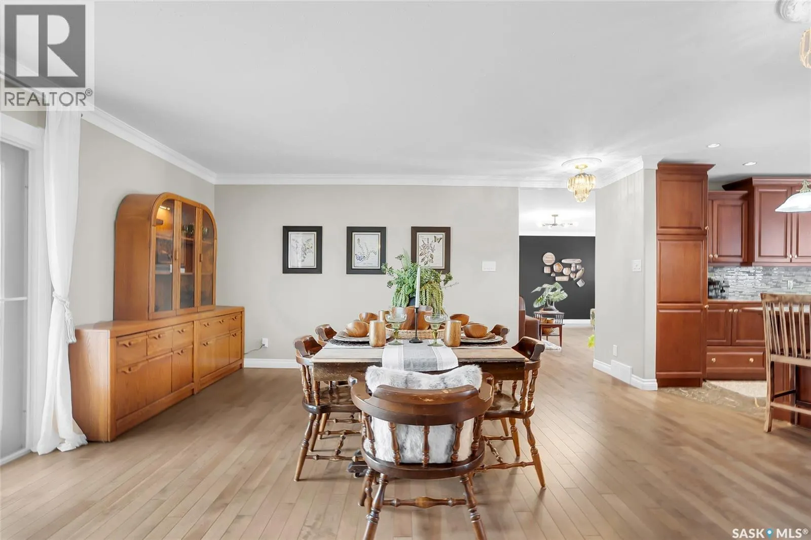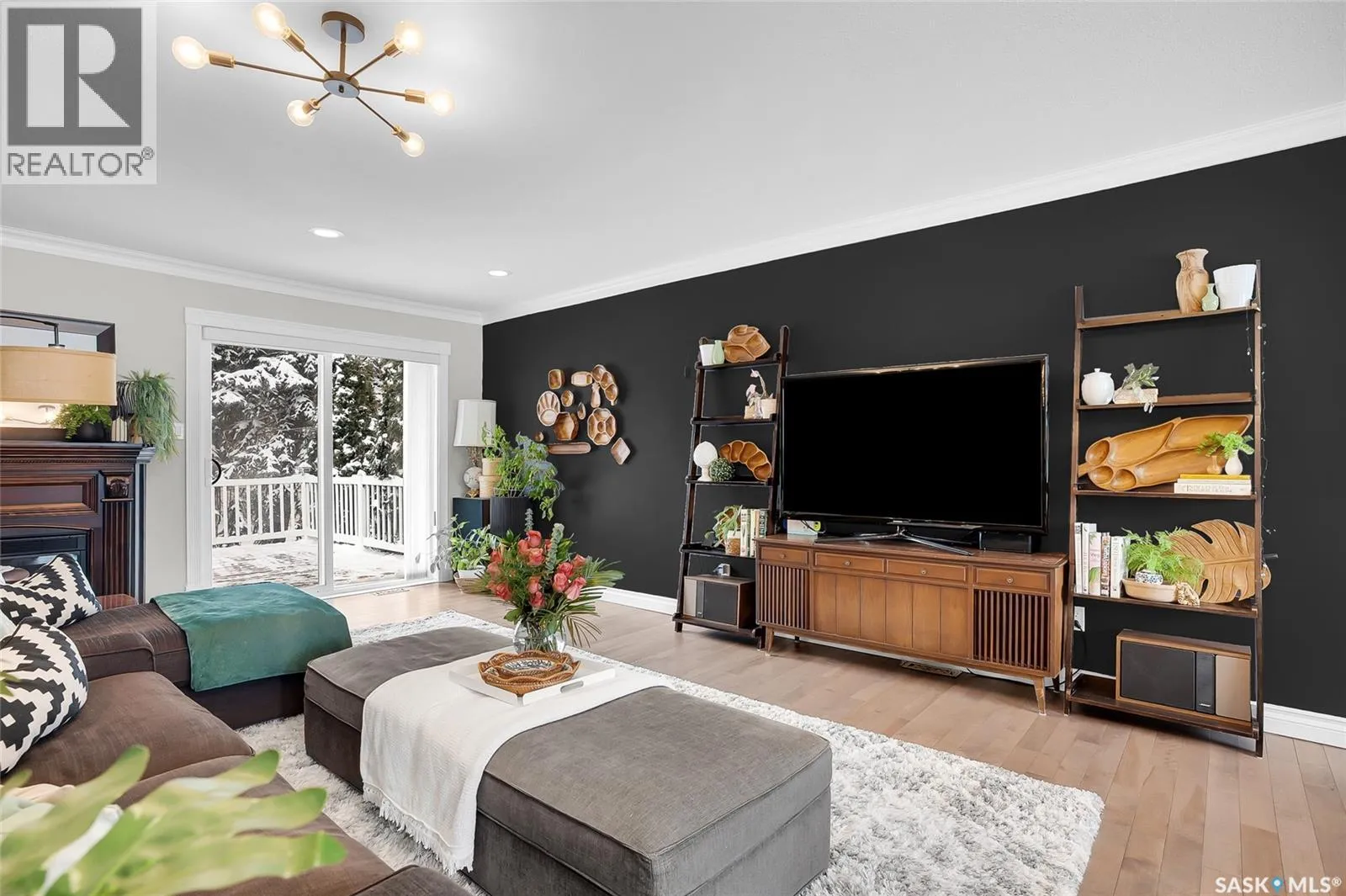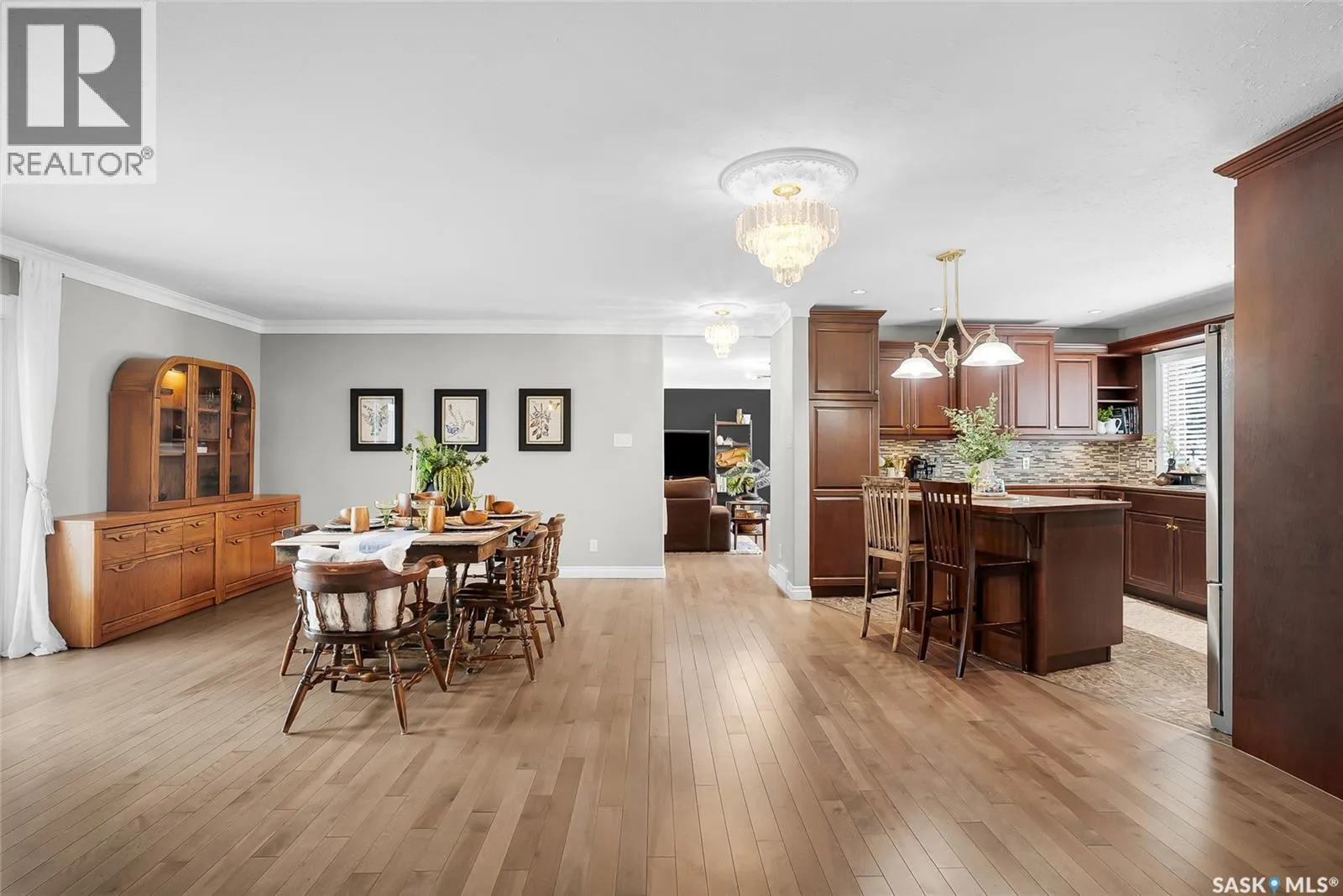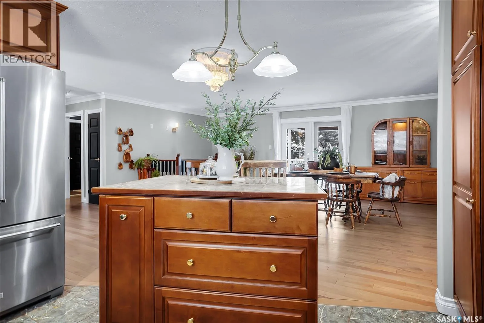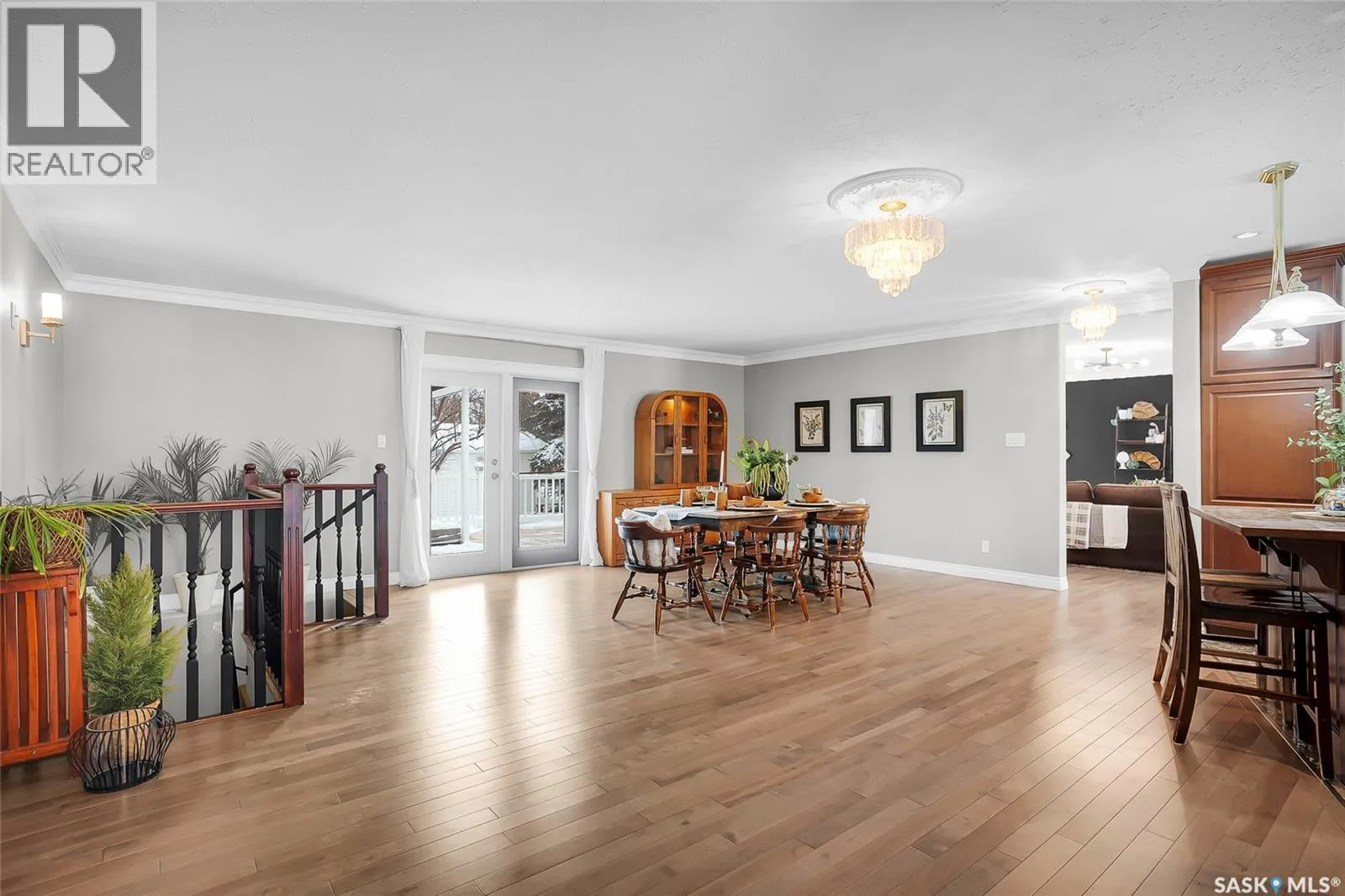 Welcome to 111 Norman Avenue in Aberdeen, where you get full on acreage energy without leaving town! Sitting on four lots wrapped in mature trees and privacy, this property feels like youâre living at the lake, yet youâre just minutes to Highway 11 for an easy commute to Warman, Saskatoon, or a quick escape north to Lakeland. This thoroughly updated bungalow brings the vibe with hardwood throughout the main floor, a bright modern 4-piece bath with updated plumbing (2025), and a primary bedroom that honestly feels like a boutique retreat â vaulted ceilings, skylight, built-in speakers, patio doors (replaced 2015) leading to the deck, plus a dreamy ensuite with soaker tub and your own dry sauna. The oversized living room (converted from the original attached garage) gives you that open, flexible space perfect for hosting, creating, or just spreading out, while the basement is wired for a projector so movie nights hit different. Major upgrades bring peace of mind: shingles redone in 2024, sewer line replaced from the town to the house (cost shared between seller and town), attic insulation topped up in 2022, plumbing updated in the kitchen in 2025, furnace tuned up with parts replaced in 2025, and appliances replaced in 2014 (fridge updated in 2016). With central air and thoughtful improvements throughout, this home is truly move-in readyâ¦.but the real flex? Two detached garages (single and double), with 220 power in the single garage, two driveways, nine off-street parking spots, RV parking, and endless room for hobbies, side hustles, car builds, boats, trailers, and all the toys. The massive back deck and private yard make everyday life feel like a weekend getaway. If youâve been craving space, freedom, and a slower pace without sacrificing connection, this is that rare small-town lifestyle upgrade that just makes sense. (id:27476)