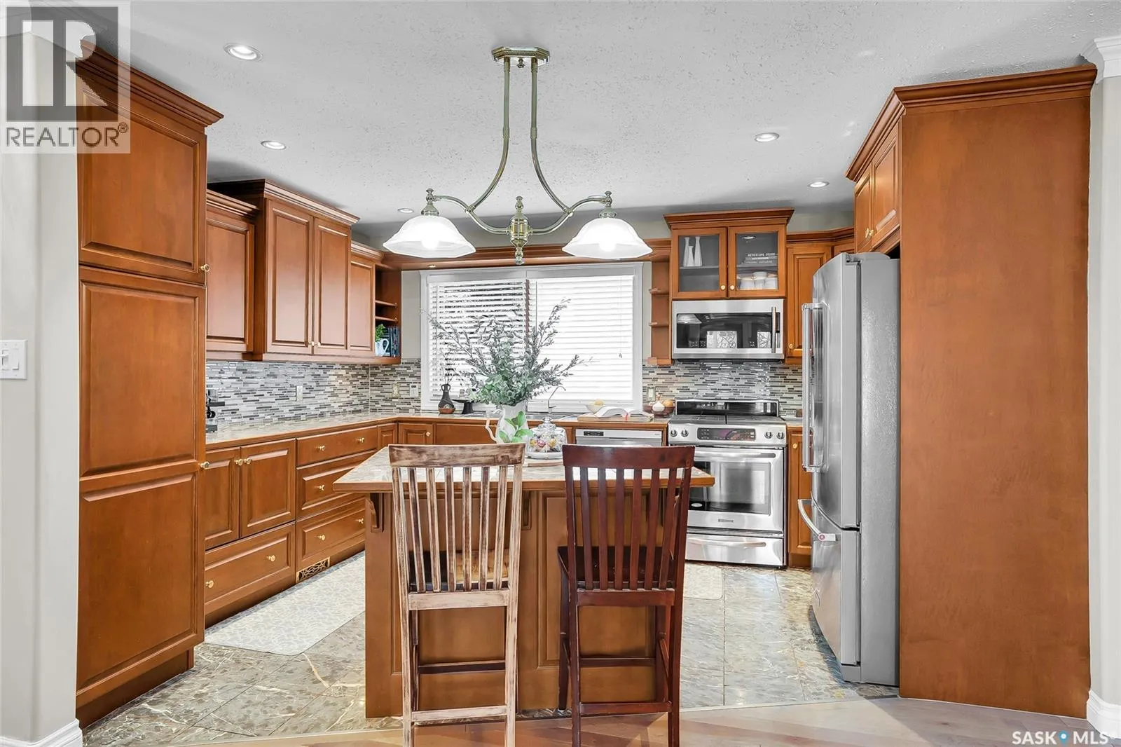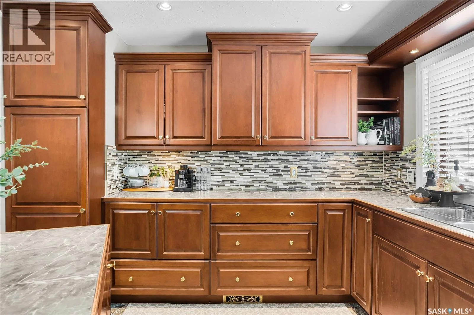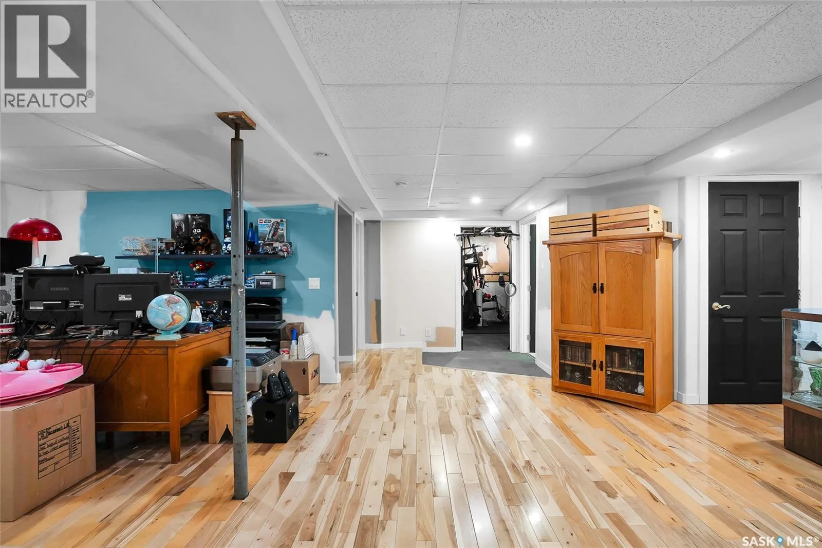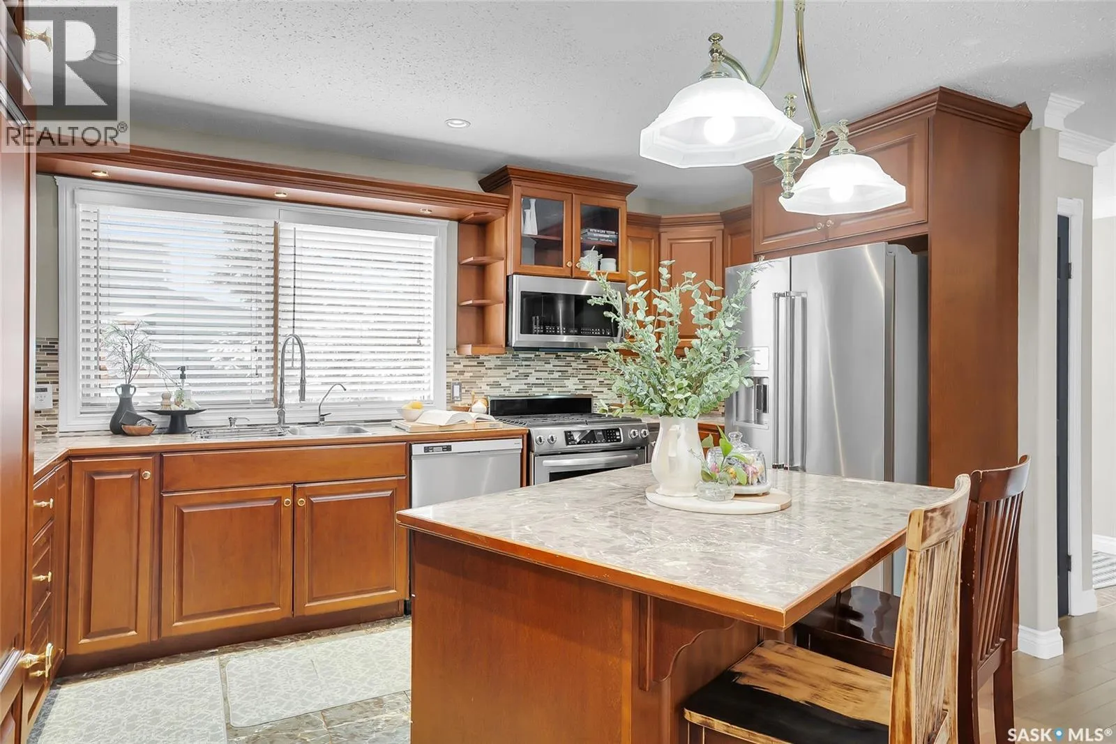 Welcome to 111 Norman Avenue in Aberdeen, where you get full on acreage energy without leaving town! Sitting on four lots wrapped in mature trees and privacy, this property feels like youâre living at the lake, yet youâre just minutes to Highway 11 for an easy commute to Warman, Saskatoon, or a quick escape north to Lakeland. This thoroughly updated bungalow brings the vibe with hardwood throughout the main floor, a bright modern 4-piece bath with updated plumbing (2025), and a primary bedroom that honestly feels like a boutique retreat â vaulted ceilings, skylight, built-in speakers, patio doors (replaced 2015) leading to the deck, plus a dreamy ensuite with soaker tub and your own dry sauna. The oversized living room (converted from the original attached garage) gives you that open, flexible space perfect for hosting, creating, or just spreading out, while the basement is wired for a projector so movie nights hit different. Major upgrades bring peace of mind: shingles redone in 2024, sewer line replaced from the town to the house (cost shared between seller and town), attic insulation topped up in 2022, plumbing updated in the kitchen in 2025, furnace tuned up with parts replaced in 2025, and appliances replaced in 2014 (fridge updated in 2016). With central air and thoughtful improvements throughout, this home is truly move-in readyâ¦.but the real flex? Two detached garages (single and double), with 220 power in the single garage, two driveways, nine off-street parking spots, RV parking, and endless room for hobbies, side hustles, car builds, boats, trailers, and all the toys. The massive back deck and private yard make everyday life feel like a weekend getaway. If youâve been craving space, freedom, and a slower pace without sacrificing connection, this is that rare small-town lifestyle upgrade that just makes sense. (id:27476)