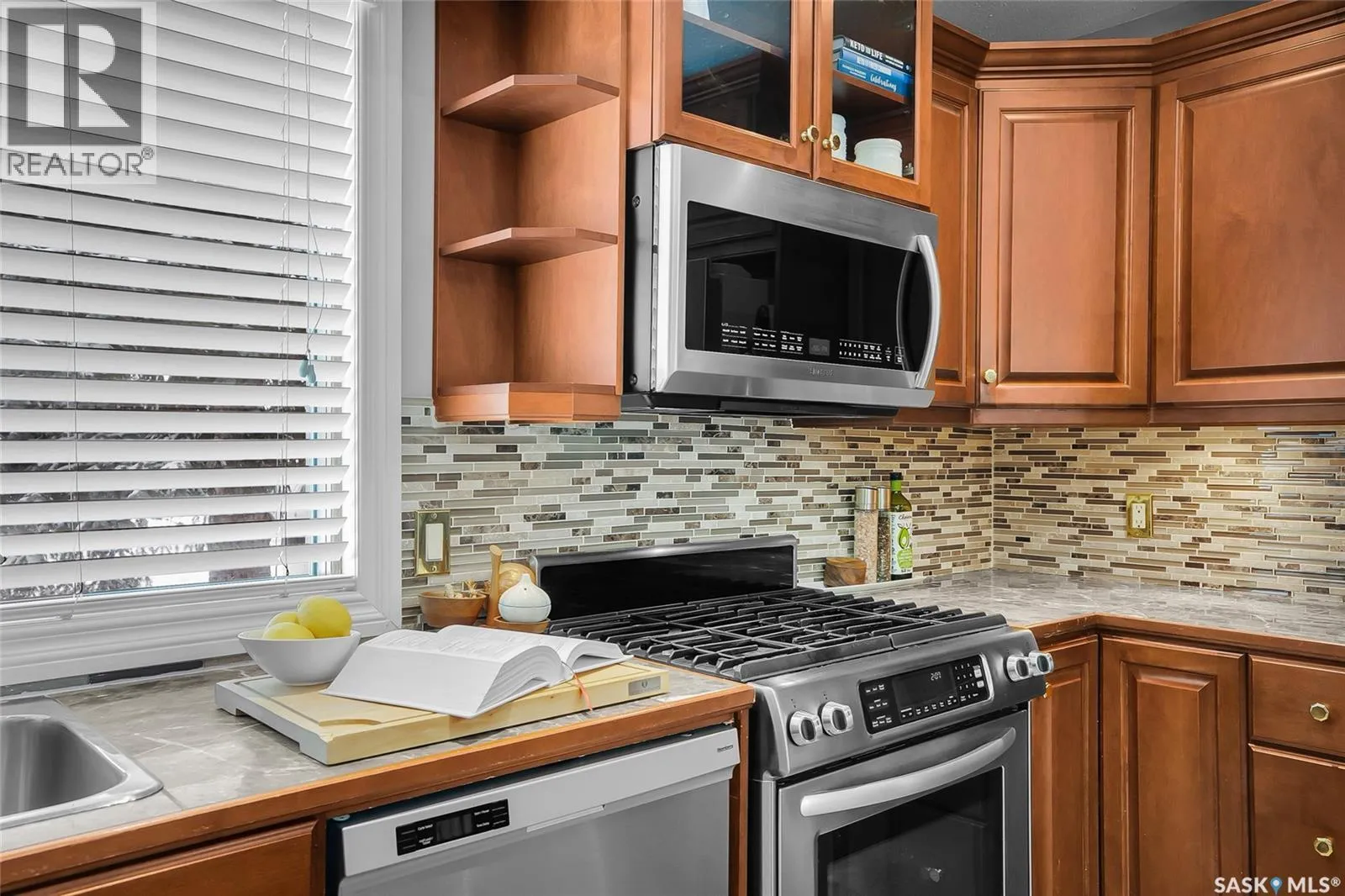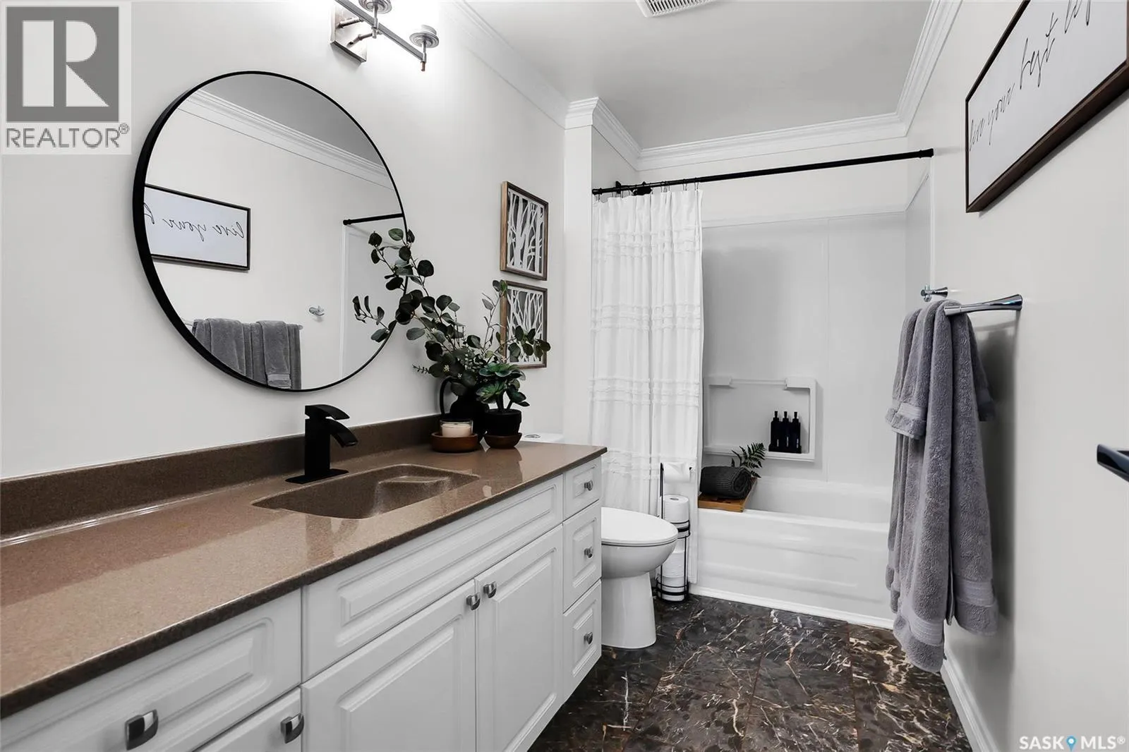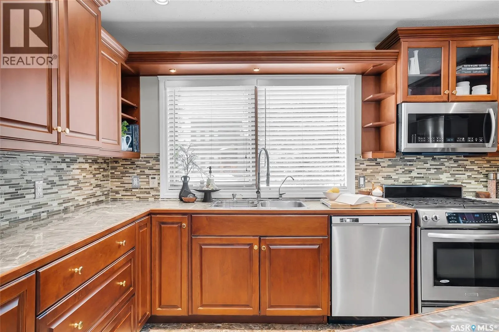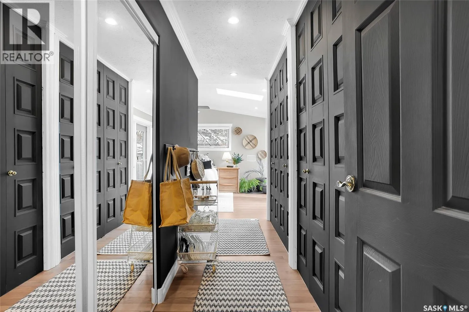 Welcome to 111 Norman Avenue in Aberdeen, where you get full on acreage energy without leaving town! Sitting on four lots wrapped in mature trees and privacy, this property feels like youâre living at the lake, yet youâre just minutes to Highway 11 for an easy commute to Warman, Saskatoon, or a quick escape north to Lakeland. This thoroughly updated bungalow brings the vibe with hardwood throughout the main floor, a bright modern 4-piece bath with updated plumbing (2025), and a primary bedroom that honestly feels like a boutique retreat â vaulted ceilings, skylight, built-in speakers, patio doors (replaced 2015) leading to the deck, plus a dreamy ensuite with soaker tub and your own dry sauna. The oversized living room (converted from the original attached garage) gives you that open, flexible space perfect for hosting, creating, or just spreading out, while the basement is wired for a projector so movie nights hit different. Major upgrades bring peace of mind: shingles redone in 2024, sewer line replaced from the town to the house (cost shared between seller and town), attic insulation topped up in 2022, plumbing updated in the kitchen in 2025, furnace tuned up with parts replaced in 2025, and appliances replaced in 2014 (fridge updated in 2016). With central air and thoughtful improvements throughout, this home is truly move-in readyâ¦.but the real flex? Two detached garages (single and double), with 220 power in the single garage, two driveways, nine off-street parking spots, RV parking, and endless room for hobbies, side hustles, car builds, boats, trailers, and all the toys. The massive back deck and private yard make everyday life feel like a weekend getaway. If youâve been craving space, freedom, and a slower pace without sacrificing connection, this is that rare small-town lifestyle upgrade that just makes sense. (id:27476)