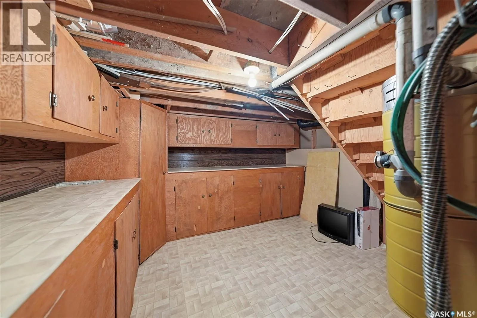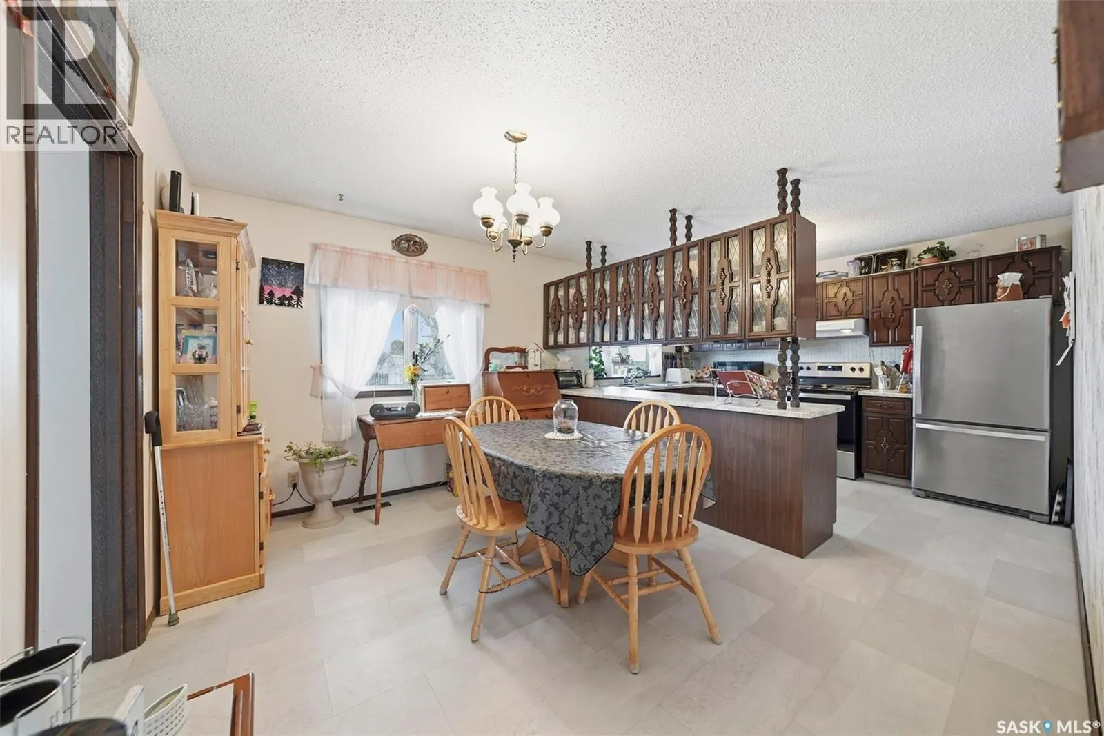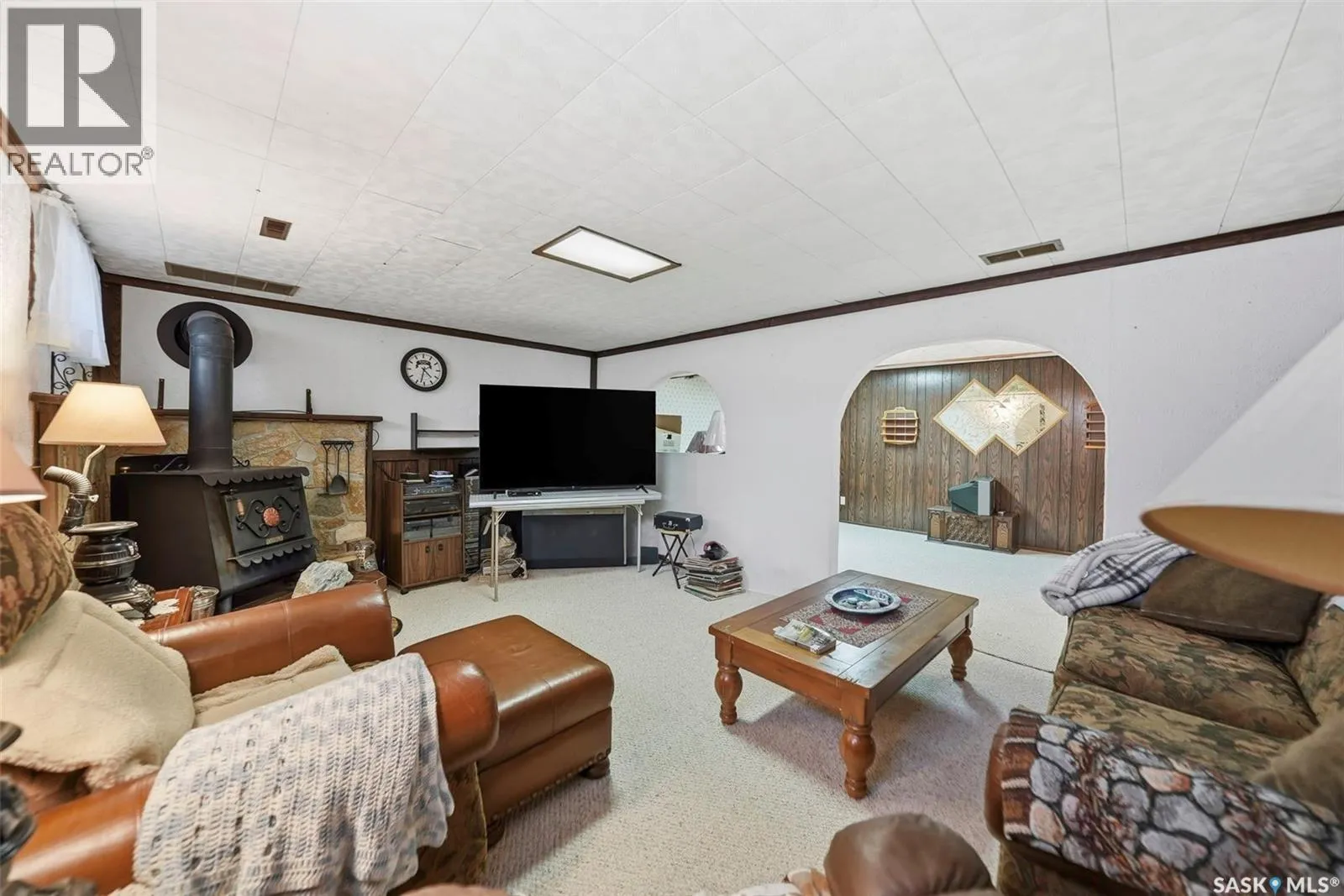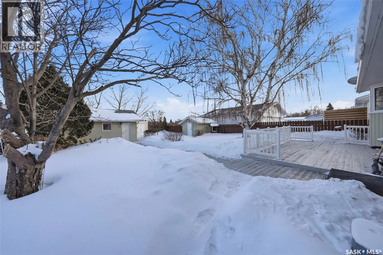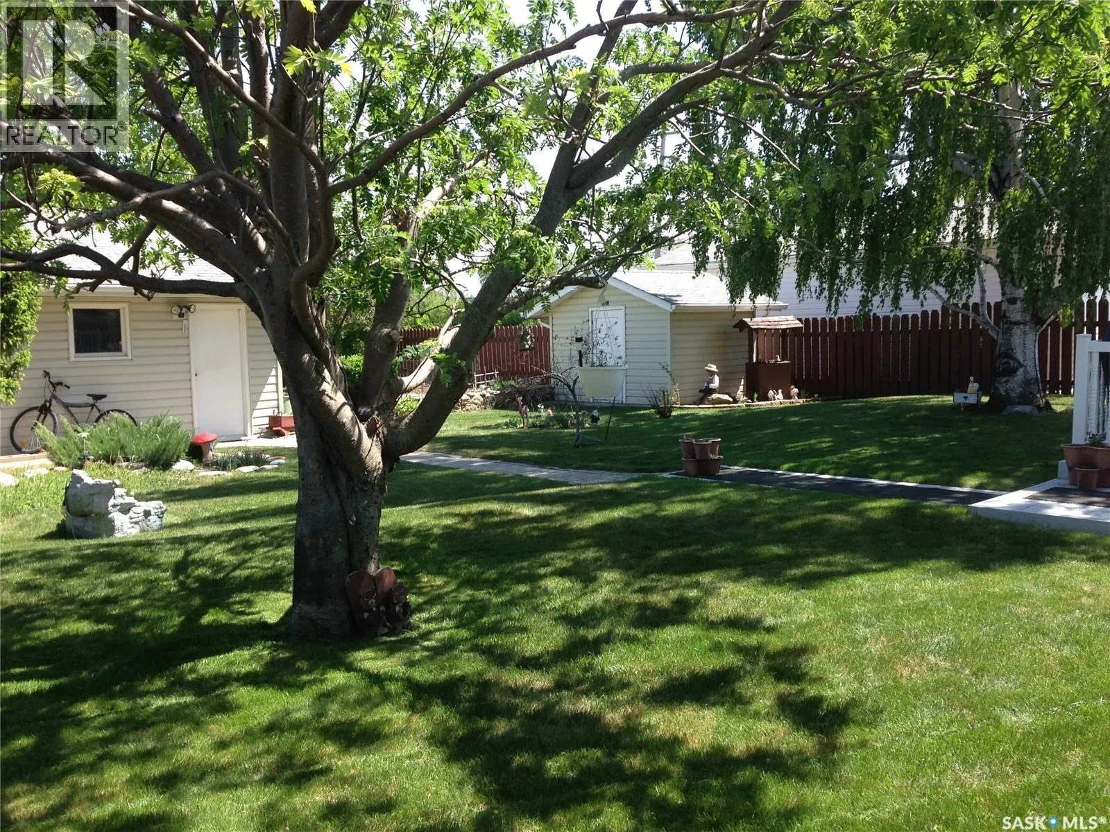 Just 35 minutes from Saskatoon, this solid bungalow in Allan gives you that small-town pace without giving up easy city access. Sitting on a corner lot and backing onto green space, the setting alone is hard to beat. The home has already had many of the big ticket items taken care of. Shingles were replaced in 2025, thereâs a new water heater 2025, furnace and central A/C were both updated in 2024, and newer windows. Inside, youâll notice updated countertops and vinyl plank flooring in parts of the main floor that help give the home a fresh feel. The layout is practical and comfortable, featuring main floor laundry and a back mudroom/foyer thatâs perfect for boots, coats, and everyday Saskatchewan living. The fully finished basement adds great extra living space with a cozy wood-burning fireplace. Thereâs also a den downstairs that could work well as an office, hobby room, or guest space. Outside is where this property really stands out. The huge, fully fenced yard backs onto park space and is filled with mature trees, garden areas, deck, and sheds for extra storage. Youâll love the double detached garage, plus an additional heated room thatâs ideal for a workshop or extra storage. Interlocking brick walkways connect the front and backyard and add great curb appeal. If youâve been looking for a move in ready home on a large lot in Allan, this one is definitely worth a look. (id:27476)