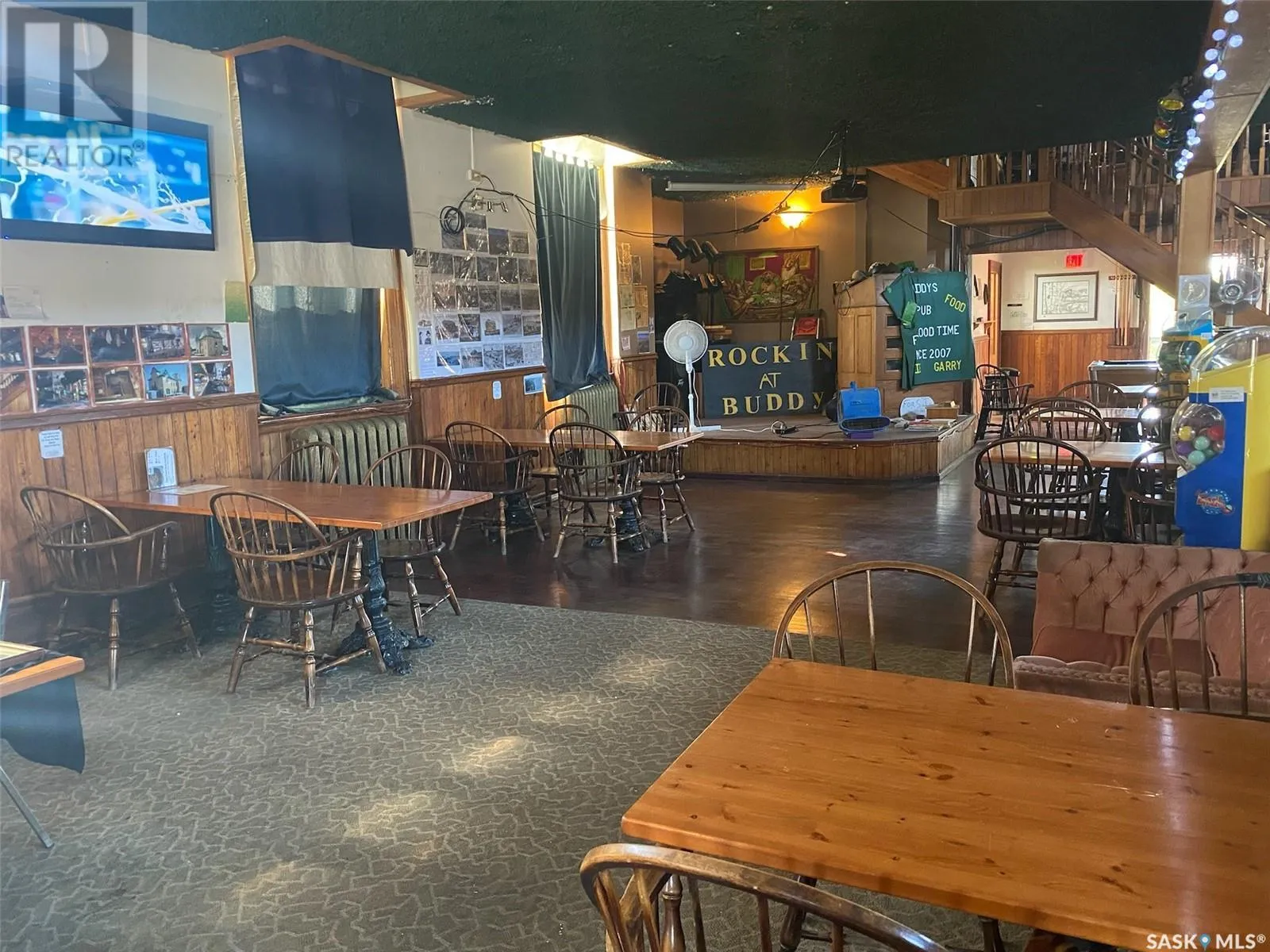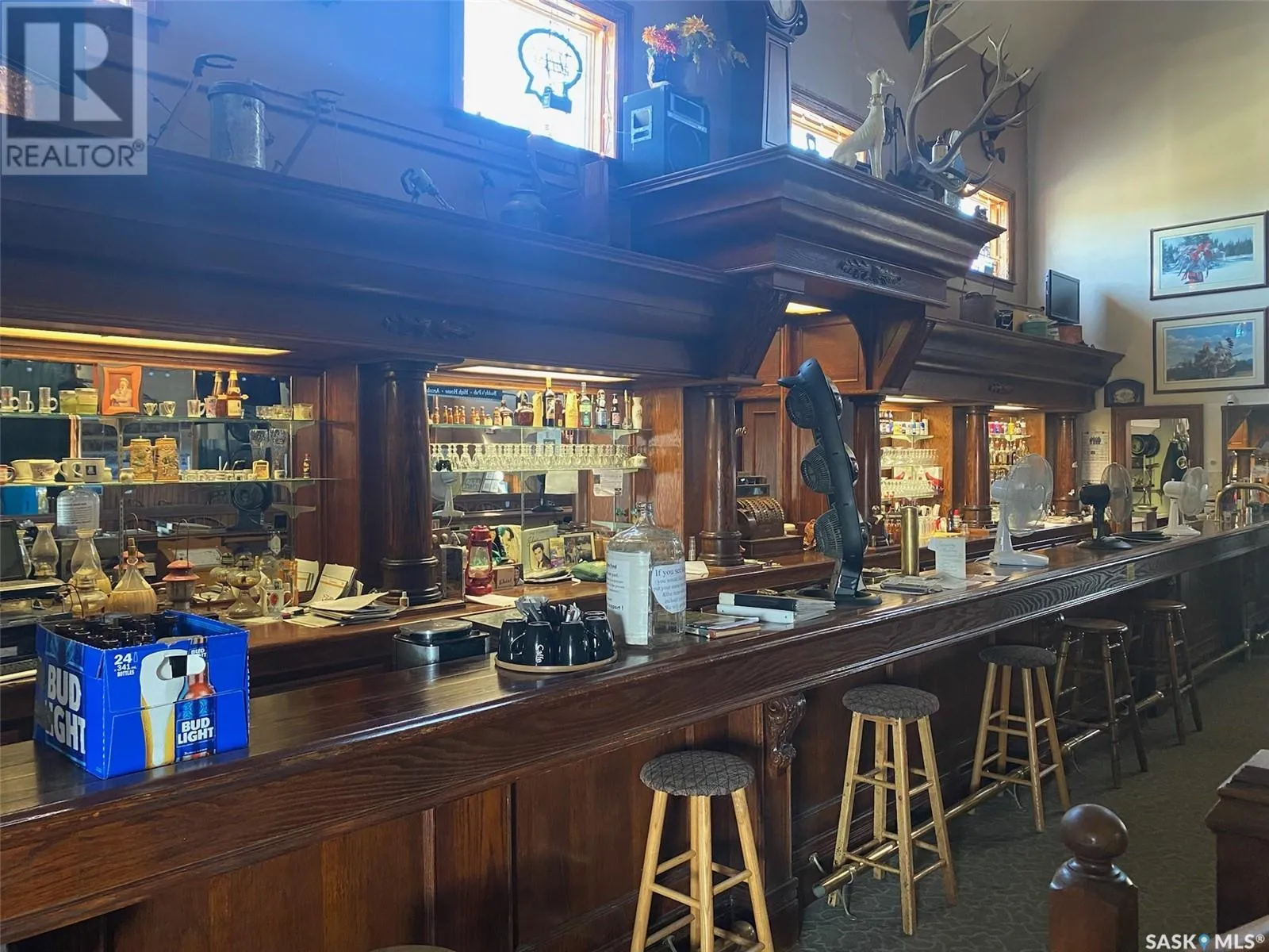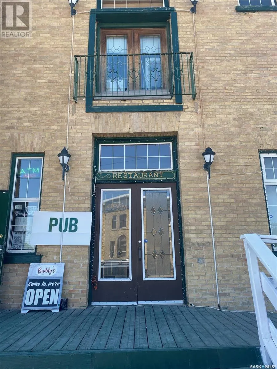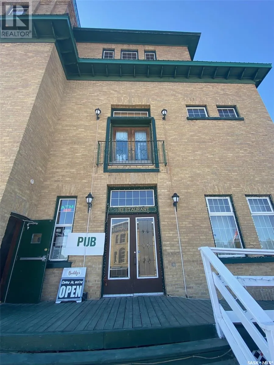 Exceptional opportunity to own a historic brick and stone building with an established business in the thriving and friendly town of Arcola, Saskatchewan. Known as the 'Opera House" and "High House" this solid brick building was constructed in 1905 of local brick in an unadorned version of the Queen Anne style. It served as first consolidated location for many municipal services, including the fire hall, jail, and town offices, as well as an opera hall located under a 2-storey high vaulted ceiling on the second floor. One of the original jail cells is still in the basement. The building was renovated in 1991 as a restaurant and saloon with one of the longest bars in Western Canada and is now home to Buddy's Pub. Income is generated through Buddy's Pub and 3 VLTs but there is also potential income from the main floor space that has commercial kitchen and dining space. Included with the sale on the same lot is a 40'x40' insulated and heated shop that could also be leased out for additional income. This place is a must see. (id:27476)
