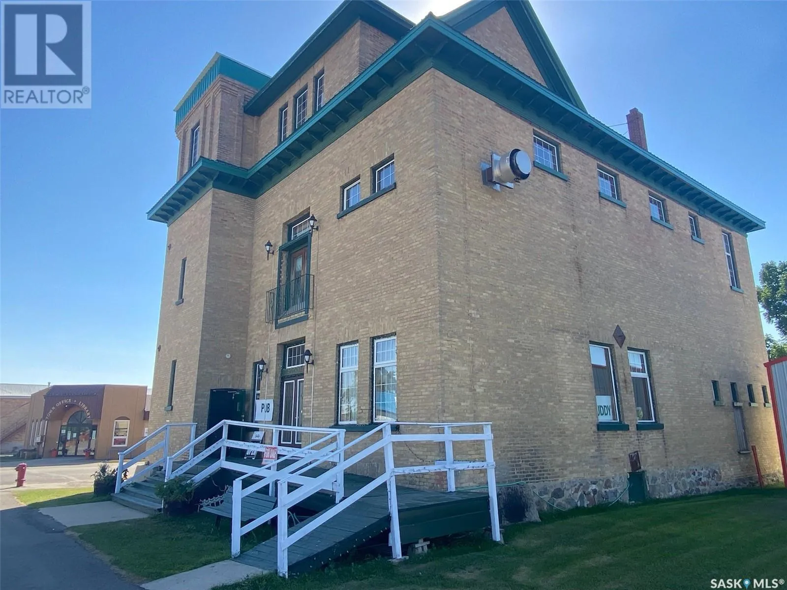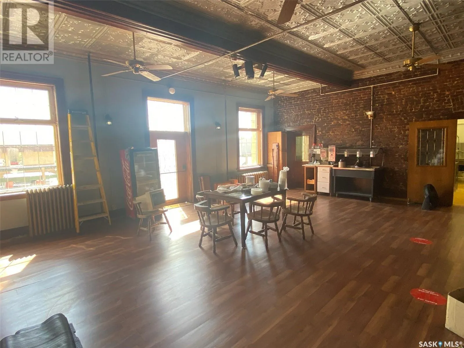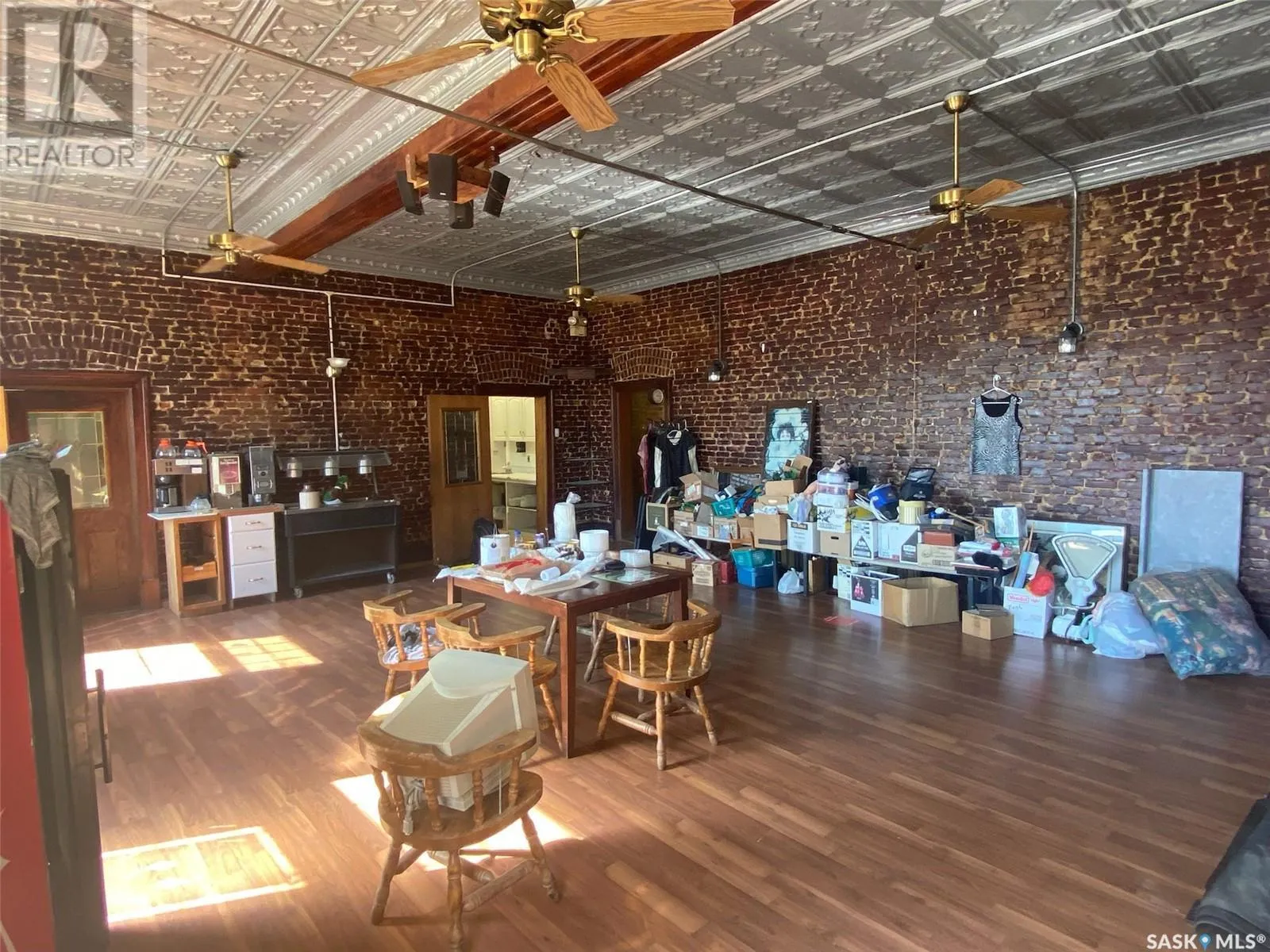Exceptional opportunity to own a historic brick and stone building with an established business in the thriving and friendly town of Arcola, Saskatchewan. Known as the 'Opera House" and "High House" this solid brick building was constructed in 1905 of local brick in an unadorned version of the Queen Anne style. It served as first consolidated location for many municipal services, including the fire hall, jail, and town offices, as well as an opera hall located under a 2-storey high vaulted ceiling on the second floor. One of the original jail cells is still in the basement. The building was renovated in 1991 as a restaurant and saloon with one of the longest bars in Western Canada and is now home to Buddy's Pub. Income is generated through Buddy's Pub and 3 VLTs but there is also potential income from the main floor space that has commercial kitchen and dining space. Included with the sale on the same lot is a 40'x40' insulated and heated shop that could also be leased out for additional income. This place is a must see. (id:27476)