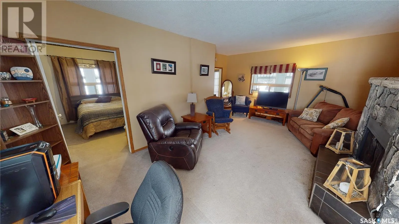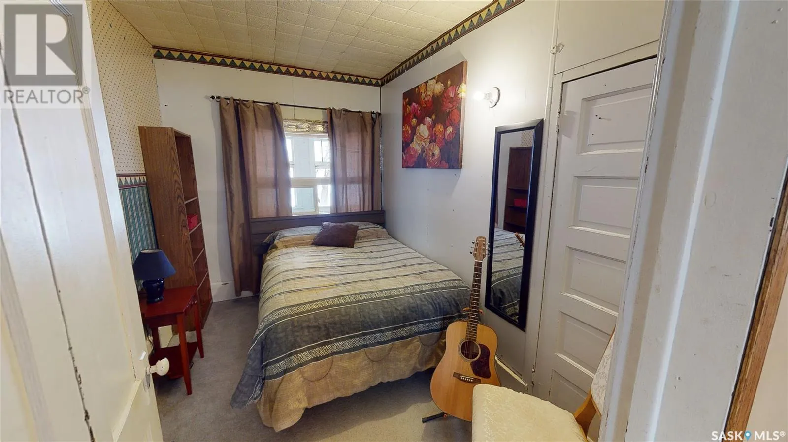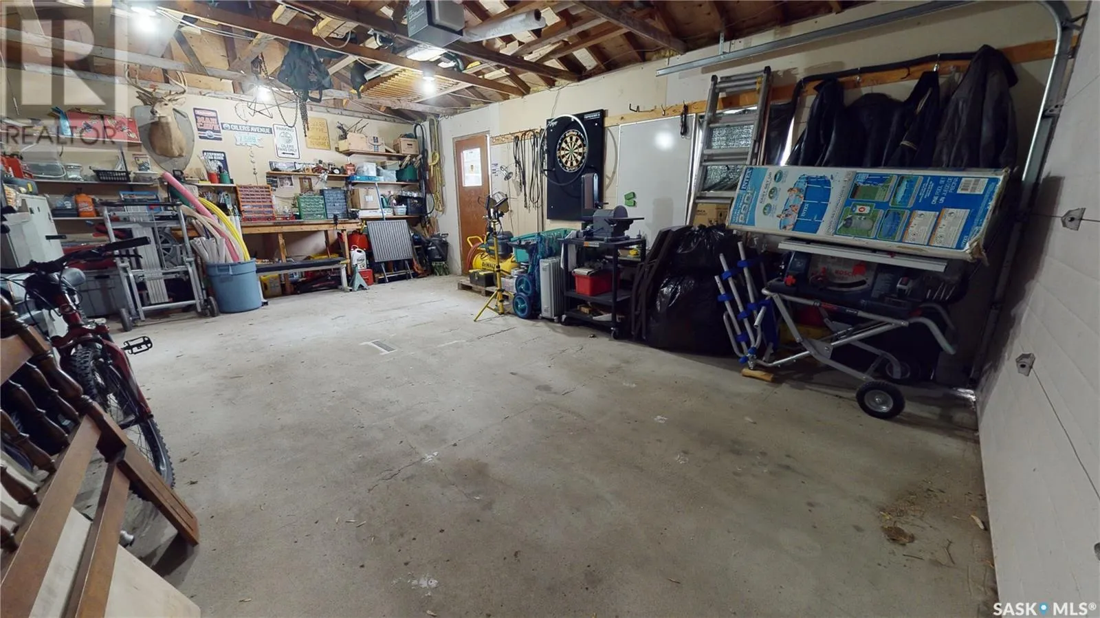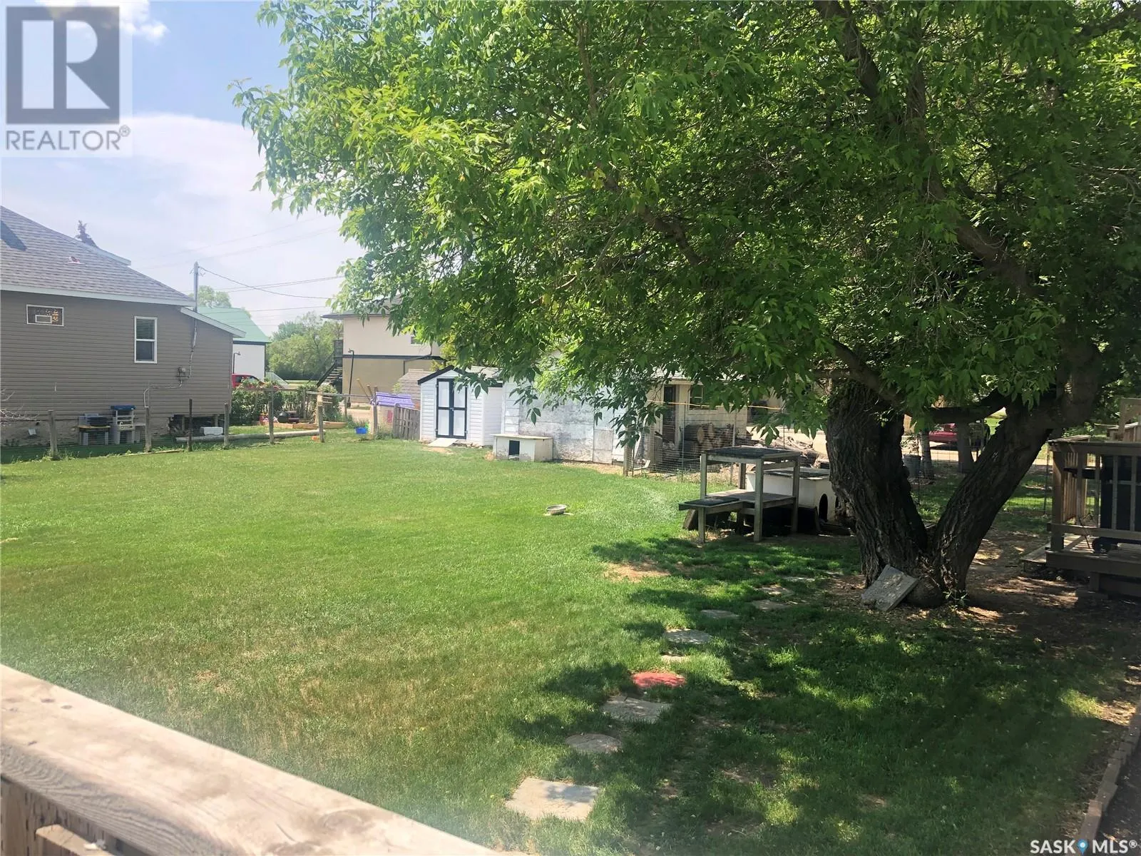 Discover the warmth and charm of this four-bedroom, 1.5 bath Character Home situated on two lots with front and back garages. Step into the inviting wraparound enclosed veranda as you enter into the house. A corner staircase leads you to the 2nd level with 3 bedrooms and a full 4pc bathroom accessible directly from two of the bedrooms. Unwind in the cozy living room complete with a wood-burning fireplace and access to the 4th Floor Bedroom on the Main Level. Proceed through the living room into the dining room and kitchen with windows facing the back yard & deck plus a back door from the kitchen leading right into the fully fenced part of the yard. The kitchen also accesses the conveniently located Laundry Room plus the floor access to the cellar that includes the Gas Furnace and other Utilities. Outside, the yard offers endless possibilities with a treated wood back deck, trees for shade, back garage & shed plus a concrete patio - perfect for a Fire Pit or other backyard activity. The North side of the property is shaded by mature trees, while a greenspace and community playground sit just across the street adding to the home's appeal and central location to the town's amenities include Hospital, K-12 School and Downtown. From the Street front there is plenty of parking on the gravel driveway, along the front fence and in front of the 16 x 24 Garage built in 1995. This home comes complete with a Fridge, Stove, Washer, Dryer, Wall Air Conditioner, Water Softener and Sump Pump. Singles Updated in 2015. Experience it all firsthand with the enclosed 3D Virtual Tour of the property's interior or contact a Realtor for a private viewing! (id:27476)