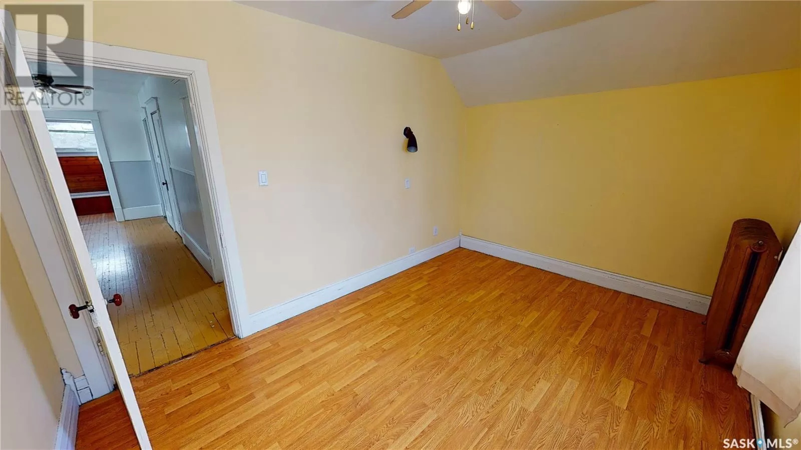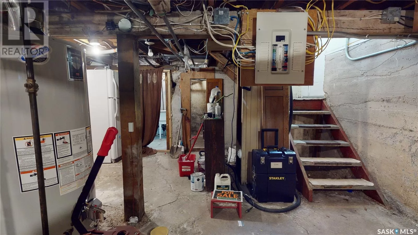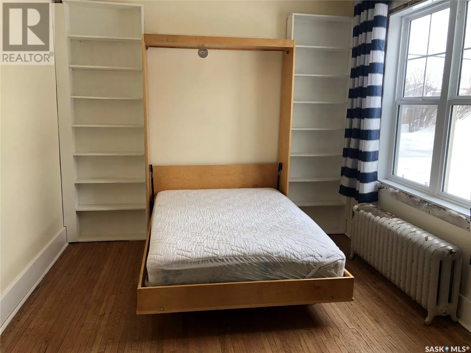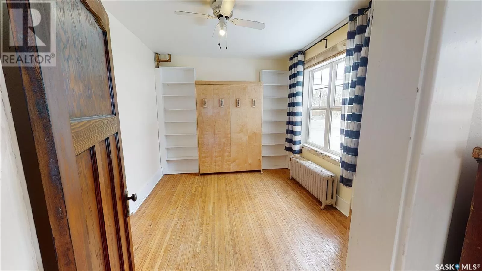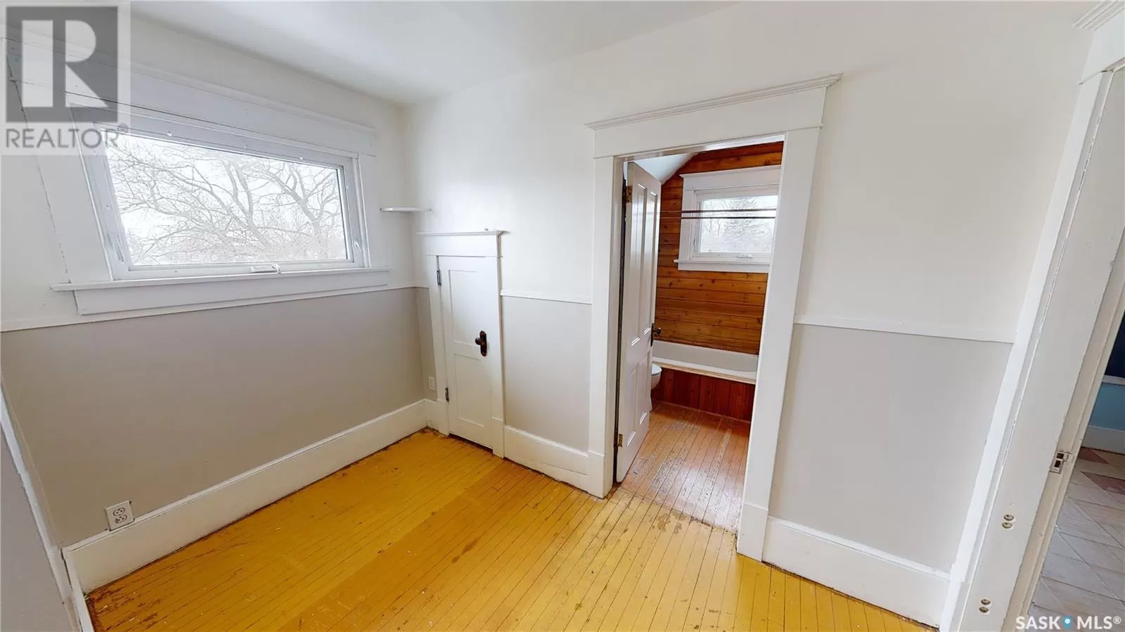 SPACIOUS CHARACTER HOME - 4 BEDROOMS, 2 BATHS, ENCLOSED ORIGINAL SUNROOM - over 1700 sq.ft on a full concrete/masonry foundation. This home has lots of character with original solid wood doors, baseboards/casing, wood floors, good size bedrooms with walk-in closets, L-Shaped upstairs landing with plenty of storage spaces and character features. UPDATES: Fiberglass Shingles (2014); Gas Water Heater (Sept/2020); 100 Amp Panel (electrical inspection completed Nov 2021), Majority of Windows updated to Vinyl, Exterior Cold & Hot Water Taps plus a bonus Soft Water Tap; treated wood side deck. Main Floor - front entry off the sunroom leads to the corner living room; central original staircase accessed from the living room and the kitchen with close access to the dining room & Main Floor Bedroom (office space) that has built-in shelving with Murphy Bed included. Large Kitchen with oak cabinets leads to the 4pc bathroom and to a bonus room currently used for laundry but with space to turn into a pantry/storage. The Back door leads to the kitchen and to the basement. Basement has utility room, storage room, wine making room with Utility sink and lined with galvanized metal walls, plus a large open room with some built-in shelving. The Back yard is partially fenced with parking off the back alley, attached garage has been rewired and currently used just for storage, front yard has a nice cherry tree, grapes, small play house/sand box are near the side deck, small deck off the sunroom. INCLUDES: Fridge, Store, Hood Range, Dishwasher, Washer & Dryer, Dehumidifier, Portable Air Conditioner, Storage Shed. This charming home is worth a view, check out the attached 3D Matterport Tour and contact your realtor for a viewing! (id:27476)