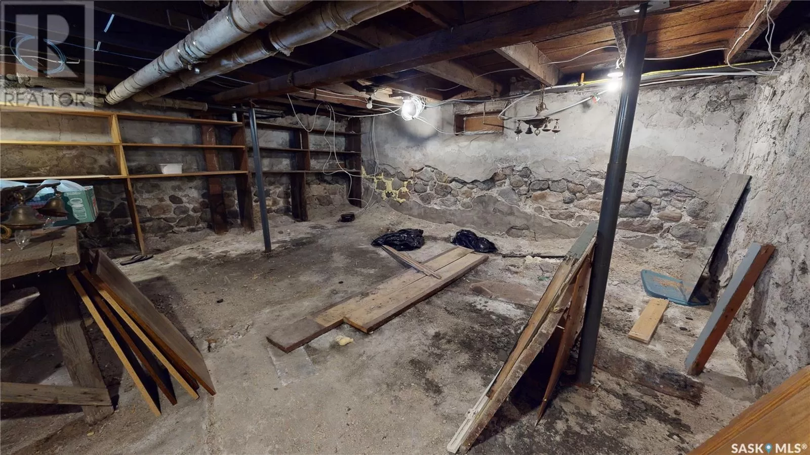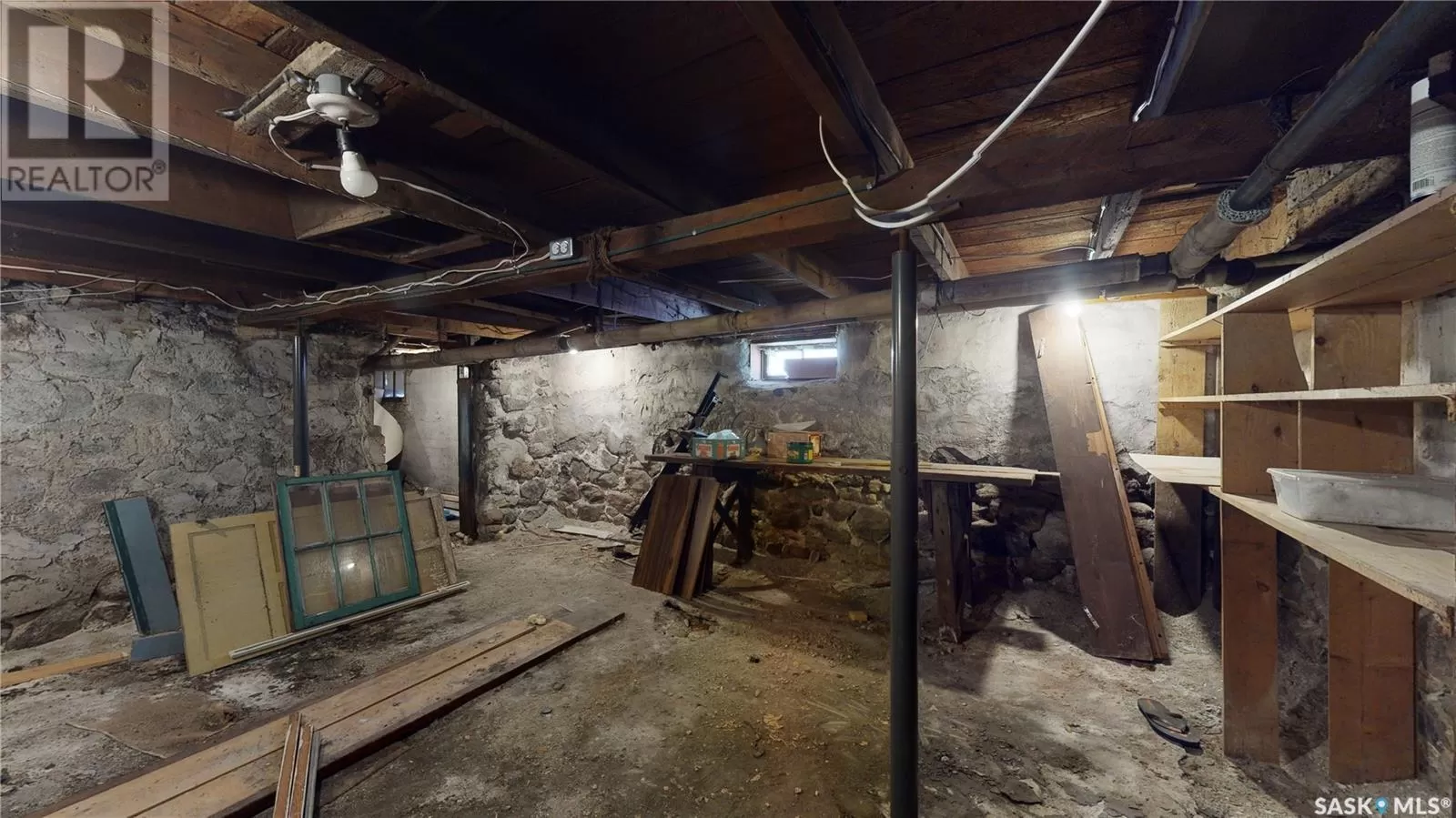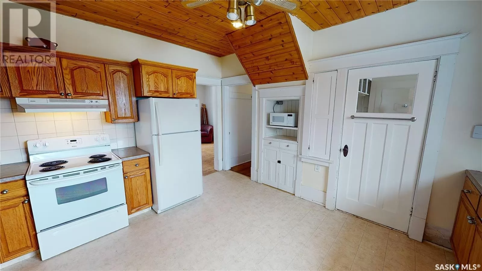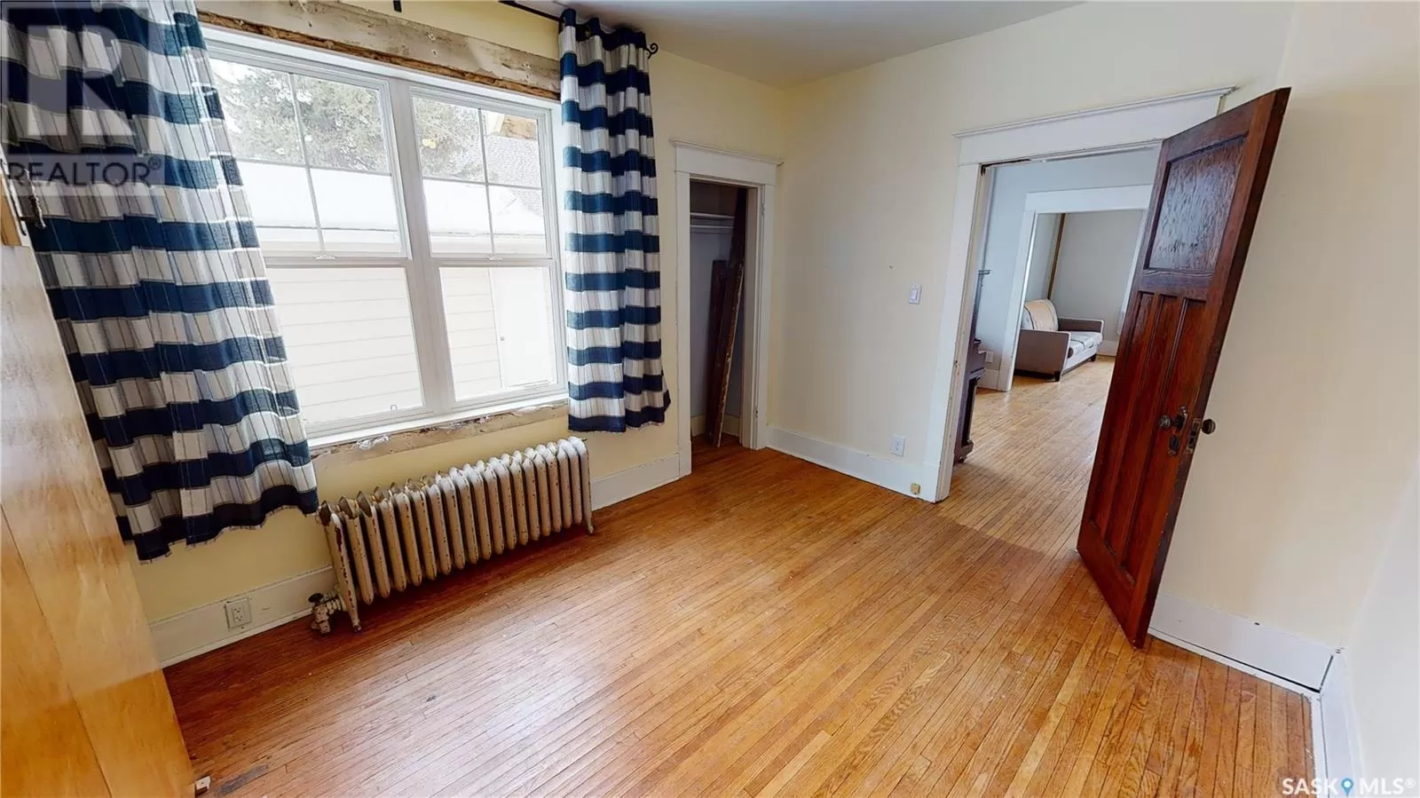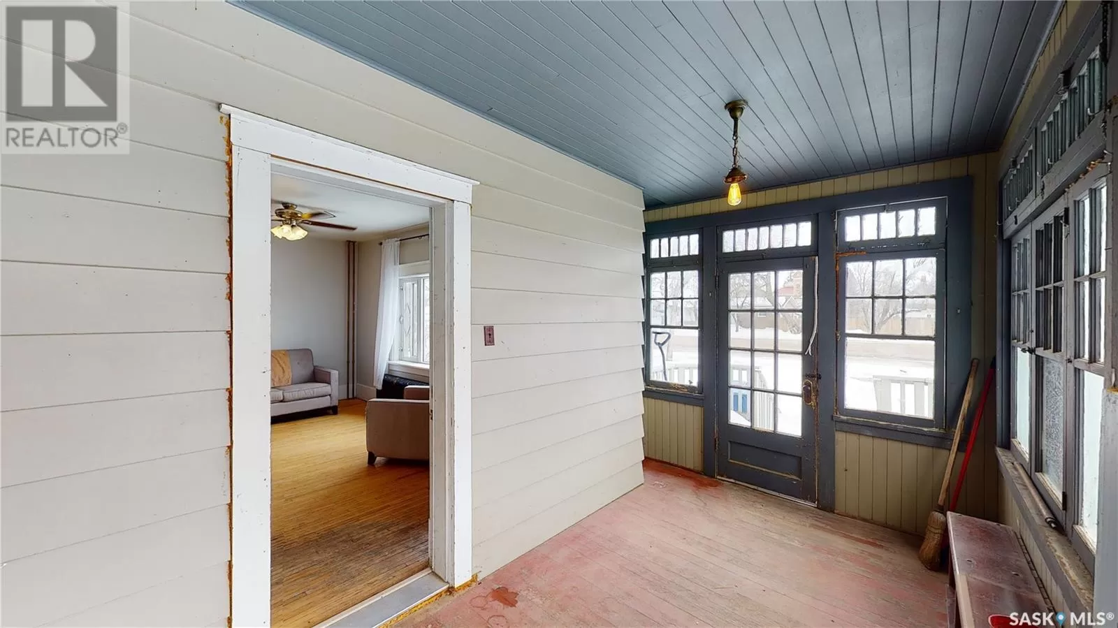 SPACIOUS CHARACTER HOME - 4 BEDROOMS, 2 BATHS, ENCLOSED ORIGINAL SUNROOM - over 1700 sq.ft on a full concrete/masonry foundation. This home has lots of character with original solid wood doors, baseboards/casing, wood floors, good size bedrooms with walk-in closets, L-Shaped upstairs landing with plenty of storage spaces and character features. UPDATES: Fiberglass Shingles (2014); Gas Water Heater (Sept/2020); 100 Amp Panel (electrical inspection completed Nov 2021), Majority of Windows updated to Vinyl, Exterior Cold & Hot Water Taps plus a bonus Soft Water Tap; treated wood side deck. Main Floor - front entry off the sunroom leads to the corner living room; central original staircase accessed from the living room and the kitchen with close access to the dining room & Main Floor Bedroom (office space) that has built-in shelving with Murphy Bed included. Large Kitchen with oak cabinets leads to the 4pc bathroom and to a bonus room currently used for laundry but with space to turn into a pantry/storage. The Back door leads to the kitchen and to the basement. Basement has utility room, storage room, wine making room with Utility sink and lined with galvanized metal walls, plus a large open room with some built-in shelving. The Back yard is partially fenced with parking off the back alley, attached garage has been rewired and currently used just for storage, front yard has a nice cherry tree, grapes, small play house/sand box are near the side deck, small deck off the sunroom. INCLUDES: Fridge, Store, Hood Range, Dishwasher, Washer & Dryer, Dehumidifier, Portable Air Conditioner, Storage Shed. This charming home is worth a view, check out the attached 3D Matterport Tour and contact your realtor for a viewing! (id:27476)