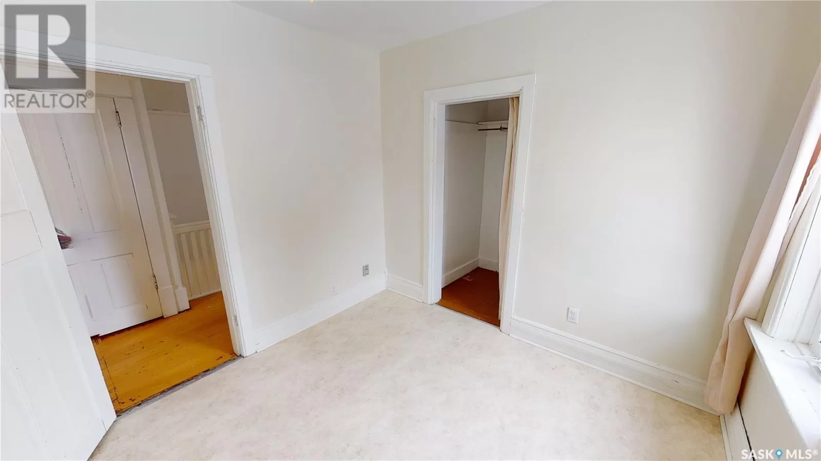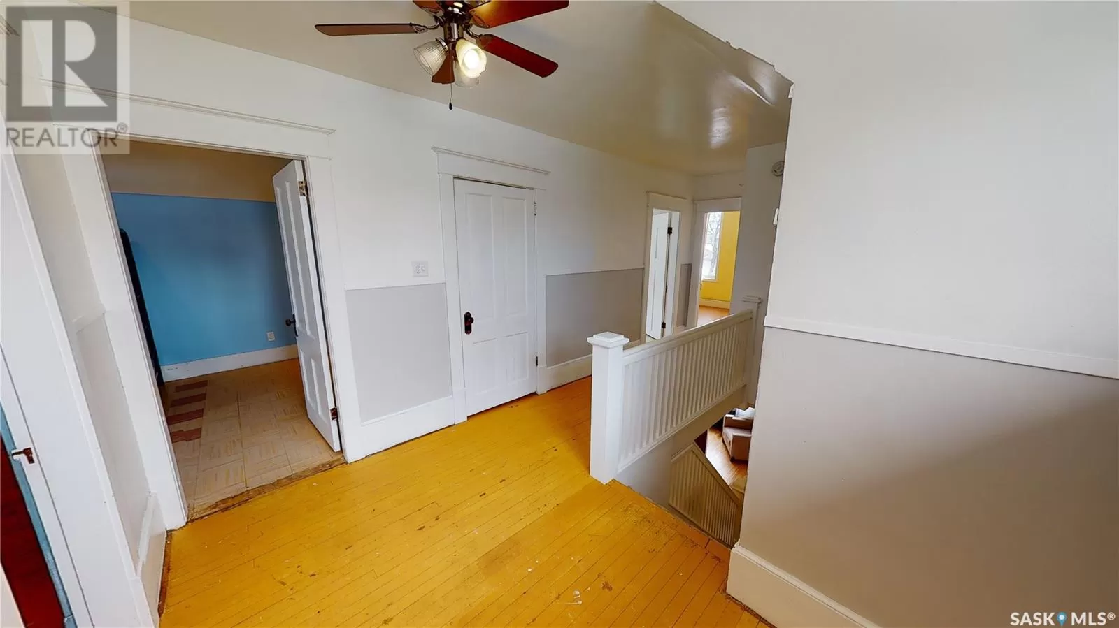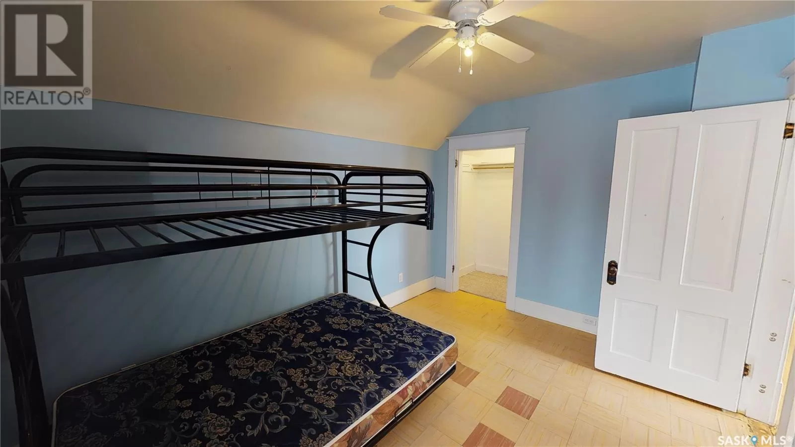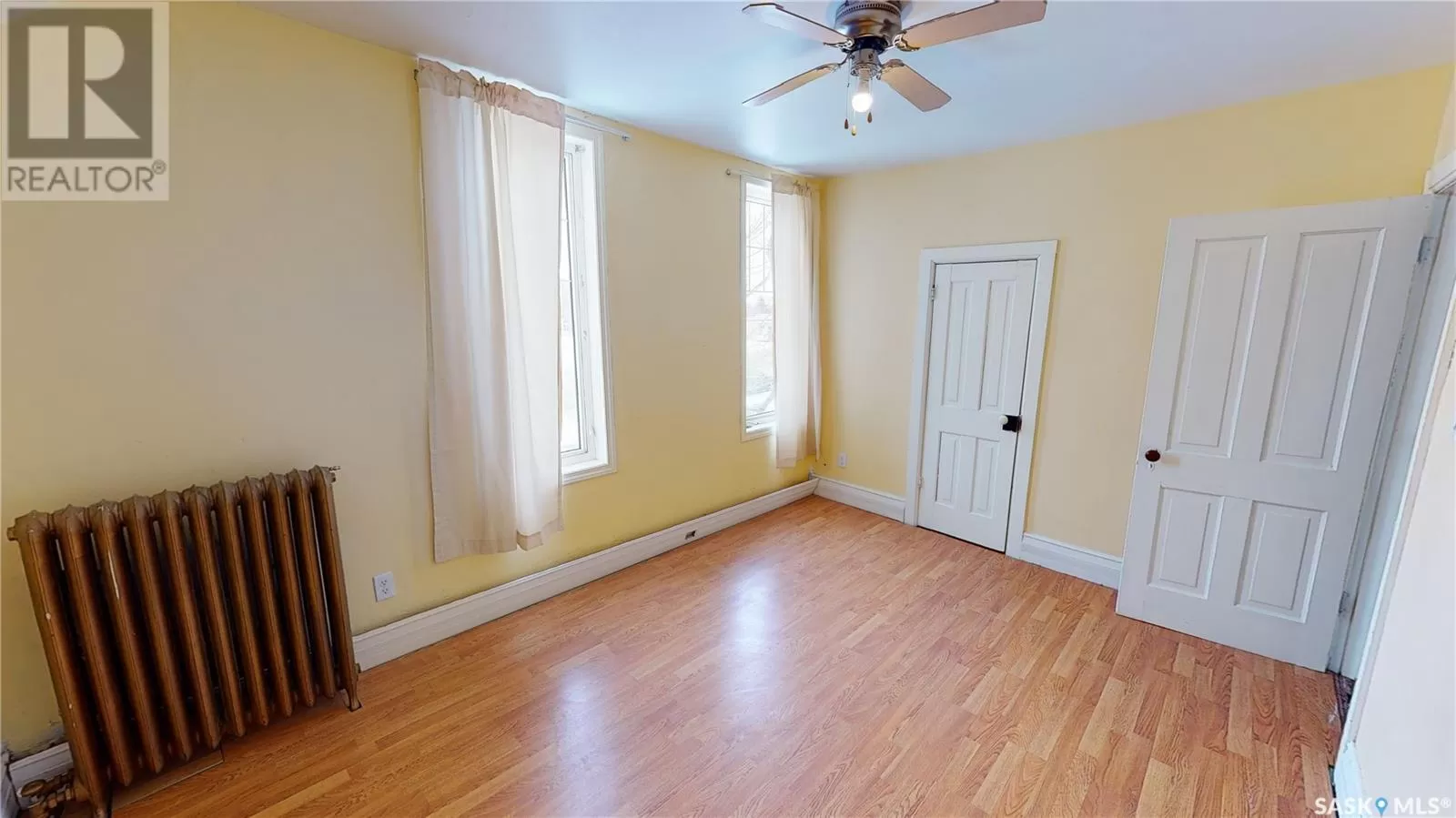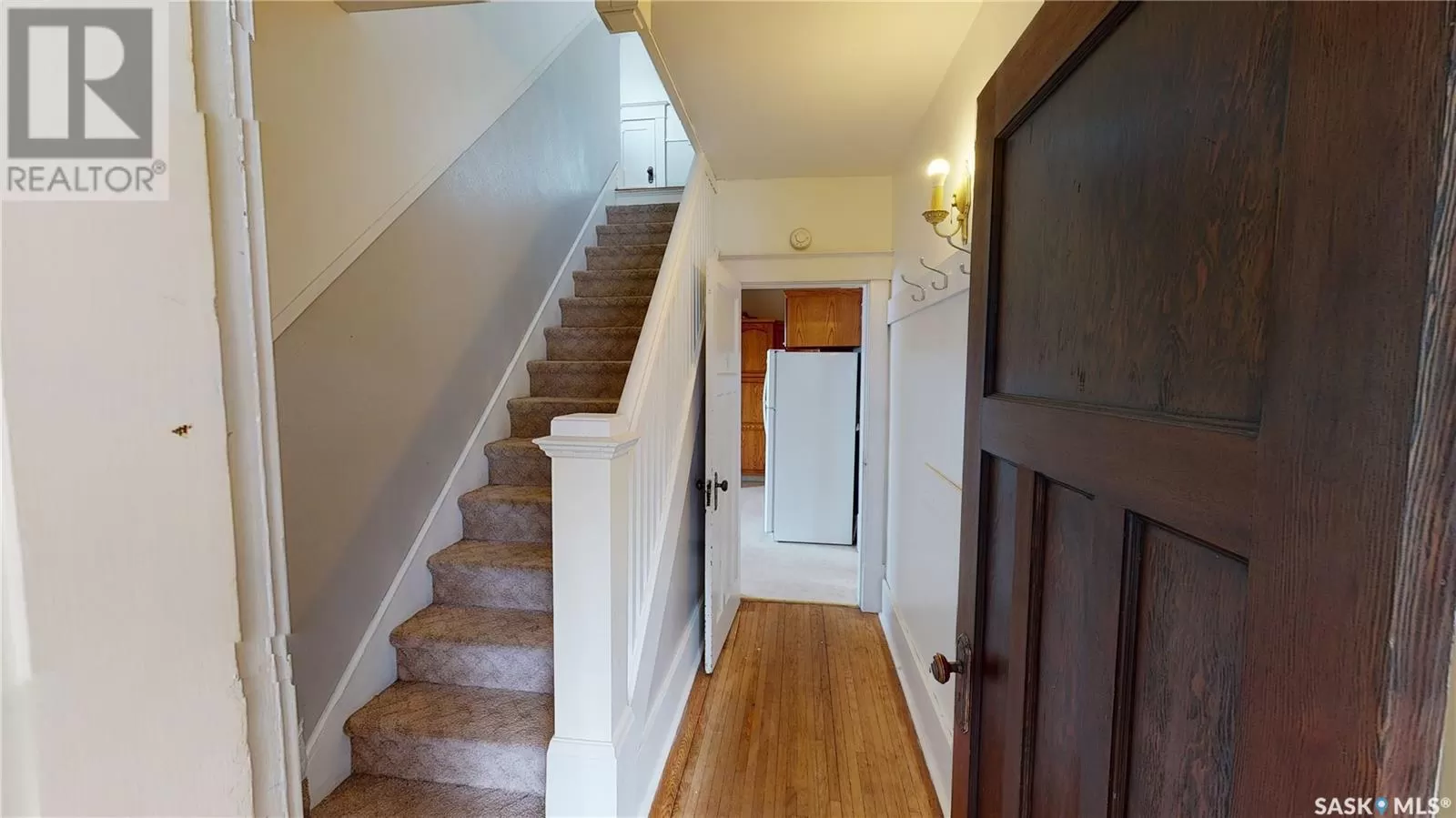 SPACIOUS CHARACTER HOME - 4 BEDROOMS, 2 BATHS, ENCLOSED ORIGINAL SUNROOM - over 1700 sq.ft on a full concrete/masonry foundation. This home has lots of character with original solid wood doors, baseboards/casing, wood floors, good size bedrooms with walk-in closets, L-Shaped upstairs landing with plenty of storage spaces and character features. UPDATES: Fiberglass Shingles (2014); Gas Water Heater (Sept/2020); 100 Amp Panel (electrical inspection completed Nov 2021), Majority of Windows updated to Vinyl, Exterior Cold & Hot Water Taps plus a bonus Soft Water Tap; treated wood side deck. Main Floor - front entry off the sunroom leads to the corner living room; central original staircase accessed from the living room and the kitchen with close access to the dining room & Main Floor Bedroom (office space) that has built-in shelving with Murphy Bed included. Large Kitchen with oak cabinets leads to the 4pc bathroom and to a bonus room currently used for laundry but with space to turn into a pantry/storage. The Back door leads to the kitchen and to the basement. Basement has utility room, storage room, wine making room with Utility sink and lined with galvanized metal walls, plus a large open room with some built-in shelving. The Back yard is partially fenced with parking off the back alley, attached garage has been rewired and currently used just for storage, front yard has a nice cherry tree, grapes, small play house/sand box are near the side deck, small deck off the sunroom. INCLUDES: Fridge, Store, Hood Range, Dishwasher, Washer & Dryer, Dehumidifier, Portable Air Conditioner, Storage Shed. This charming home is worth a view, check out the attached 3D Matterport Tour and contact your realtor for a viewing! (id:27476)