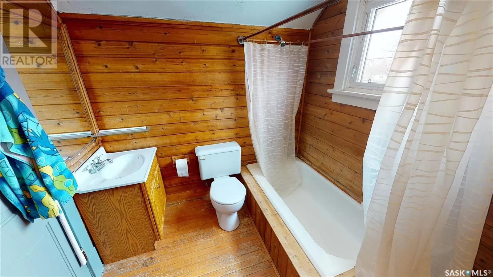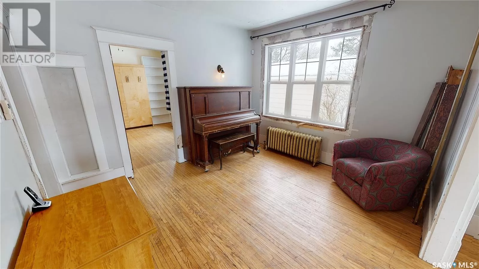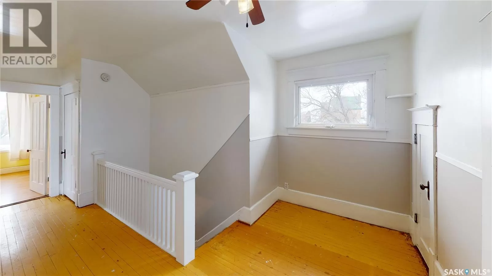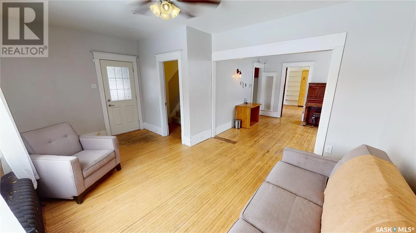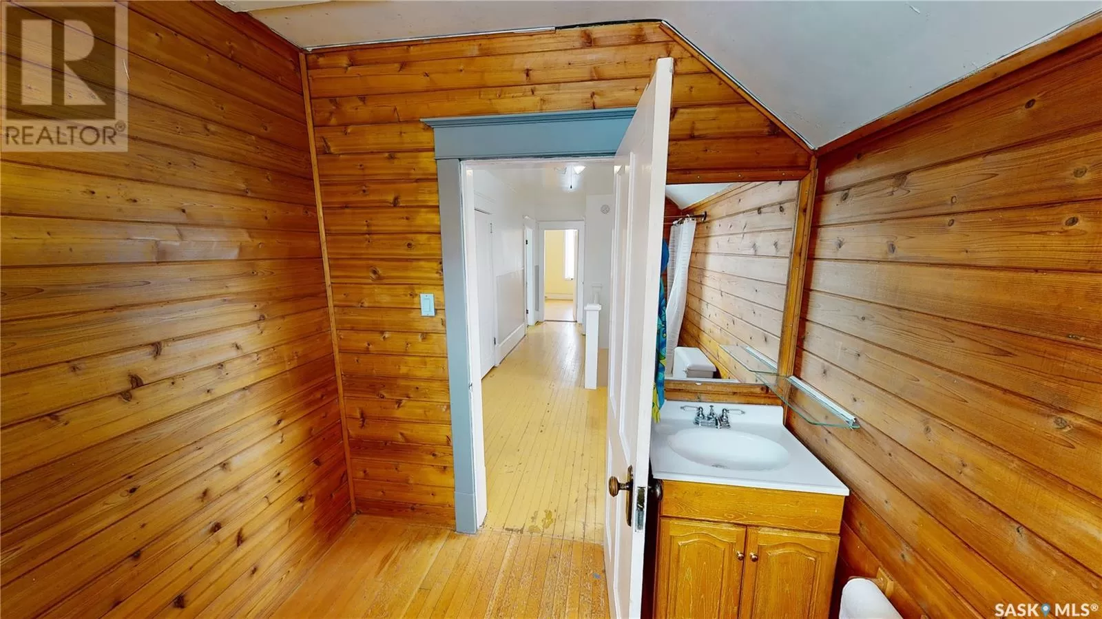 SPACIOUS CHARACTER HOME - 4 BEDROOMS, 2 BATHS, ENCLOSED ORIGINAL SUNROOM - over 1700 sq.ft on a full concrete/masonry foundation. This home has lots of character with original solid wood doors, baseboards/casing, wood floors, good size bedrooms with walk-in closets, L-Shaped upstairs landing with plenty of storage spaces and character features. UPDATES: Fiberglass Shingles (2014); Gas Water Heater (Sept/2020); 100 Amp Panel (electrical inspection completed Nov 2021), Majority of Windows updated to Vinyl, Exterior Cold & Hot Water Taps plus a bonus Soft Water Tap; treated wood side deck. Main Floor - front entry off the sunroom leads to the corner living room; central original staircase accessed from the living room and the kitchen with close access to the dining room & Main Floor Bedroom (office space) that has built-in shelving with Murphy Bed included. Large Kitchen with oak cabinets leads to the 4pc bathroom and to a bonus room currently used for laundry but with space to turn into a pantry/storage. The Back door leads to the kitchen and to the basement. Basement has utility room, storage room, wine making room with Utility sink and lined with galvanized metal walls, plus a large open room with some built-in shelving. The Back yard is partially fenced with parking off the back alley, attached garage has been rewired and currently used just for storage, front yard has a nice cherry tree, grapes, small play house/sand box are near the side deck, small deck off the sunroom. INCLUDES: Fridge, Store, Hood Range, Dishwasher, Washer & Dryer, Dehumidifier, Portable Air Conditioner, Storage Shed. This charming home is worth a view, check out the attached 3D Matterport Tour and contact your realtor for a viewing! (id:27476)