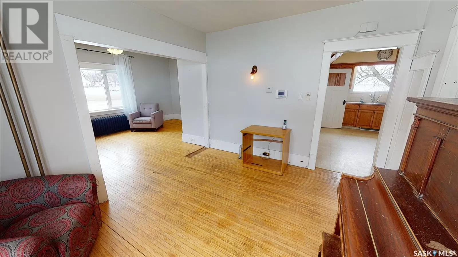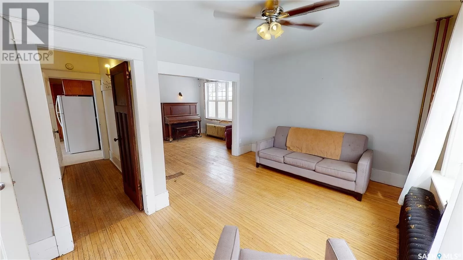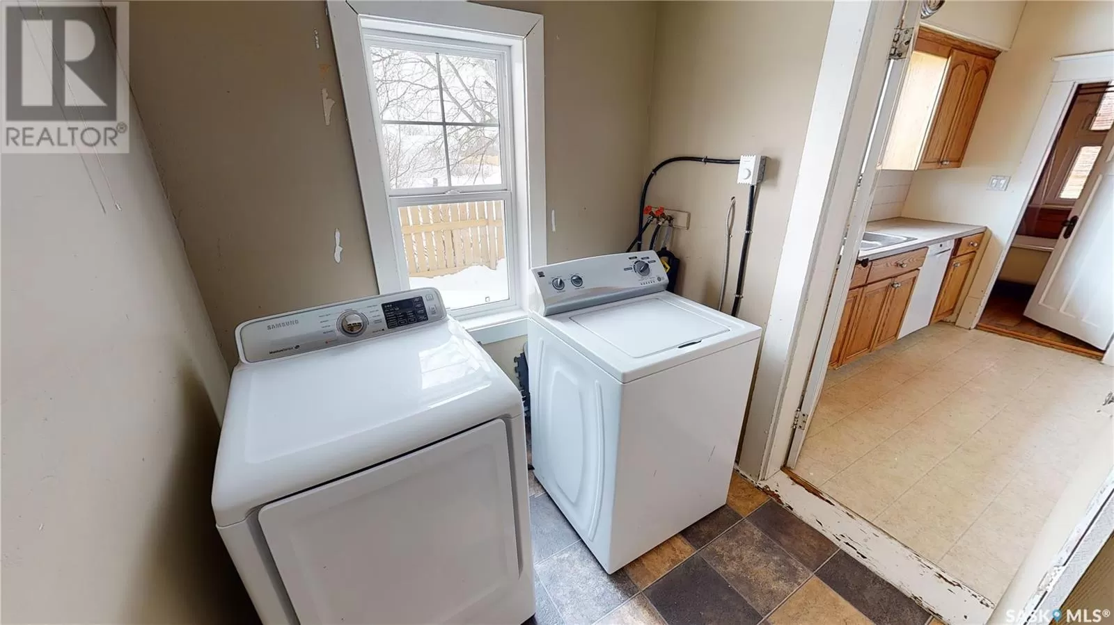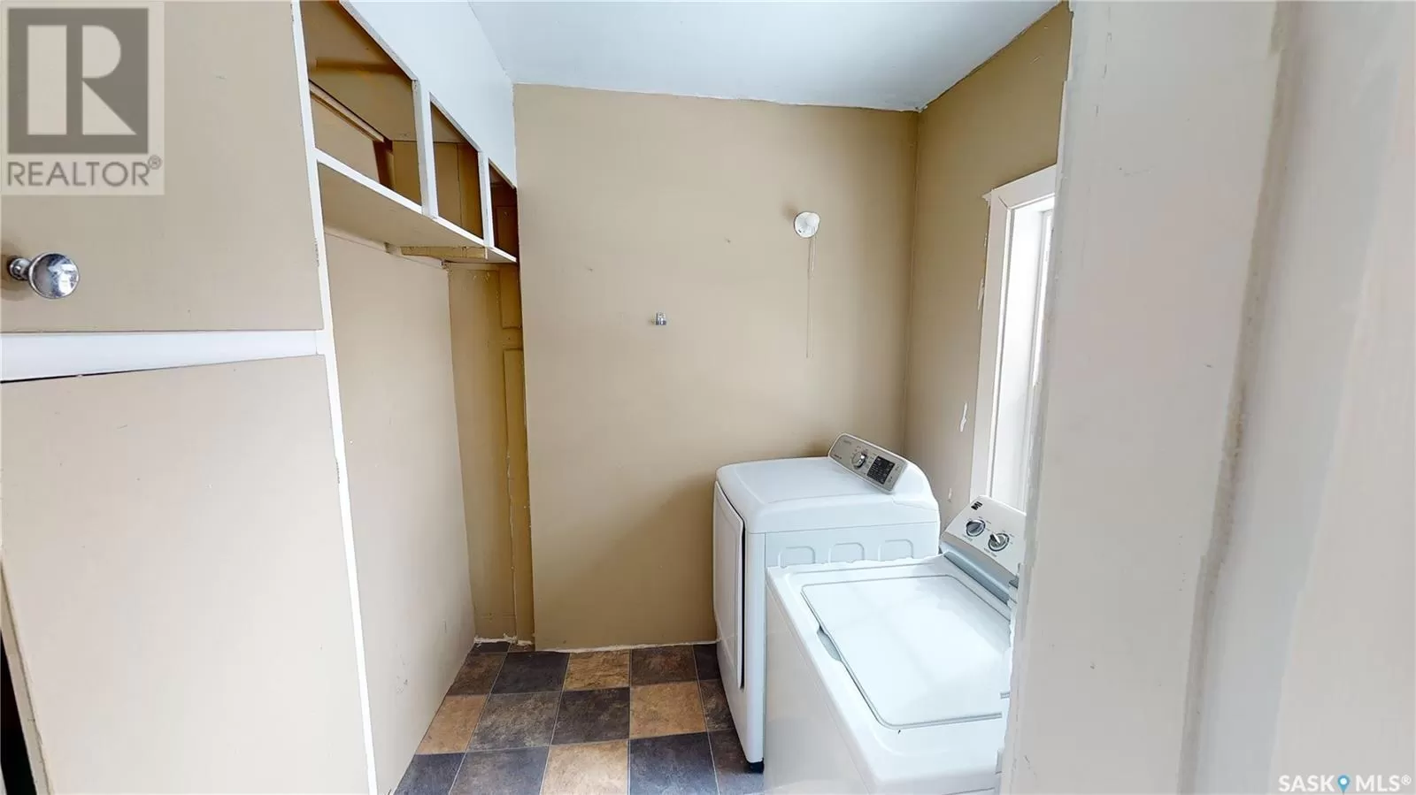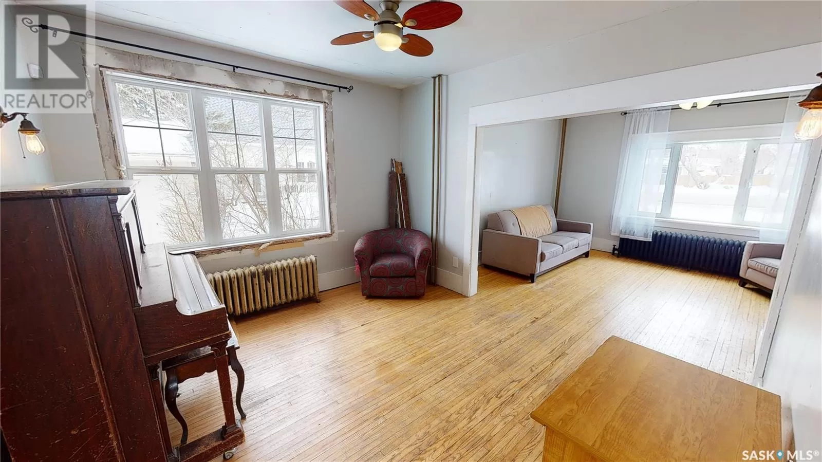 SPACIOUS CHARACTER HOME - 4 BEDROOMS, 2 BATHS, ENCLOSED ORIGINAL SUNROOM - over 1700 sq.ft on a full concrete/masonry foundation. This home has lots of character with original solid wood doors, baseboards/casing, wood floors, good size bedrooms with walk-in closets, L-Shaped upstairs landing with plenty of storage spaces and character features. UPDATES: Fiberglass Shingles (2014); Gas Water Heater (Sept/2020); 100 Amp Panel (electrical inspection completed Nov 2021), Majority of Windows updated to Vinyl, Exterior Cold & Hot Water Taps plus a bonus Soft Water Tap; treated wood side deck. Main Floor - front entry off the sunroom leads to the corner living room; central original staircase accessed from the living room and the kitchen with close access to the dining room & Main Floor Bedroom (office space) that has built-in shelving with Murphy Bed included. Large Kitchen with oak cabinets leads to the 4pc bathroom and to a bonus room currently used for laundry but with space to turn into a pantry/storage. The Back door leads to the kitchen and to the basement. Basement has utility room, storage room, wine making room with Utility sink and lined with galvanized metal walls, plus a large open room with some built-in shelving. The Back yard is partially fenced with parking off the back alley, attached garage has been rewired and currently used just for storage, front yard has a nice cherry tree, grapes, small play house/sand box are near the side deck, small deck off the sunroom. INCLUDES: Fridge, Store, Hood Range, Dishwasher, Washer & Dryer, Dehumidifier, Portable Air Conditioner, Storage Shed. This charming home is worth a view, check out the attached 3D Matterport Tour and contact your realtor for a viewing! (id:27476)