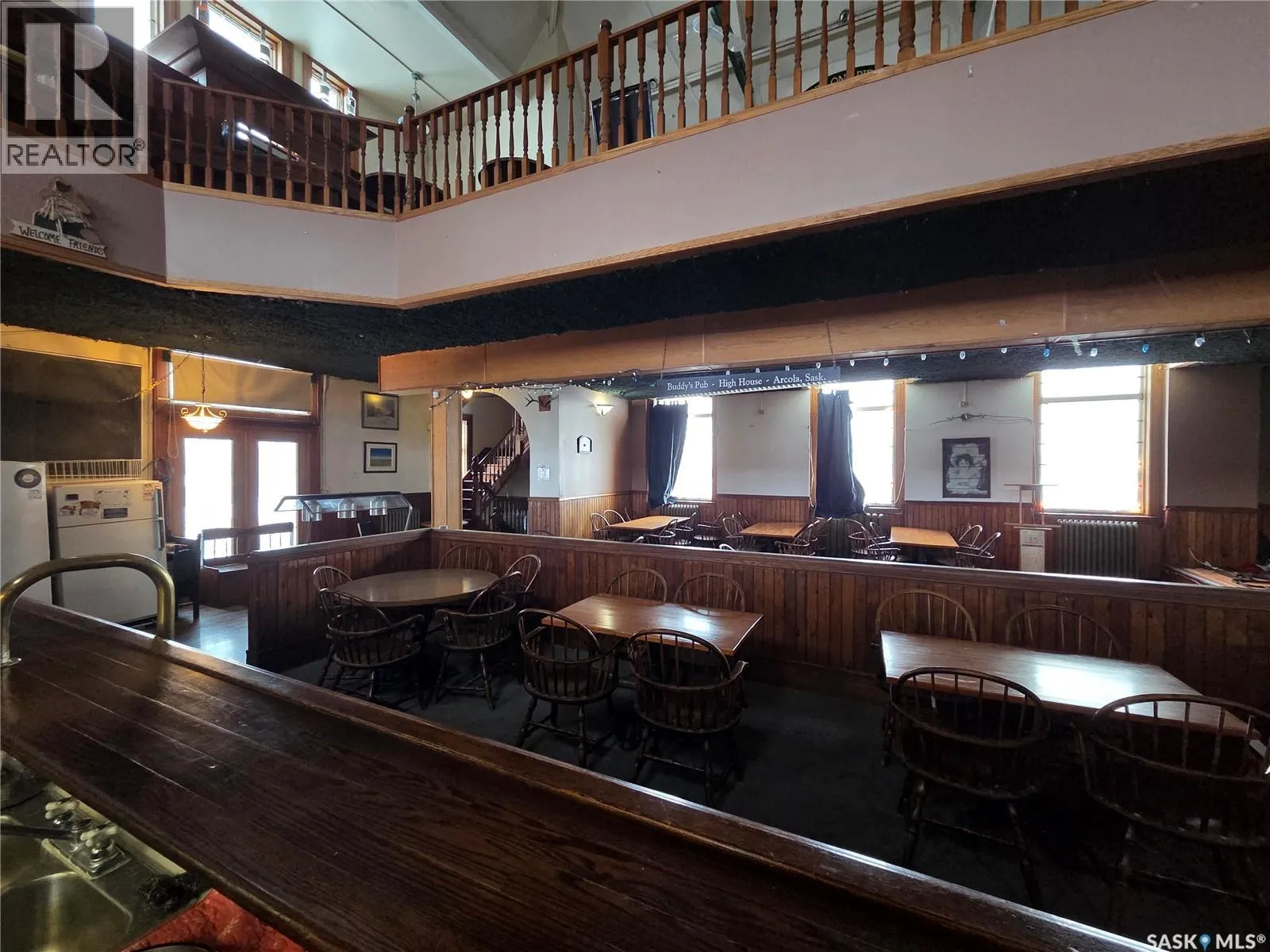 Discover a rare opportunity to own a landmark brick and stone building paired with a well-established business in the thriving and welcoming town of Arcola, Saskatchewan. Constructed in 1905 using locally made brick, this solid and character-rich structure is an unadorned example of Queen Anneâstyle architecture and stands as a significant piece of the townâs history. Originally serving as Arcolaâs first consolidated municipal building, it once housed the fire hall, jail, and town offices, with an impressive opera hall on the second floor featuring a two-storey vaulted ceiling. Adding to its historic appeal, one of the original jail cells remains intact in the basement. In 1991, the building was thoughtfully renovated into a restaurant and saloon and is now home to Buddyâs Pub, a popular local destination featuring one of the longest bars in Western Canada. The business currently generates income through the pub operations and three VLTs, with additional upside potential. The second and third floors offer expansive space with a massive bar, abundant seating, and a unique atmosphere ideal for corporate functions, private events, live entertainment, or large gatherings, creating excellent opportunities for expanded revenue or potential rental income. Recent updates enhance both functionality and appeal, including a new forced-air furnace installed in December 2025, a freshly painted and updated interior, and a newly built main-level bar. Washrooms are conveniently located on both the main and second levels. Outside, a large deck area provides valuable additional space for seasonal patio seating, outdoor events, and increased customer capacity, further boosting revenue potential during warmer months. With an established business, strong community presence, and ample room for growth or diversification, this historic property presents an outstanding investment opportunity in one of Saskatchewanâs most charming small towns. Call your agent today to schedule a viewing! (id:27476)