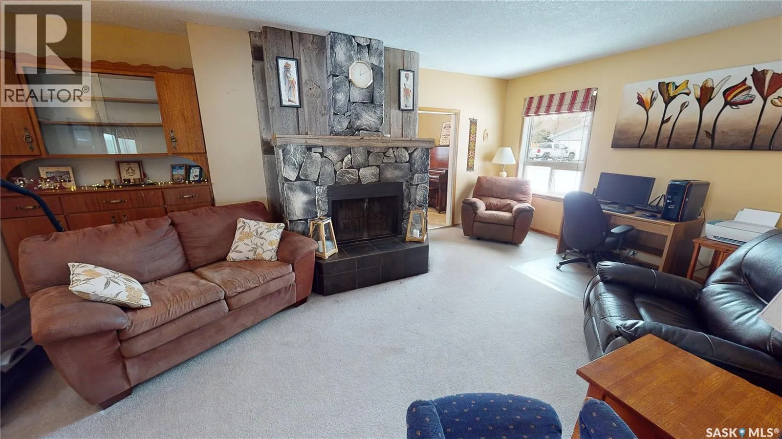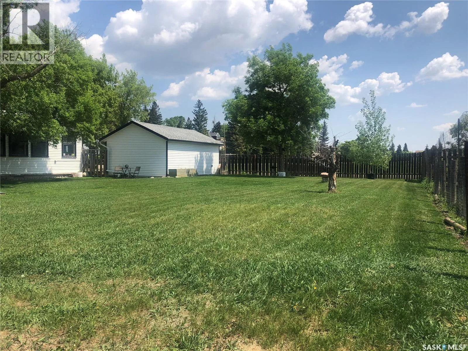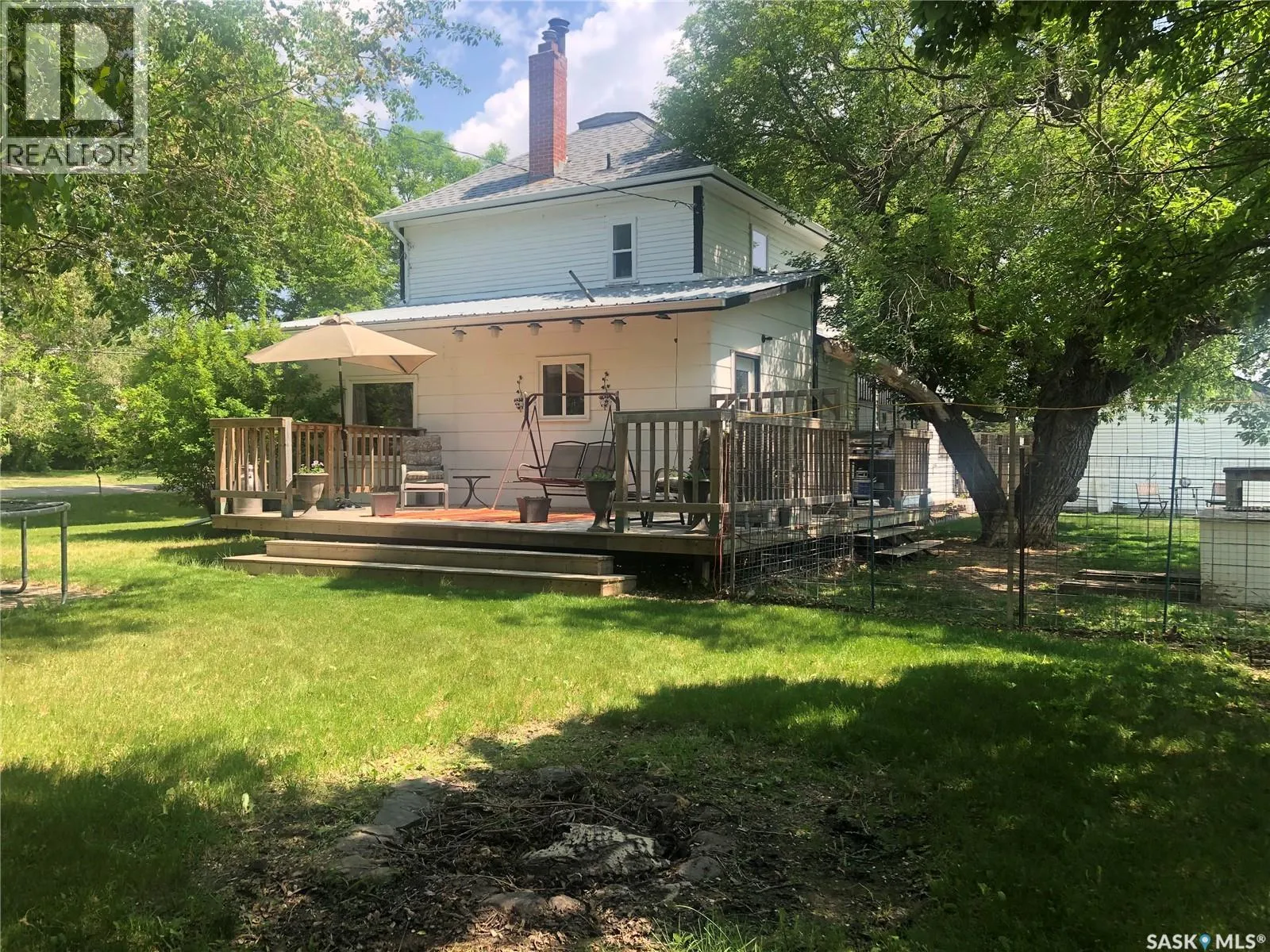 4 BEDROOMS, 2 BATHS, FIREPLACE, DOUBLE LOT, GARAGE. Discover the warmth and charm of this four-bedroom, 1.5 bath Character Home situated on two lots with front and back garages. Step into the inviting wraparound enclosed veranda as you enter into the house. A corner staircase leads you to the 2nd level with 3 bedrooms and a full 4pc bathroom accessible directly from two of the bedrooms. Unwind in the cozy living room complete with a wood-burning fireplace and access to the 4th Floor Bedroom on the Main Level. Proceed through the living room into the dining room and kitchen with windows facing the back yard & deck plus a back door from the kitchen leading right into the fully fenced part of the yard. The kitchen also accesses the conveniently located Laundry Room plus the floor access to the cellar that includes the Gas Furnace and other Utilities. Outside, the yard offers endless possibilities with a treated wood back deck, trees for shade, back garage & shed plus a concrete patio - perfect for a Fire Pit or other backyard activity. The North side of the property is shaded by mature trees, while a greenspace and community playground sit just across the street adding to the home's appeal and central location to the town's amenities include Hospital, K-12 School and Downtown. From the Street front there is plenty of parking on the gravel driveway, along the front fence and in front of the 16 x 24 Garage built in 1995. This home comes complete with a Fridge, Stove, Washer, Dryer, Wall Air Conditioner, Water Softener and Sump Pump. Singles Updated in 2015. Experience it all firsthand with the enclosed 3D Virtual Tour of the property's interior or contact a Realtor for a private viewing! (id:27476)