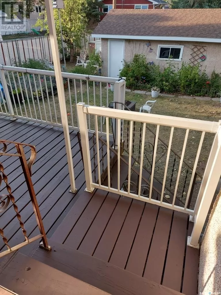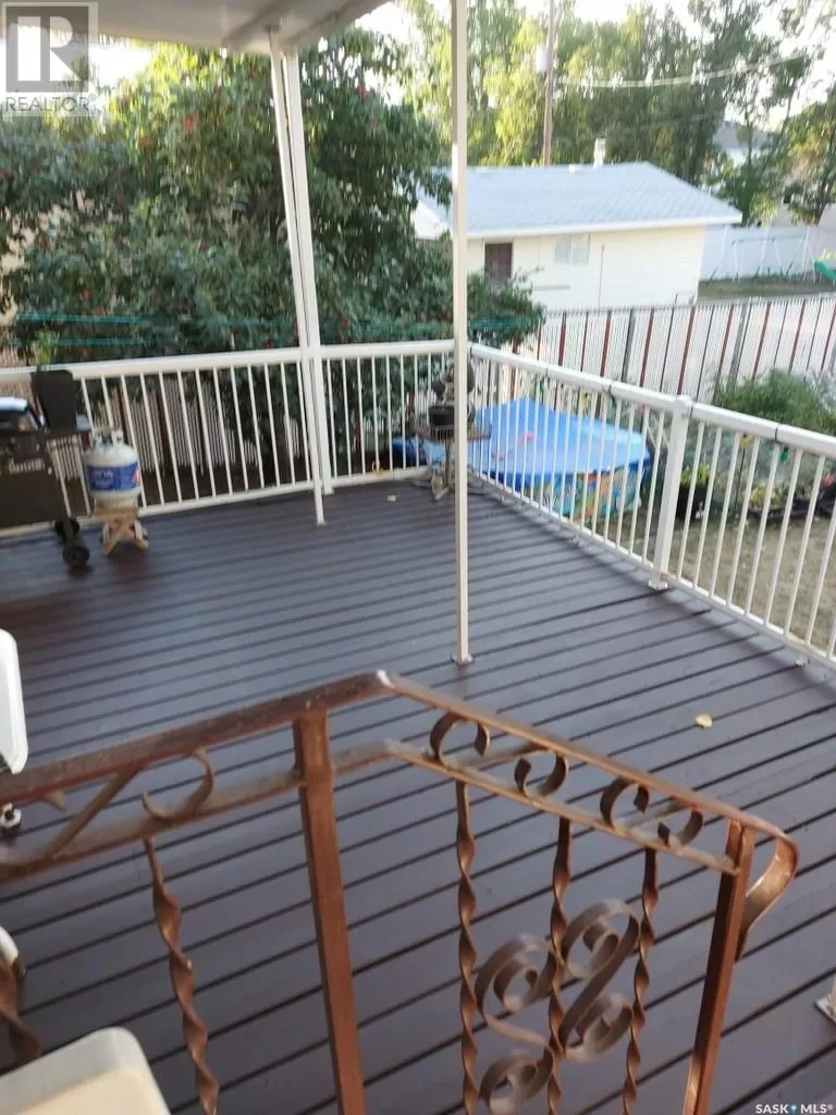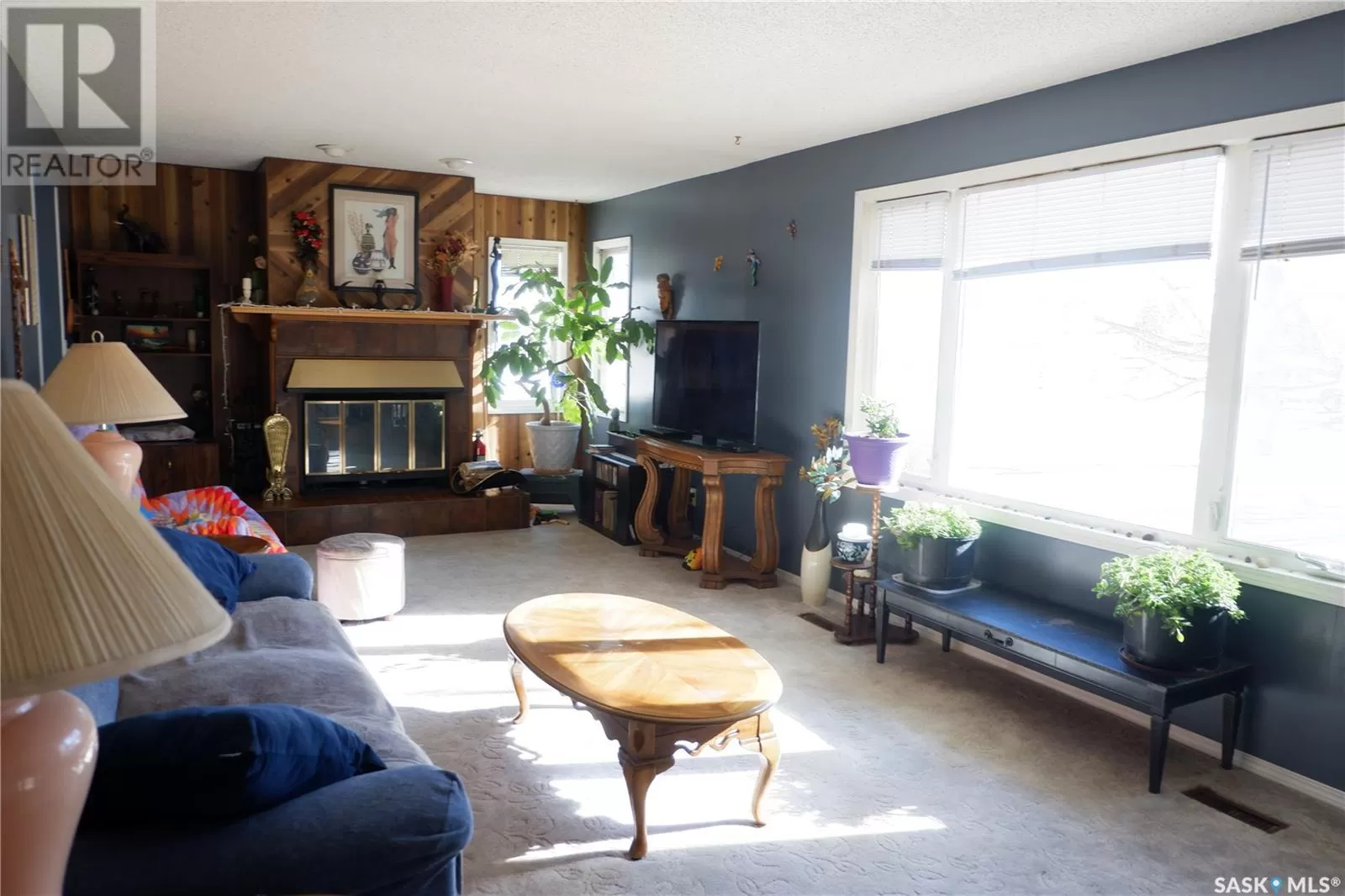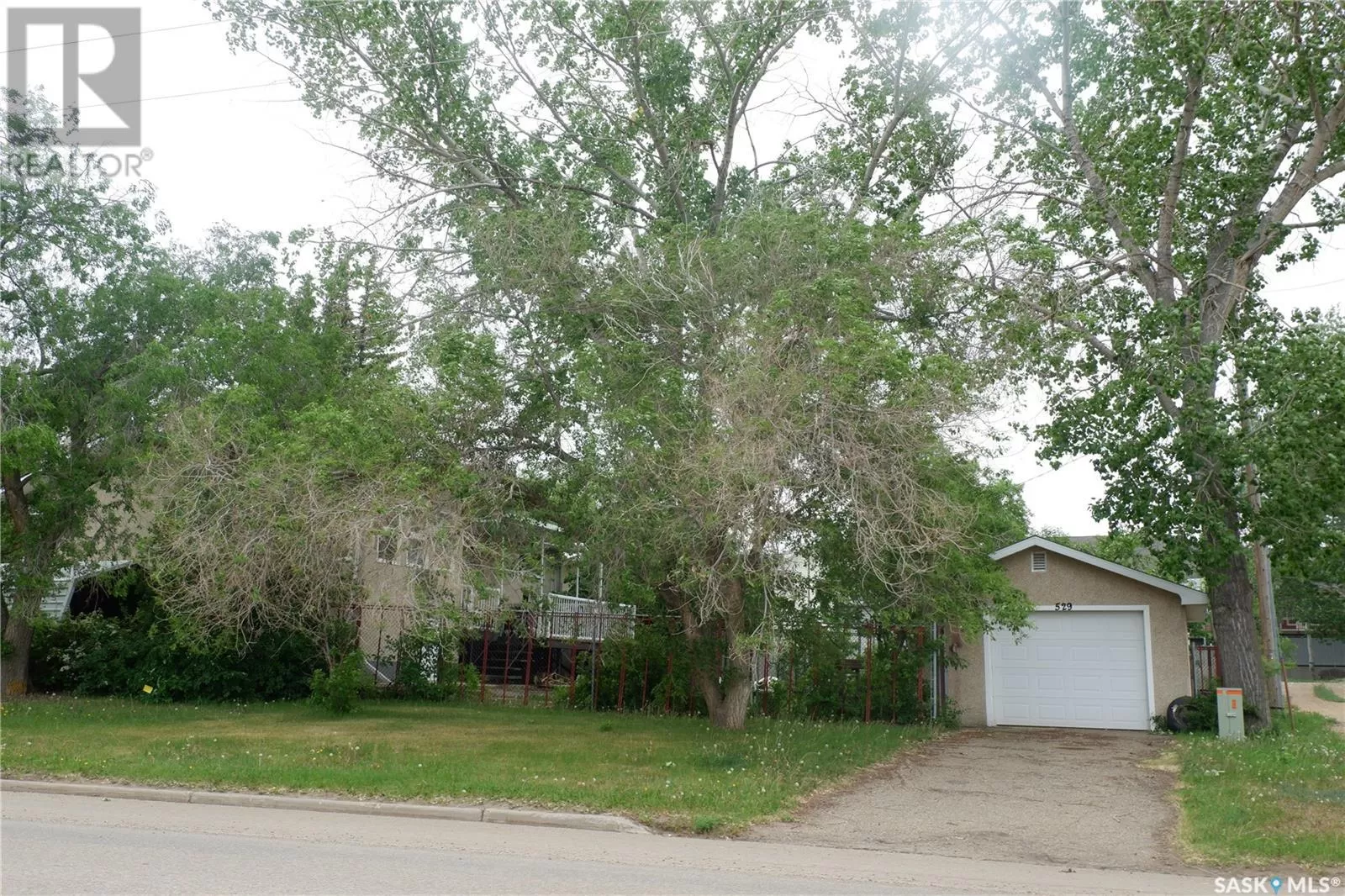 Located in the Town of Assiniboia in a great location, close to the hospital and schools. Come take a look at this nicely upgraded home! When you enter from the large front yard, you are met with a large entryway. Head up a few stairs and you will be in the living room, complete with a wood-burning fireplace. You will love the large window which faces south - an excellent spot for plants. The stand beside the fireplace is attached to the wall and will stay. The dining room is open to this area and provides a entrance to the lovely Sunroom at the back of the home. From here you can access the covered deck. Sit back and enjoy the fenced yard, complete with a garden area and 2 Apple trees. The kitchen is massive with lots of cabinets and long countertops. A hidden gem is the main floor laundry tucked in behind the closet doors. The home has a very large primary bedroom and a good-sized second bedroom to complete the main floor. The basement is fully developed with family room, den with an electric fireplace and privacy doors, an upgraded 3-piece bath, large bedroom and a utility room big enough for a craft centre. Here you will see the newer high-efficient natural gas furnace connected to central air conditioning and a new Hot water heater. The basement windows are all large and give the feeling of roominess, making this a place you will love spending time. Outside you will notice the singled detached insulated garage accessible from the side yard. You will not want to miss this amazing property! Come have a look today! (id:27476)