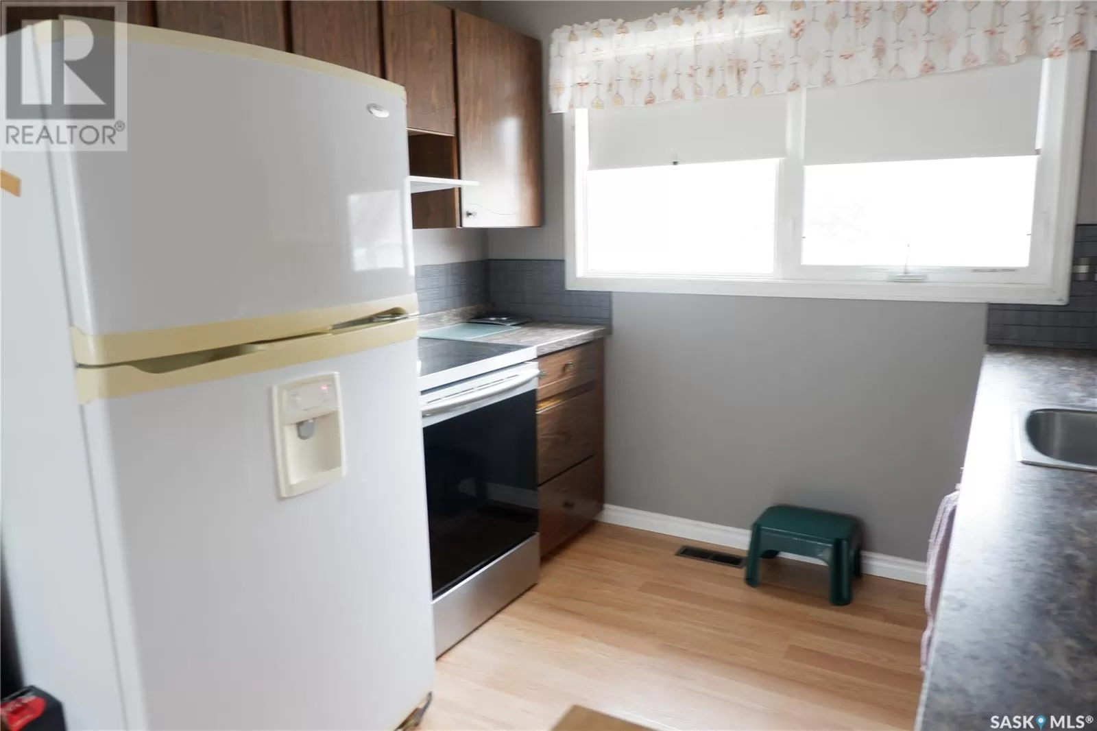 Located in the Town of Assiniboia in a great location, close to schools and recreation. Come check out this nicely upgraded family home. It features 3 bedrooms on the main floor and a primary bedroom in the fully developed basement. Upgraded Vinyl windows as well as new vinyl siding and a metal roof make this home exterior maintenance free! The main floor has an eat-in kitchen and a nice living room with lots of natural light. The fully developed basement has a family room, Primary bedroom with a beautifully upgraded Ensuite, featuring a large walk-in shower as well as laundry in the utility room. The furnace has been upgraded to a high efficiency natural gas model. The high efficient natural gas water heat is new. The yard is fully fenced in the back with white vinyl fencing. The single detached garage has convenient access from the asphalt driveway. The backyard boasts a large garden shed and a lovely garden area. This house has great upgrades and is ready for its next family to enjoy. Come have a look today! (id:27476)