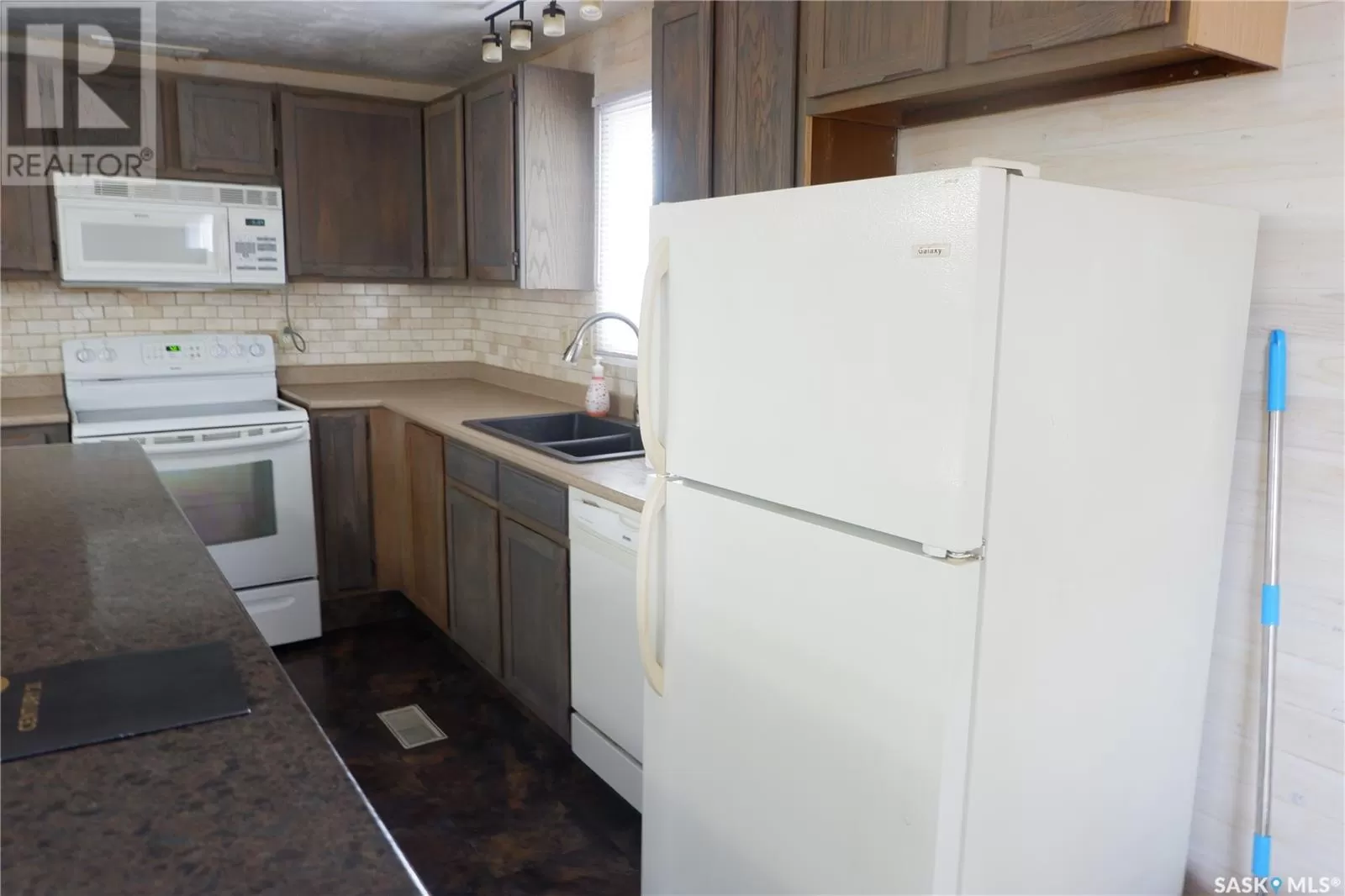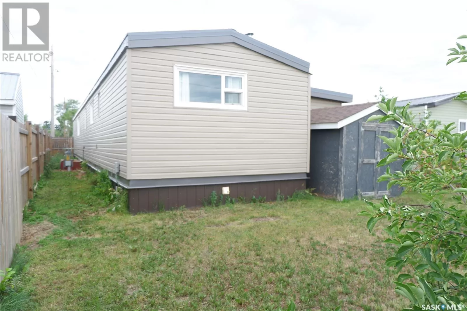 Located in the Town of Assiniboia in the Sunrise Estates Mobile Home park. This is a very nicely upgraded mobile home on a leased lot on the east edge of town. You will enjoy the large covered deck at the side entry. Make your way inside into the large addition. This room could be used for a number of different things including an office or just extra storage. The trailer has all new vinyl windows and a new metal roof. There is also new vinyl siding with styrofoam under. The water lines have also been replaced. Some flooring has been upgraded to Luxury Vinyl Tile in the kitchen/dining room, bathroom, hallway and laundry. The primary bedroom is at the front of the mobile and features a 3-piece bath. There are two bedrooms at the back as well as the laundry area and 4-piece bathroom. This upgraded home is ready for its next owners to enjoy. Come take a look today! (id:27476)