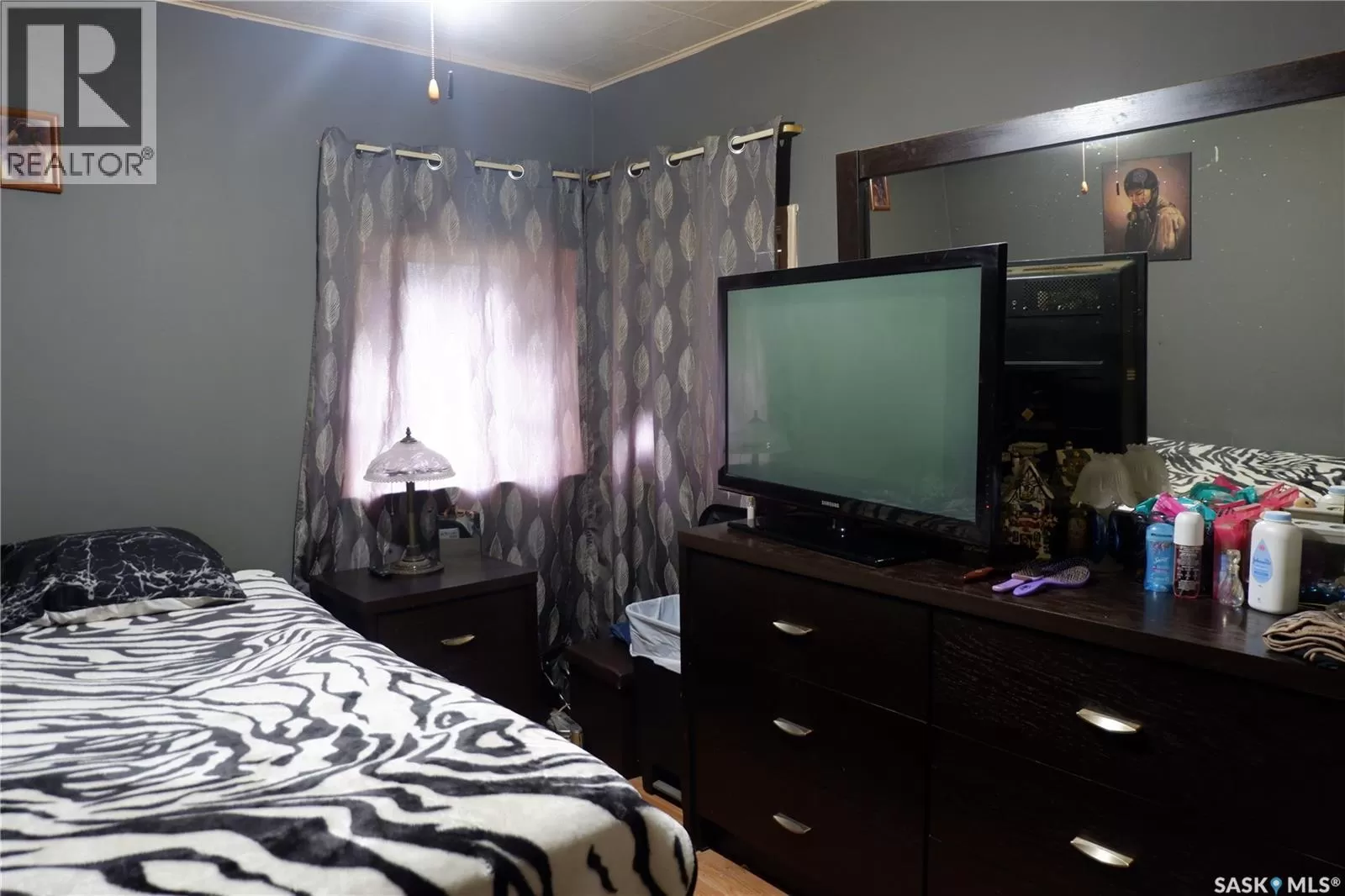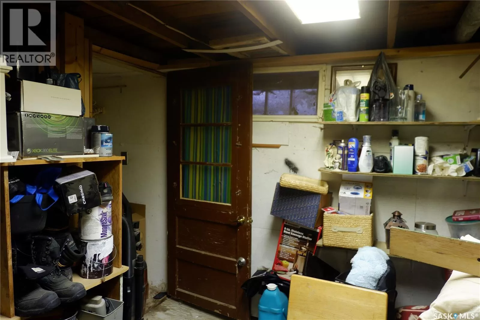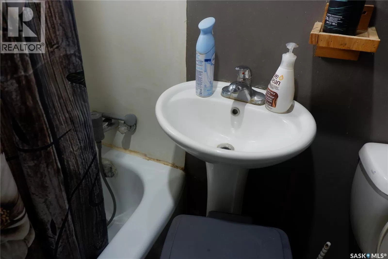 Located in the Town of Assiniboia. Come check out this great home on a corner lot. Newer double detached garage! The home has an eat-in kitchen, living room, 2 bedrooms and 4-piece bath. The basement is partially developed with a 3-piece bath and lots of storage rooms. The furnace has been upgraded to a high efficient natural gas model recently. There is extra parking in the back with a concrete parking pad. This property is currently rented. Good starter home or investment property. Come look at it today! (id:27476)