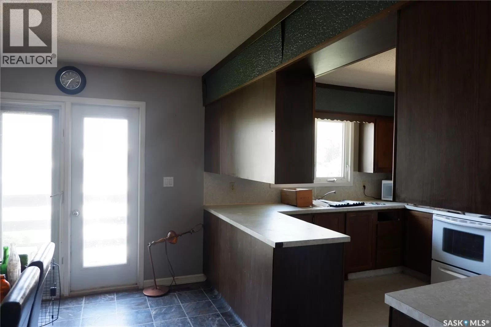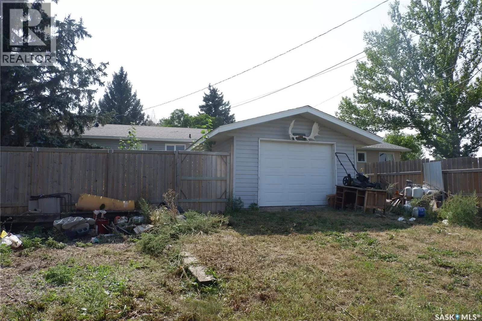 Located in the Town of Assiniboia in a great location on the west side of town. This home has huge potential. Semi open deisign concept. Main floor laundr! The primary bedroom has a 2-piece Ensuite. Basemnet has a large utility room. THis property has lots of storage. Nice little deck that is great for barbecuing off the dining room, accessed through garden doors. Nice fenced yard. Single detached garage. Extra parking in the back. This property backs on an empty lot for lots of privacy. Come check it out! (id:27476)