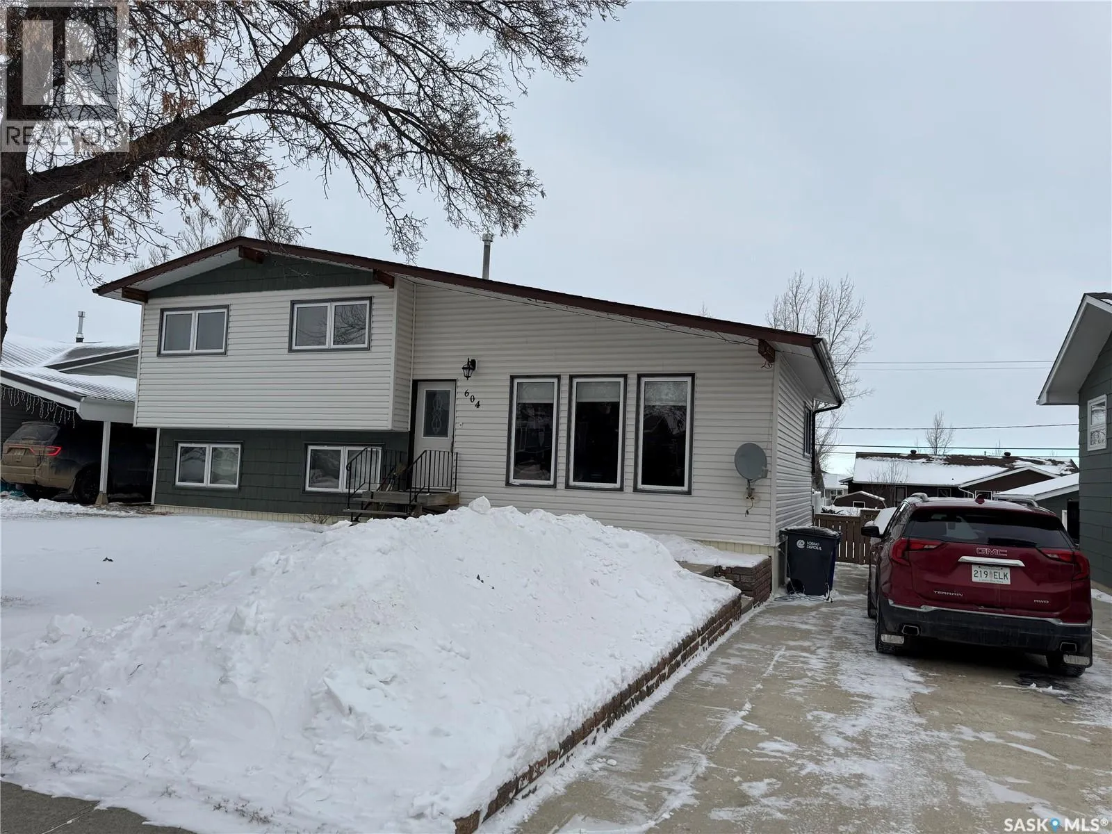 This upgraded home in Assiniboia is move-in ready, featuring vinyl siding, new asphalt shingles, and updated vinyl windows. The kitchen has new cabinetry, countertops, and appliances, while a vaulted ceiling adds openness to the living area. The vaulted ceiling has had Spray foam insulation added under the drywall. A great convenience are garden doors that open to a tiered deck in the fully fenced yard with grassy and garden areas. There are underground sprinklers at the front yard. The upper level offers three bedrooms and a full bath; the third level has a large family room with wet bar and backyard access. The basement includes a den, laundry with ample storage, utility room with mid-efficient furnace complete with central air, and a 3-piece bath. Convenient storage is available under the third level via crawl space. The location is close to a school bus stop. This home has been very well maintained and professionally upgraded. Donât miss out on this one! You are going to love it! (id:27476)