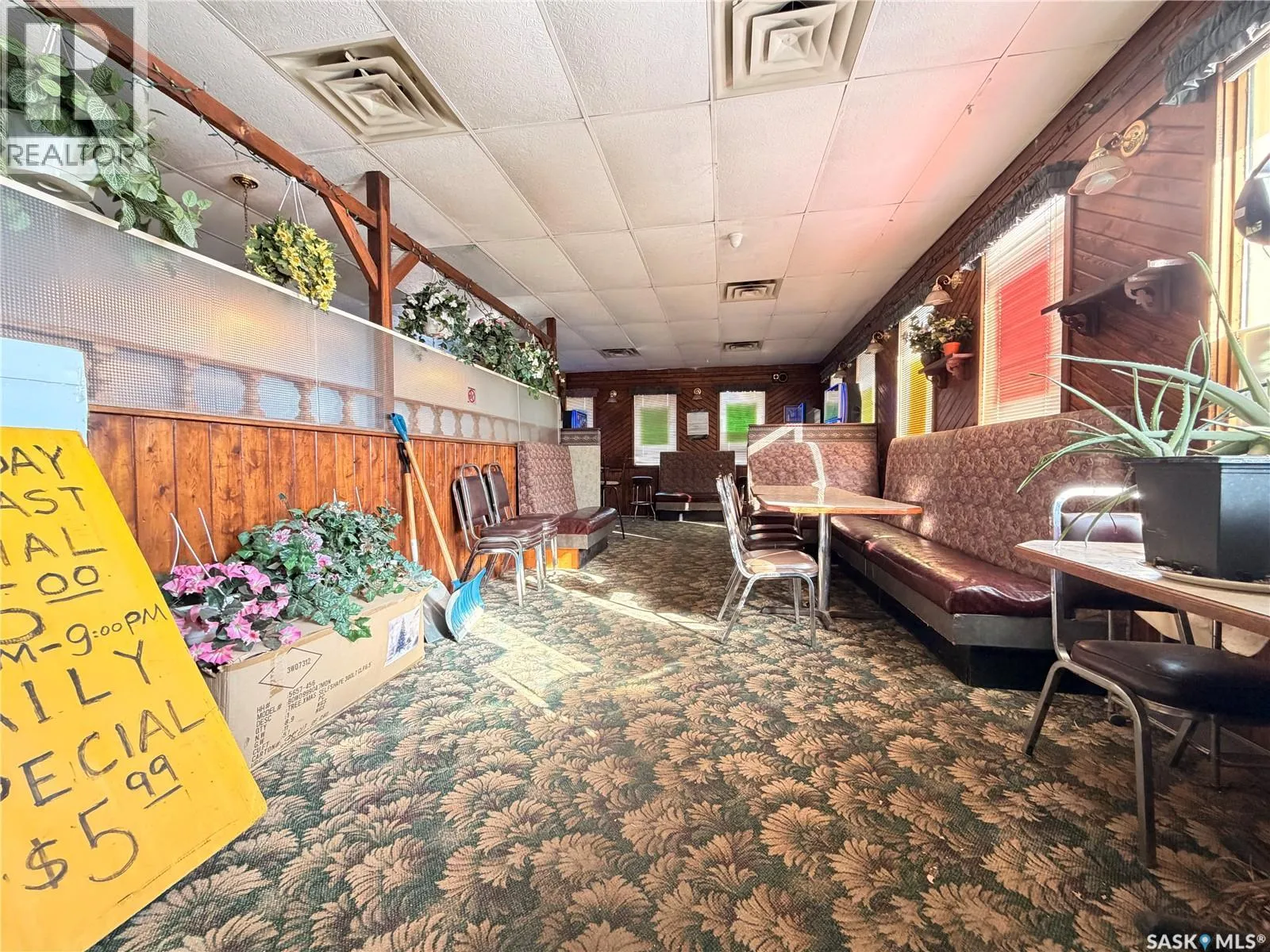 Priced for a quick sale! Long Standing restaurant, bar, and banquet facility located in the heart of Assiniboia, offering approximately 140 seats. The restaurant is ideally located along Highway 2, offering excellent visibility and convenient access for both local and highway traffic This well-known community establishment features a valid liquor license and a dedicated games room with four VLT machines (new owners will be required to obtain both permits from Saskatchewan Liquor and Gaming Authority). Major updates include a roof replacement in recent years, along with newer air conditioning and furnace systems for improved efficiency and comfort. The property is offered as an asset sale and sold in âas-isâ condition, with all existing machinery, equipment, and chattels currently on site included in the purchase price. This is an excellent opportunity to acquire a fully equipped hospitality business with strong local presence and potential for growth. (id:27476)