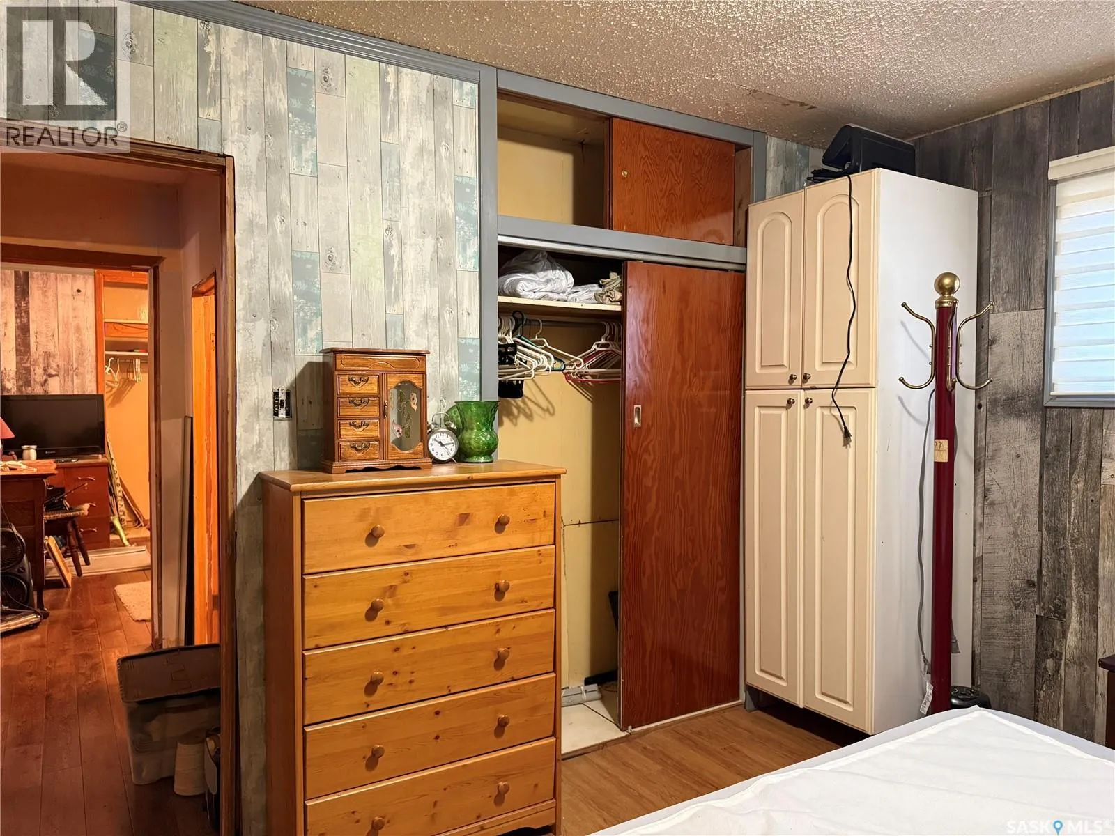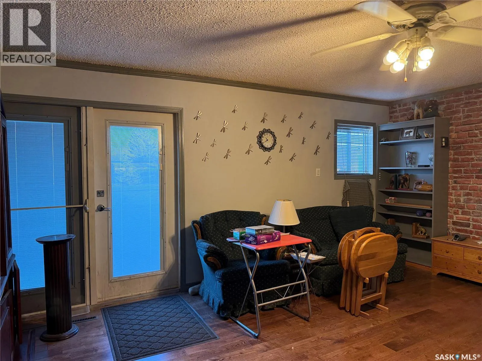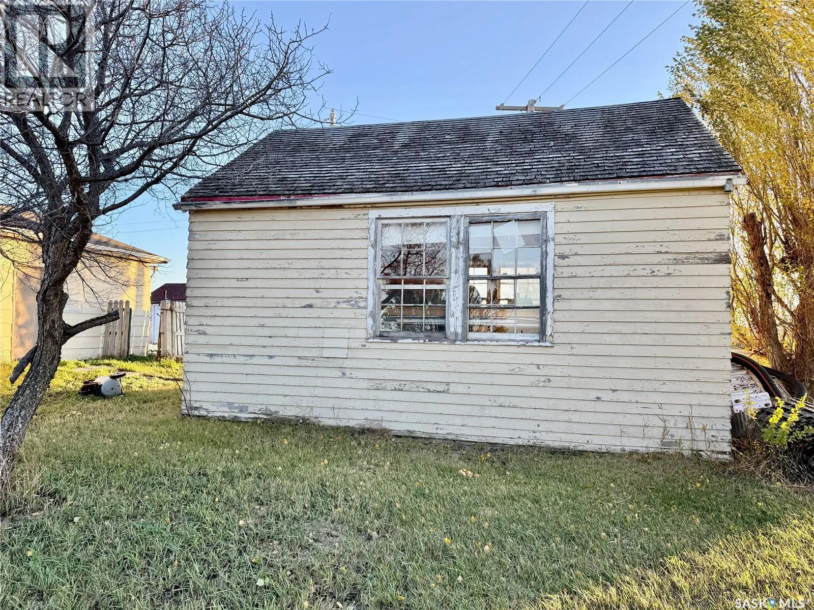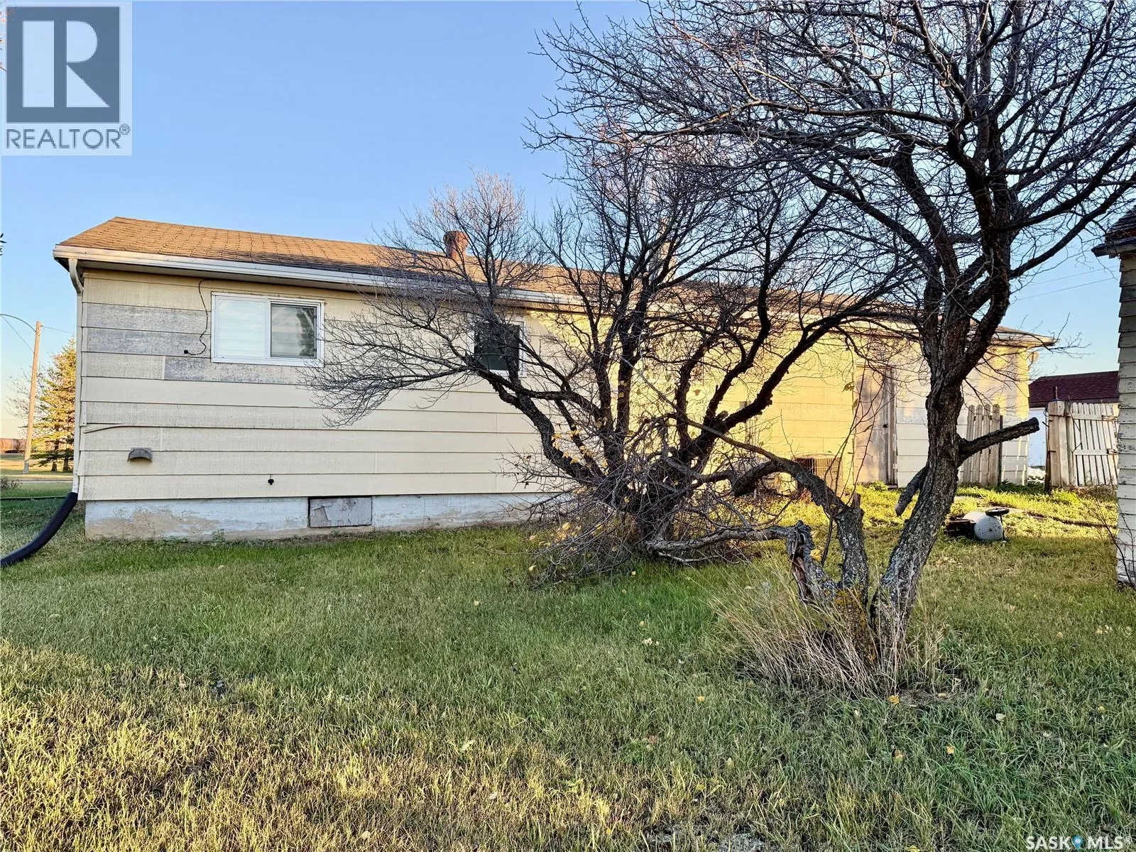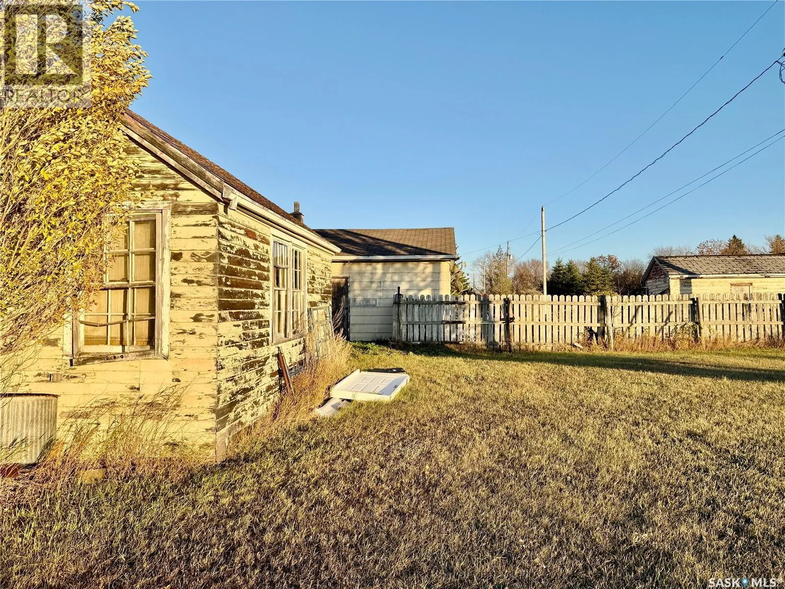 Acreage Feel on the Edge of the town of Aylesbury! Located just off Highway #11 on the edge of a quiet small town, this property offers the best of both worlds â the tranquility of country living with the convenience of nearby amenities. This well-laid-out 954 sq/ft home features a spacious living room with garden doors leading to a large deck, perfect for relaxing or entertaining. The eat-in kitchen provides plenty of space for family dining. The main floor includes 2 comfortable bedrooms and a 4-piece bathroom. The partially developed basement offers great potential with plumbing in place for an additional bathroom, plus a family room, workshop, and laundry area. Outside, enjoy the expansive yard that truly gives an acreage feel, complete with three storage sheds, an attached single garage, and a detached single garage, offering ample parking and storage options. Property is sold âas is, where is.â This home is not for rent or rent to own. (id:27476)