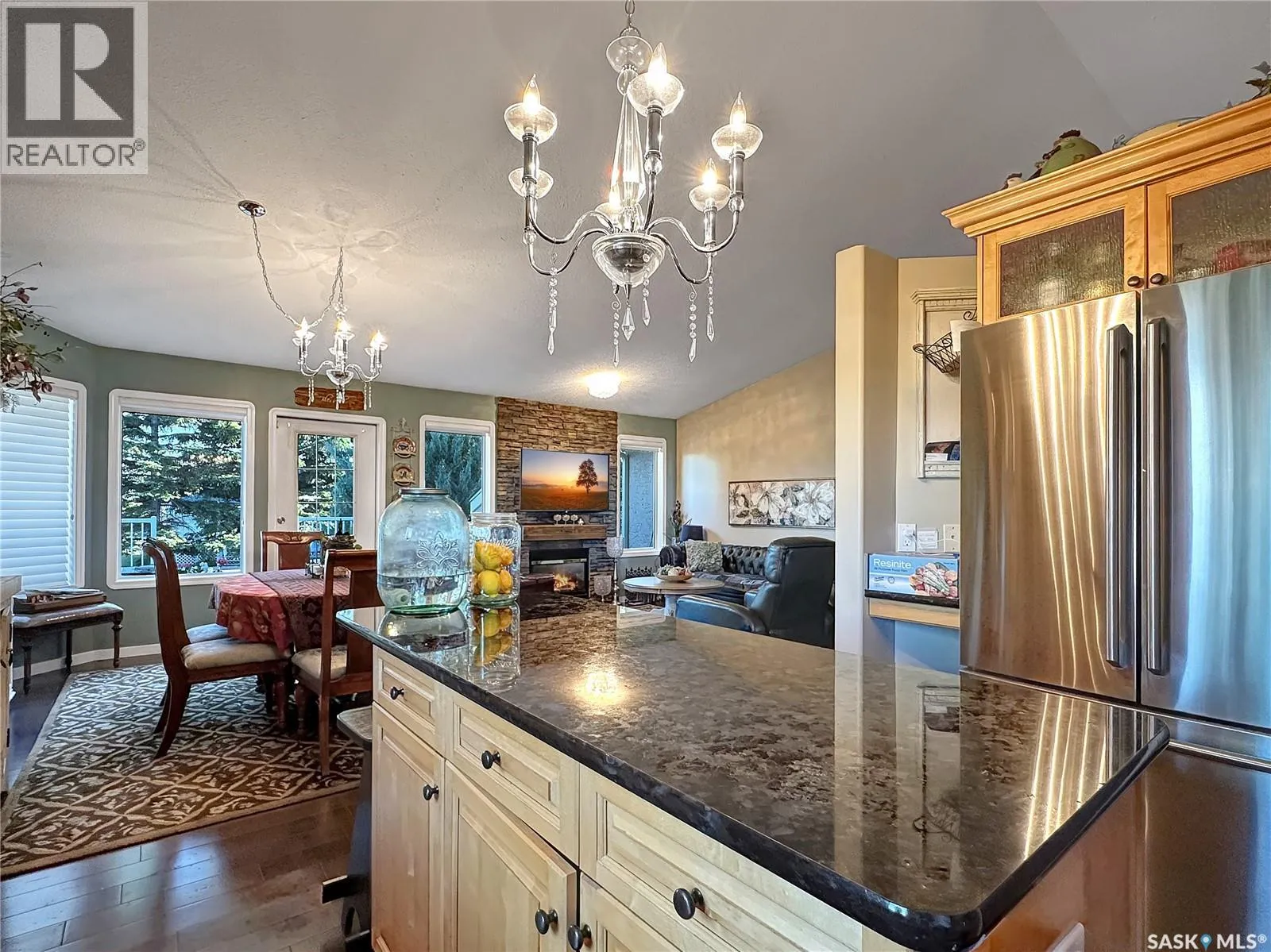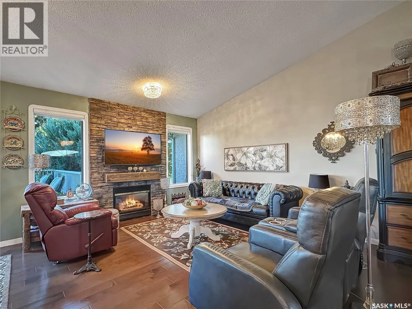 Welcome to this beautifully maintained family home in the friendly community of Balcarres! Offering over 1,800 sq. ft. of main floor living space plus a fully finished basement, this spacious home features 5 bedrooms and 3 full bathroomsâperfect for a growing family or those who love to entertain. The main floor boasts vaulted ceilings and an open-concept layout, creating a bright and inviting atmosphere. The kitchen is a standout with granite countertops and stainless steel appliances, including a fridge, stove, and dishwasher. Youâll also find a comfortable living room, dining area, laundry room, den, and moreâall designed with functionality and flow in mind. Downstairs, enjoy a large family room and ample storage space, making it ideal for movie nights or a home gym. The home also includes two gas fireplaces, central air conditioning, and central vac for added comfort and convenience. Step outside to a fully insulated double attached garage with an automatic opener. The backyard is a private retreat, featuring a two-tiered deck, sheltered patio, mature trees, garden area, storage shed, and PVC fencing for low-maintenance living. Located just minutes from the scenic QuâAppelle Valley and nearby lakes, and only an hourâs drive to Regina, this home combines small-town charm with easy access to city amenities. Balcarres offers a Kâ12 school, medical clinic, grocery store, pharmacy, restaurant, lumber yard, and moreâeverything you need, right in town. Call your favorite local agents to view. (id:27476)