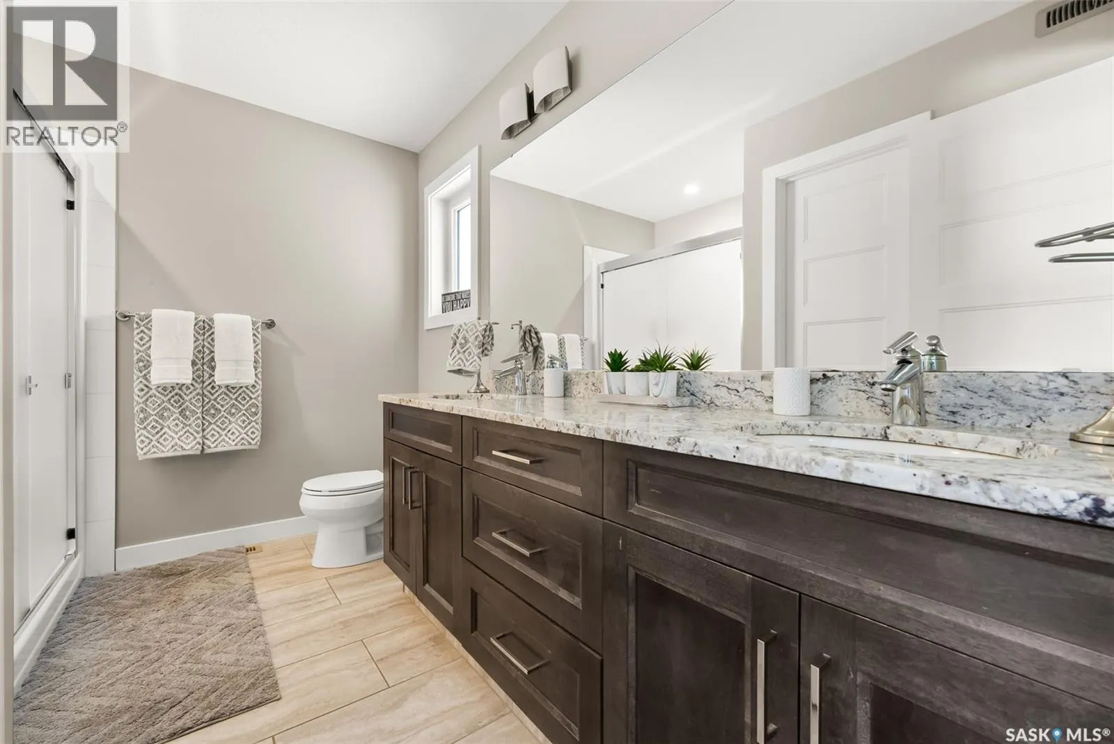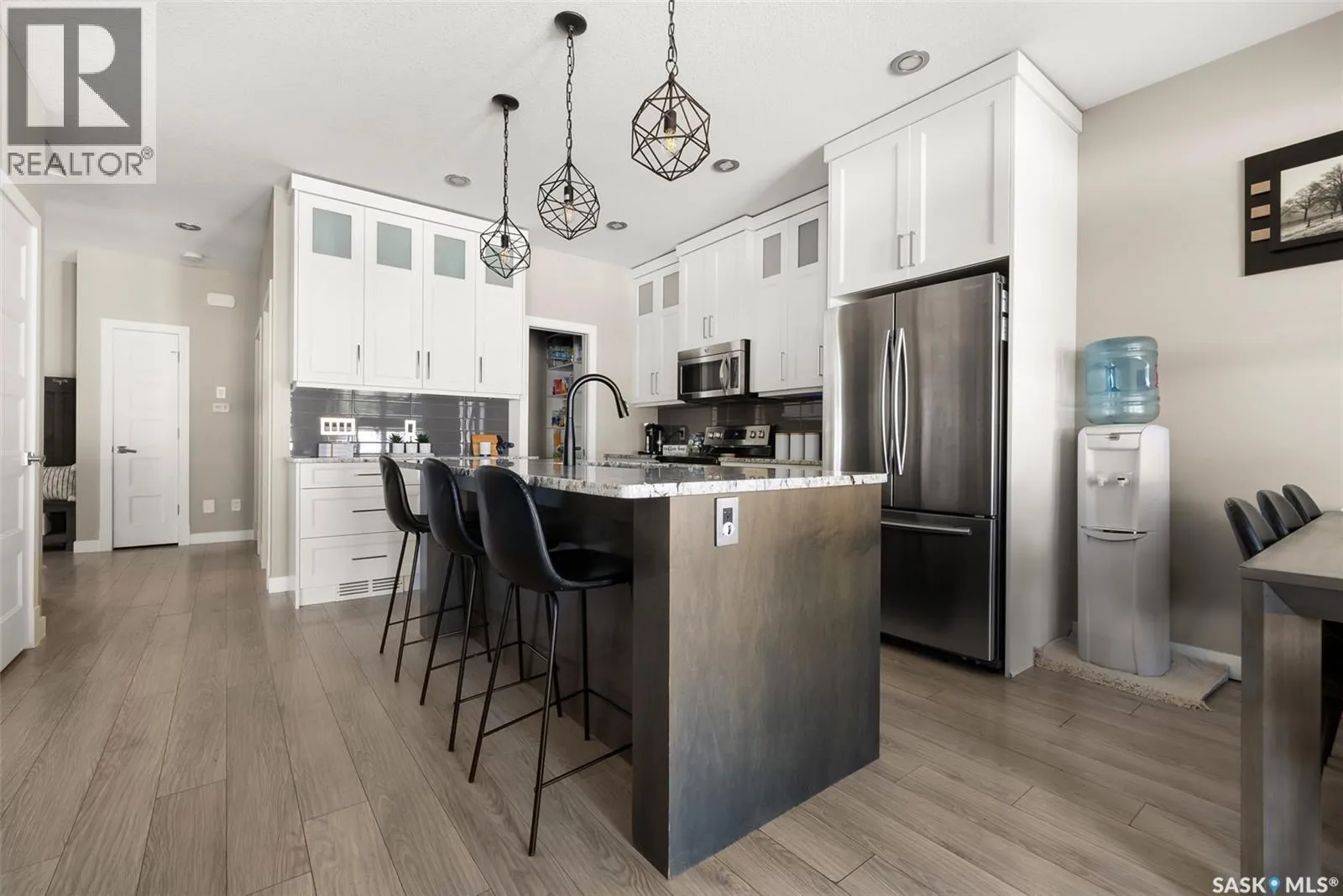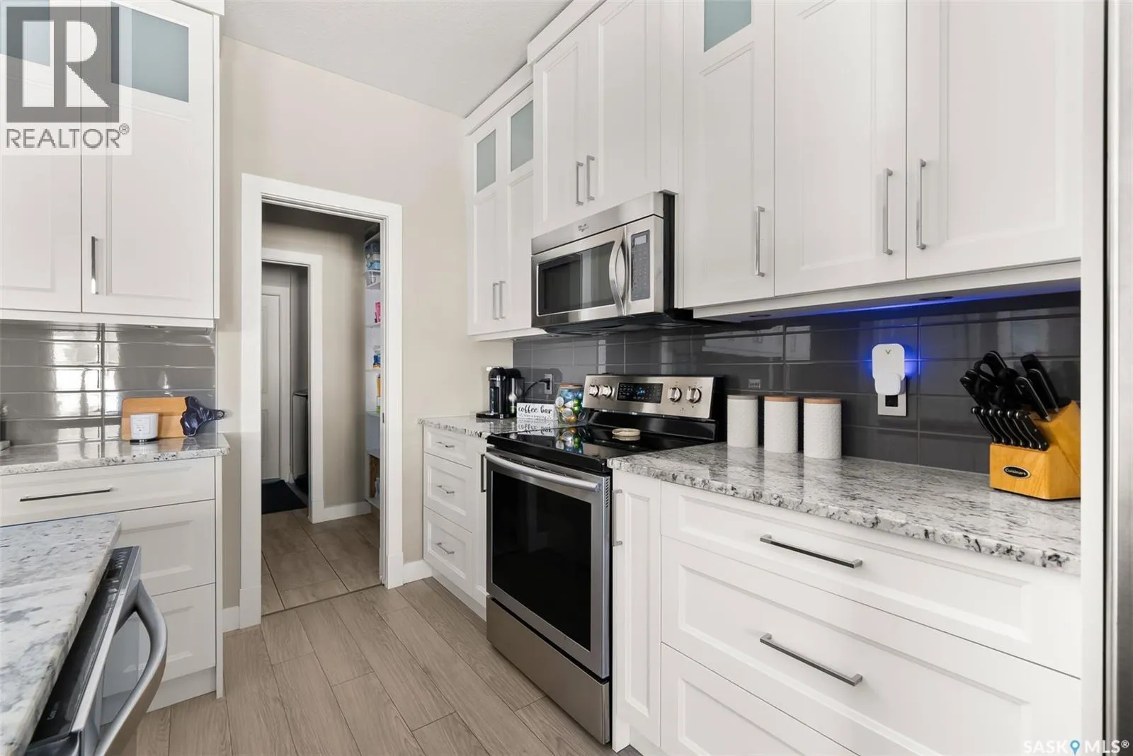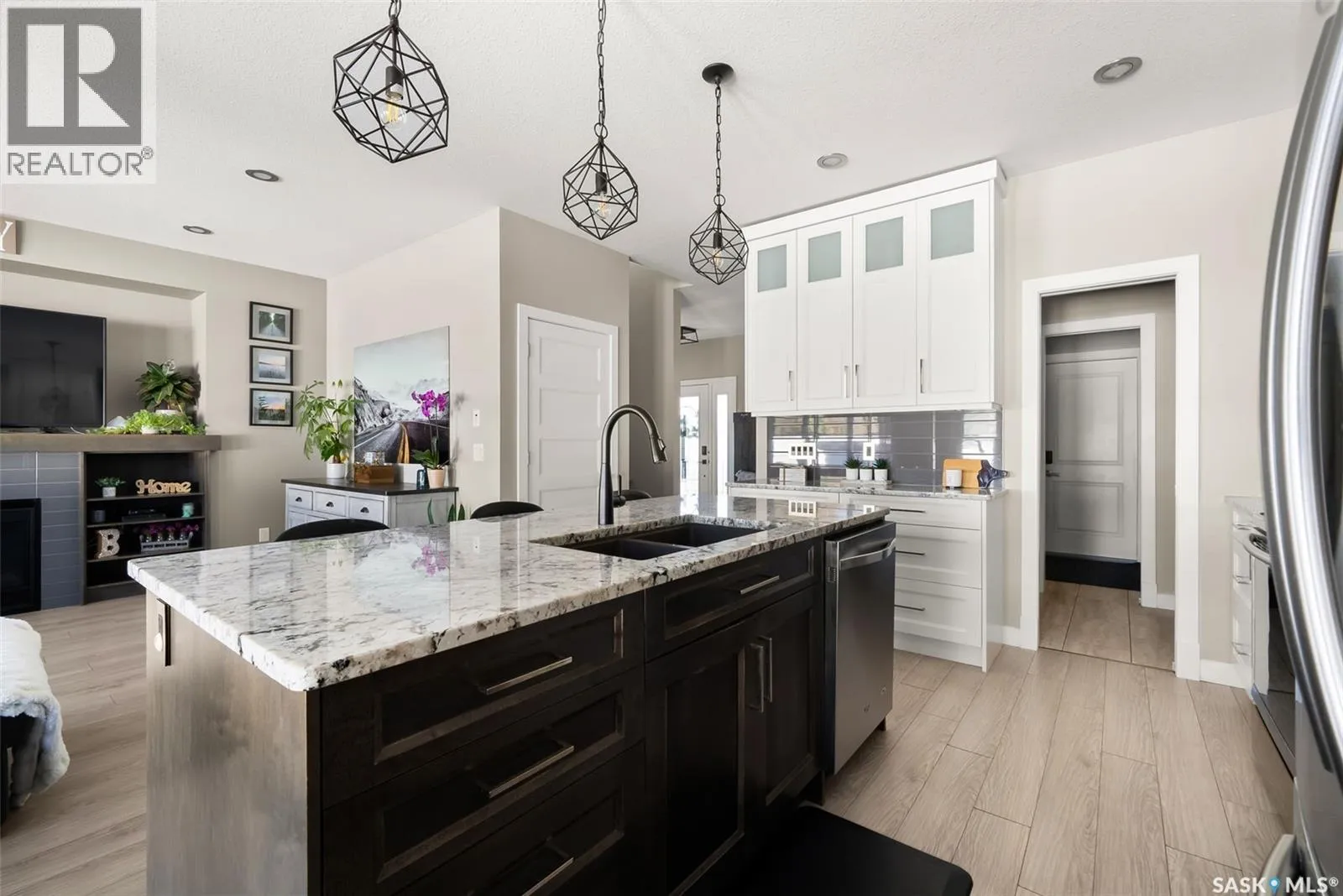 Welcome to 930 Westview Drive â a beautiful two-storey Ripplinger built home with incredible curb appeal and located on a quiet street in the family-friendly community of Balgonie. From the moment you arrive, youâll appreciate the triple attached garage, clean modern exterior and manicured landscaping that make this home stand out. Inside, the open-concept main floor is bright and inviting, featuring a spacious living area with a cozy fireplace, built-in shelving and large windows that fill the home with natural light. The kitchen is a showstopper with white cabinetry extending to the ceiling, a large island with an eat-up bar, stainless appliances, granite counter tops and a walk-through pantry offering everyday convenience and smart storage. Finishing off the main floor is a convenient 2-piece bathroom and laundry located in the mudroom. Upstairs, youâll find three generous bedrooms, including the primary suite with a walk-in closet and a 4-piece ensuite with dual vanities. The upper level also includes a full 4-piece bathroom and a bonus room thatâs perfect for a home office, playroom or relaxation space. The fully developed basement offers even more space with a large rec room featuring a suspended ceiling and laminate flooring, an additional bedroom, a 4-piece bathroom and a utility room with extra storage. Car enthusiasts and hobbyists alike will love the triple attached garage which is thoughtfully equipped with built-in ceiling storage, a workbench, drain pit, radiant heater and a drive-through door! The large backyard is perfect for families and entertaining, featuring an attached deck, lush green grass, a patio area, storage shed and a designated fire pit space to enjoy with company! You won't want to miss this opportunity. (id:27476)
