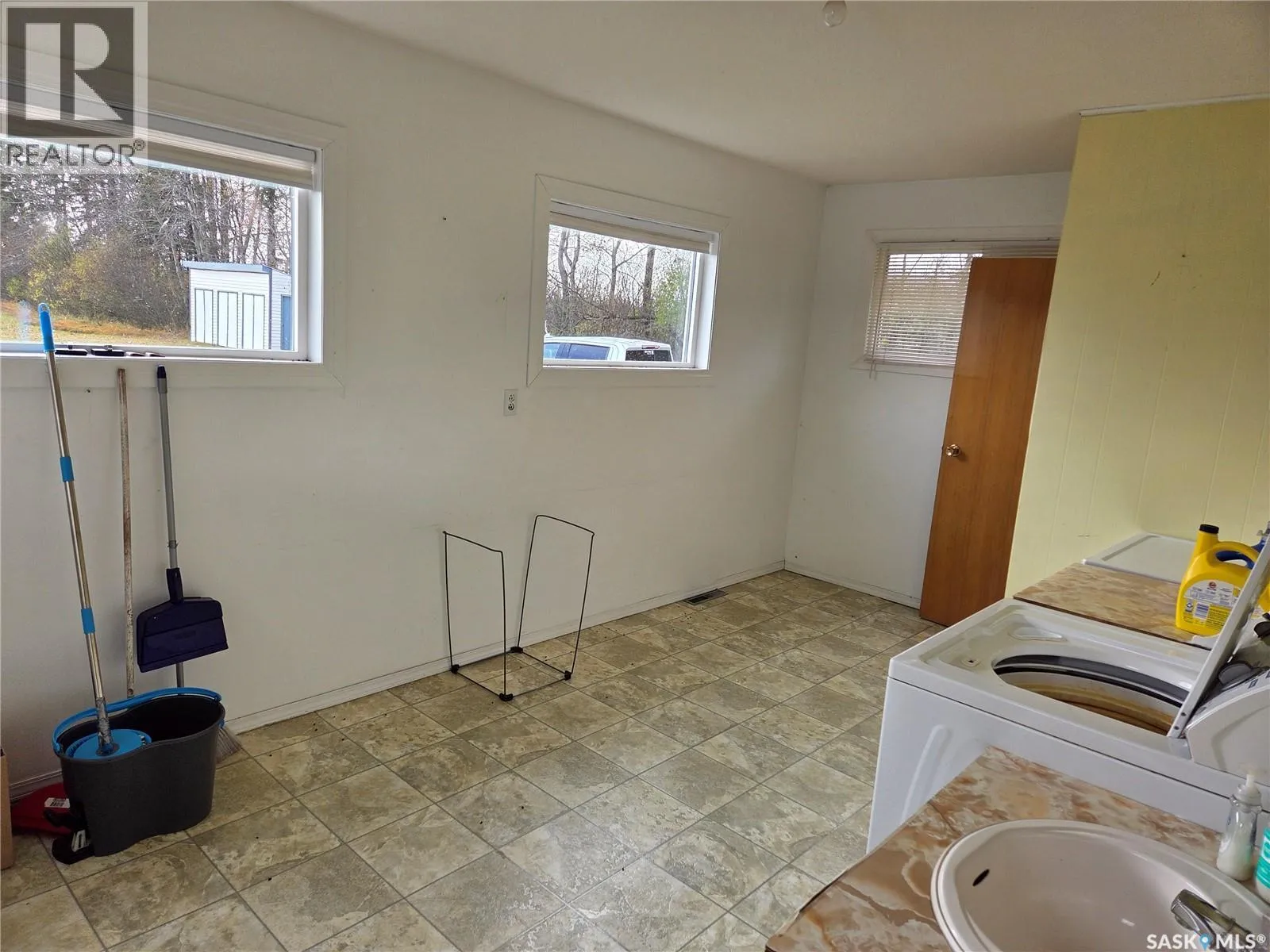 Time to look at the country for a hobby farm? This property includes all the assets you have been looking for. Nice yardsite with well maintained house and outbuildings, good quality grain land, fenced pasture land, some hay land and trees as well. The well cared for 972 sqft home features 2 bedrooms, 1.5 baths, open living space and a large porch with laundry room leading to the big 2 sided deck. The basement is 792 sqft and ready for your personal touches. There are 2 garages and a couple of sheds as well. Approximately 80 acres of the land is being cropped with another 53 presently used as hay and pasture land (was previously cropped). The whole quarter is fenced with some cross fencing inside. The yard is nicely protected with trees, there is recently installed EE propane furnace and electric water heater, 100 amp panel, 4" by 60 foot well, septic tank with pump out, r/o filtration and water softner. Shingles are new, windows and siding updated. The perfect opportunity does exist to own reasonably priced land and home in the beautiful north east and only 1 mile to town. (id:27476)
