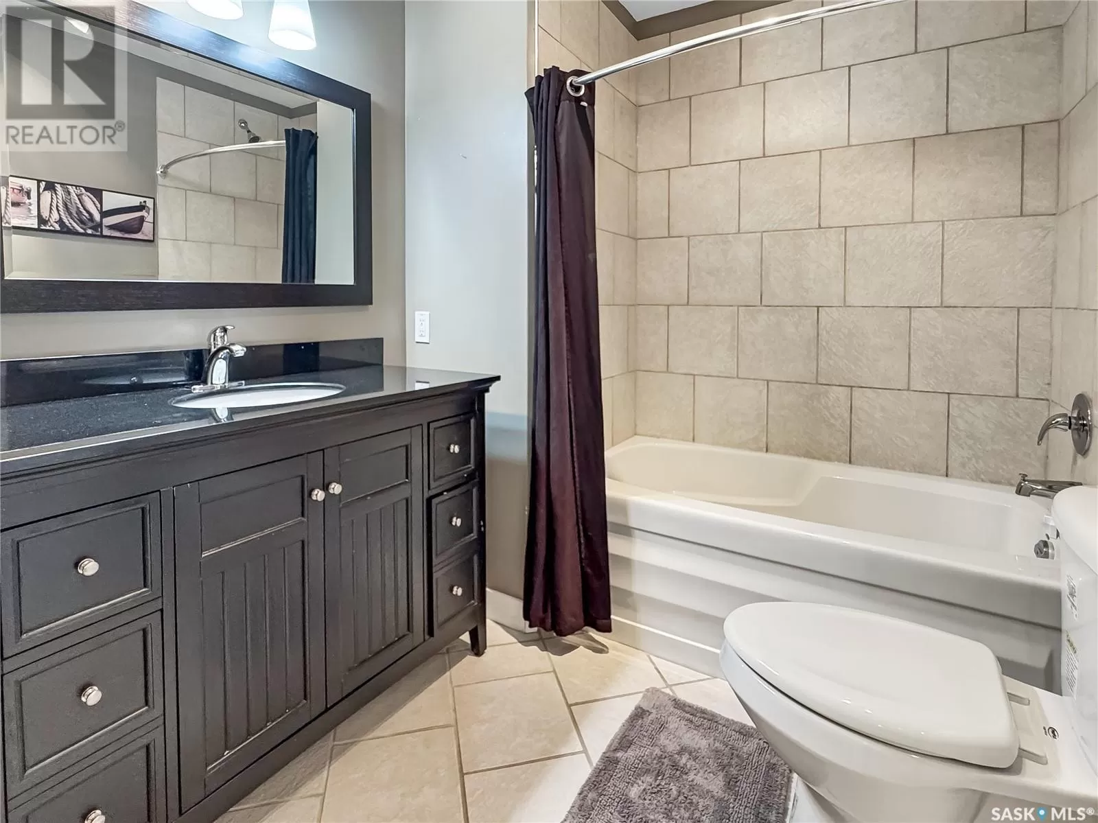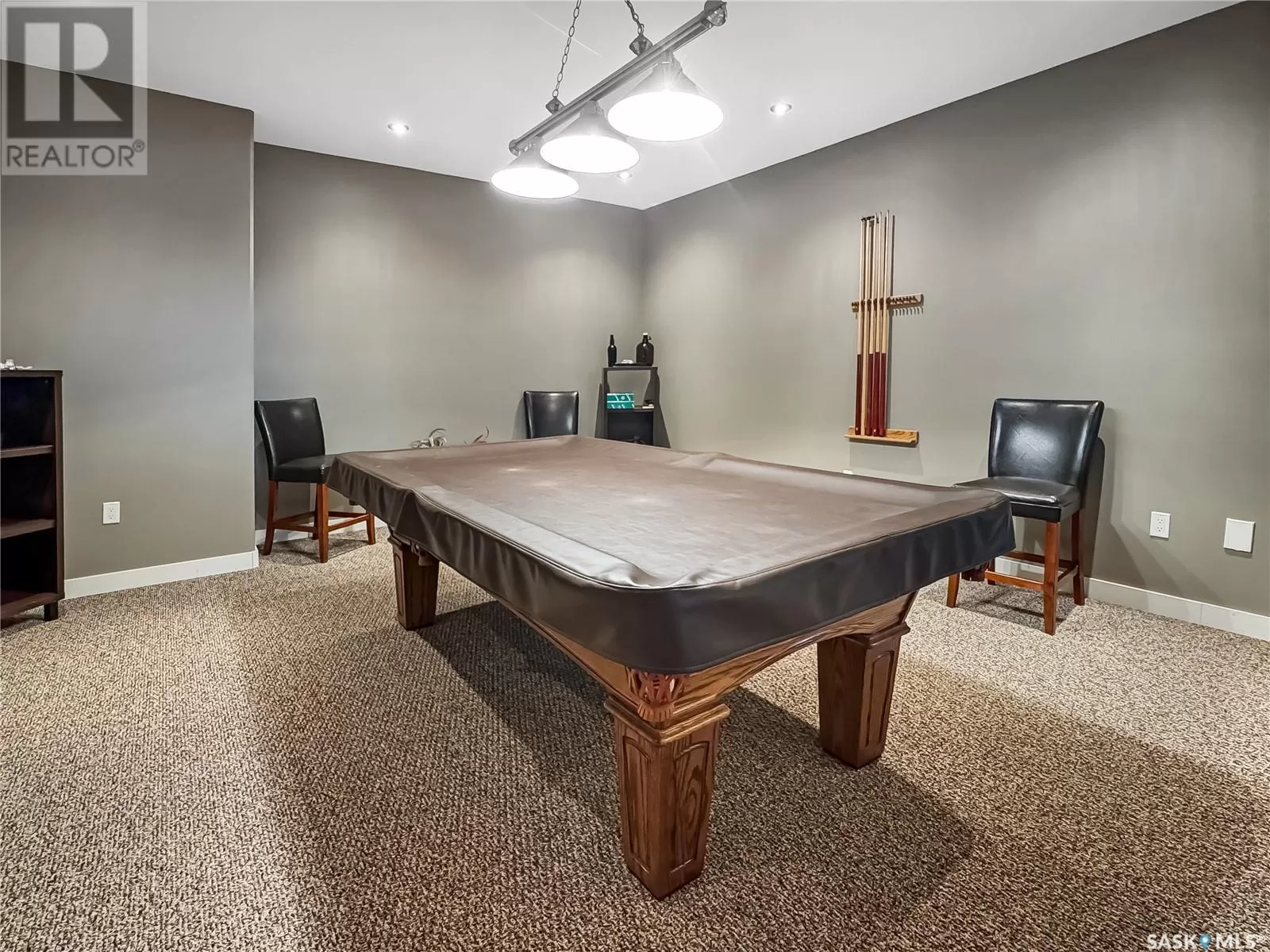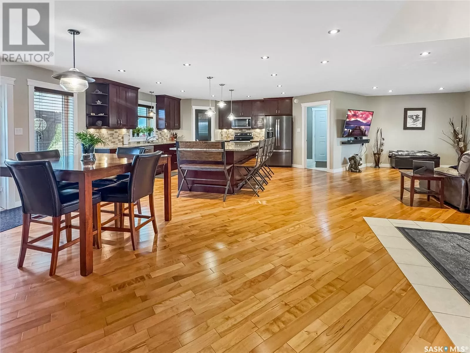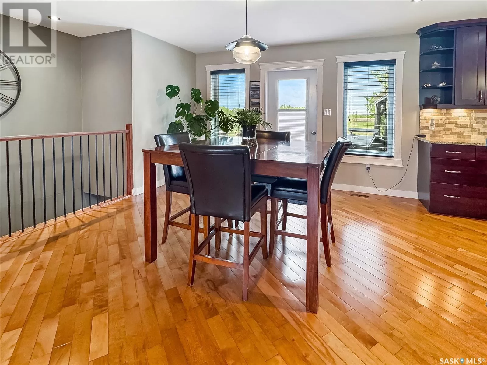 Tucked into the sought-after Battle Ridge Estates, this gorgeous 12.45-acre property offers the perfect mix of modern comfort and peaceful prairie living. From the moment you arrive, this home stands out. A paved driveway leads to a metal security gate, welcoming you into a beautifully landscaped yard equipped with over 100 underground sprinklers to keep everything lush and green. Inside, this spacious 5-bedroom bungalow is built to impress. The main level is constructed with 2x8 walls wrapped in 1.5 inches of Styrofoam insulation, delivering both efficiency and durability. Enjoy elegant finishes throughout including granite countertops, tile and hardwood flooring, and in-floor heat in the basement and garage as well as forced air natural gas furnace to accompany central air conditioning in the summer for the main floor. The heart of the home is the stunning kitchen featuring a massive granite island that flows seamlessly into the dining and living areas. Patio doors lead from the dining space to a large deck overlooking your private view of the natural Saskatchewan plains. The main floor includes three spacious bedrooms, and a luxurious primary suite with walk in closet, a Jacuzzi tub, tiled shower, and dual sinks. Downstairs, the fully finished basement features 9-foot ceilings, an expansive recreation area open to a cozy family room with a natural gas fireplace, two oversized bedrooms, a full bath, and another office or hobby space. The basement is built with 8-inch ICF walls, ensuring long-term strength and insulation. The triple attached garage adds even more value, boasting acid-stained in-floor heated concrete, plus a convenient bathroomâa rare find. There is a massive 40 x 40 pole shed for even more extras storage. Whether youâre seeking space, peace, or a high-end acreage lifestyle, this property offers it all. Move-in ready and built for comfortâcome experience the acreage life without giving up convenience. Call today to book your private showing. (id:27476)