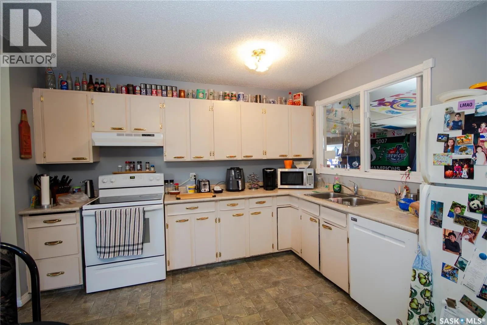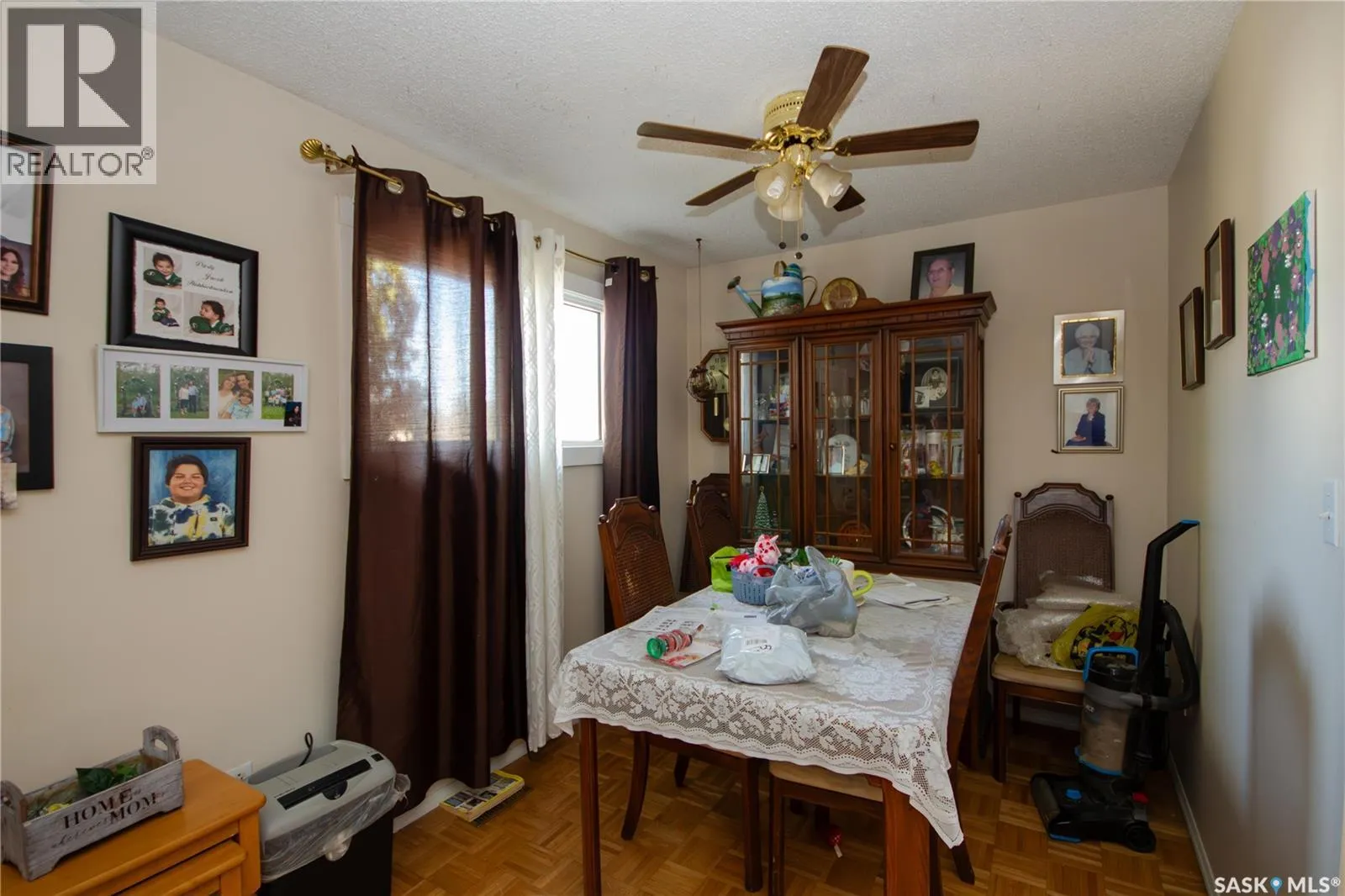 Lot 9 Blk 38 Plan 76B09791 Nestled in Battleford on 3rd Ave Crescent youâll find is this cozy bungalow featuring 2 bedrooms, 2 dens & 2 4pc bathrooms. Enter through the back porch where there is lots of room to store all of your outwear in the large closet. From there you can enter the 4-season living room which is off the back of the house where you can host a variety of activities and allows for easy access to a den that could easily be turned into a bedroom with a new egress window. Upstairs living space features a dedicated dining area with classic parquet flooring, a living room with a bright updated window, and an L-shaped kitchen with an additional eating area. A 4-pc bath and bedroom complete this floor. Downstairs features a bedroom, a den, and a unique 4-piece bathroom set up with the tub separate from the toilet and sink. Step outside to a deep paved driveway leading up to an 24x24 insulated garage, a great place to park and avoid the outside elements. The backyard is a bit larger than the average sized lot with plenty of space for your hobbies, BBQ's on the patio and storing your toys. Added value here with new central air and all new main floor exterior windows, both in 2024. Sounds like just what you are looking for? Call and schedule your showing today! (id:27476)
