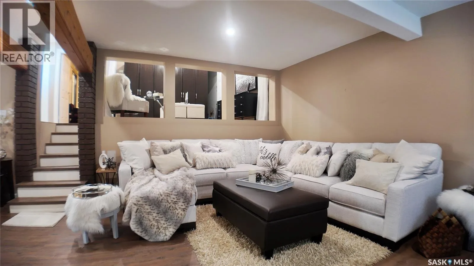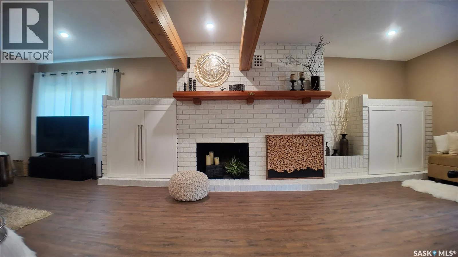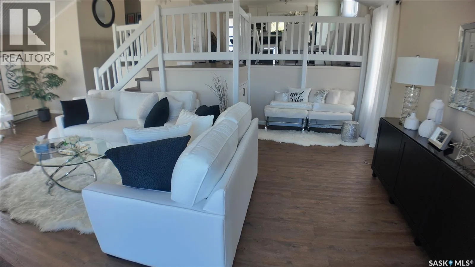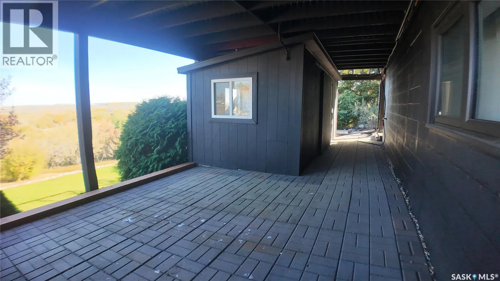 Experience refined living at 6 â 1st Avenue in Battleford. This 1,376 sq. ft. brick home blends timeless craftsmanship with modern elegance, offering 3 bedrooms, 3 bathrooms, and stunning panoramic views of the river valley, historic bridges, and ball diamonds. The interior features a custom white Bernier kitchen with Corian countertops, crown moulding, main floor laundry, and two wood-burning fireplaces for warmth and character. Outdoors, enjoy wrap-around decking, manicured landscaping with stone accents, a waterfall pond, and privacy with no homes in front. Completing the property is a 2019-built heated garage/shop with soaring 16â ceilings, mezzanine, in-floor heat, and top-quality construction. With its quiet location, upscale finishes, and unmatched setting, this home is truly one of a kind. (id:27476)