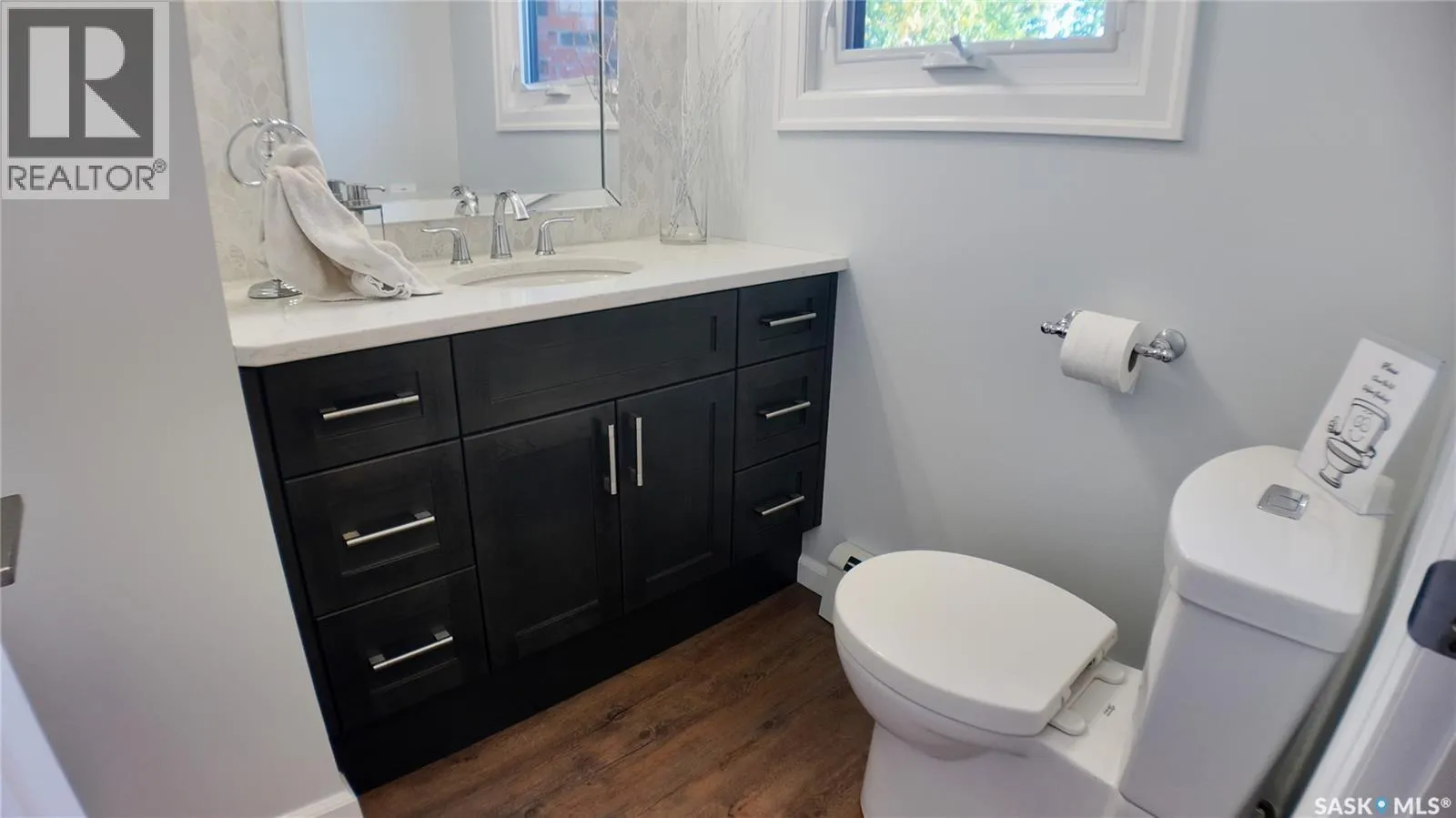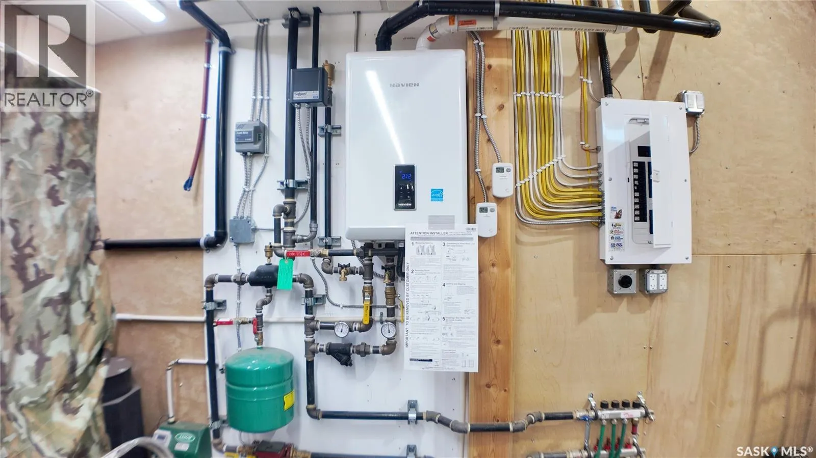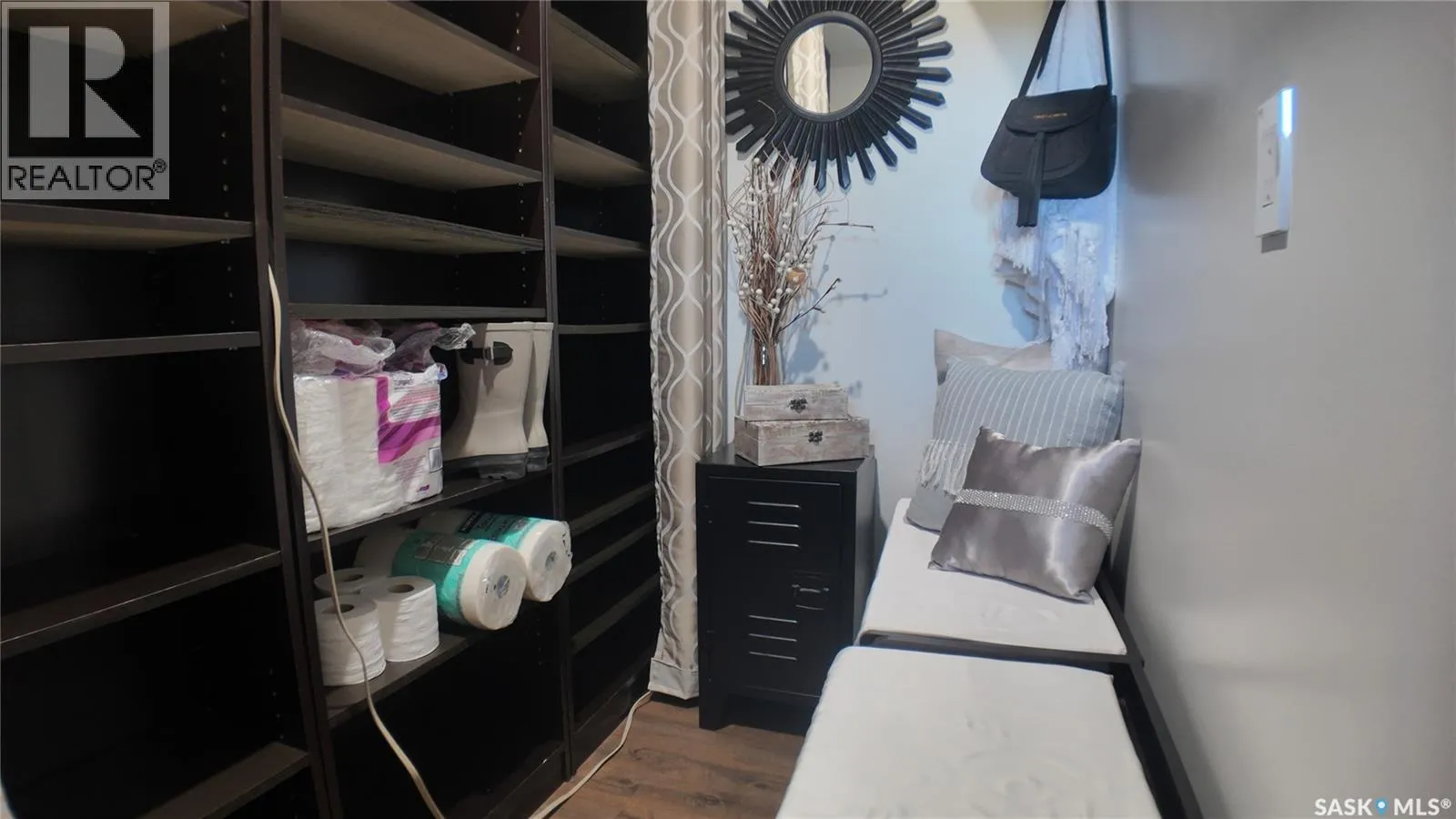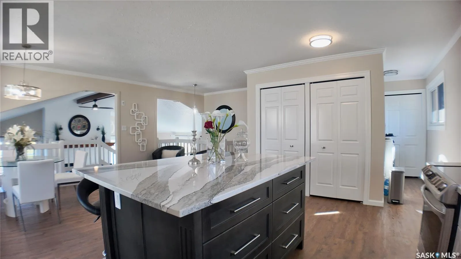 Experience refined living at 6 â 1st Avenue in Battleford. This 1,376 sq. ft. brick home blends timeless craftsmanship with modern elegance, offering 3 bedrooms, 3 bathrooms, and stunning panoramic views of the river valley, historic bridges, and ball diamonds. The interior features a custom white Bernier kitchen with Corian countertops, crown moulding, main floor laundry, and two wood-burning fireplaces for warmth and character. Outdoors, enjoy wrap-around decking, manicured landscaping with stone accents, a waterfall pond, and privacy with no homes in front. Completing the property is a 2019-built heated garage/shop with soaring 16â ceilings, mezzanine, in-floor heat, and top-quality construction. With its quiet location, upscale finishes, and unmatched setting, this home is truly one of a kind. (id:27476)