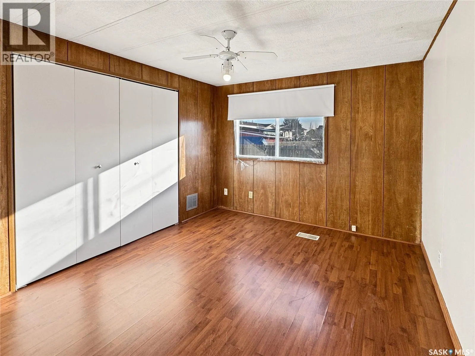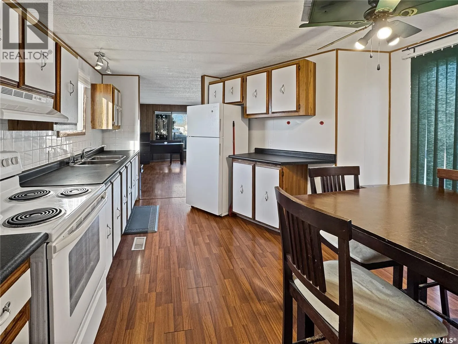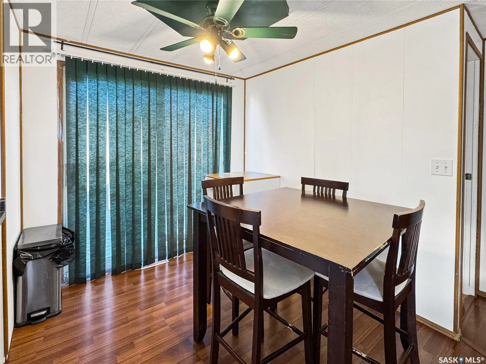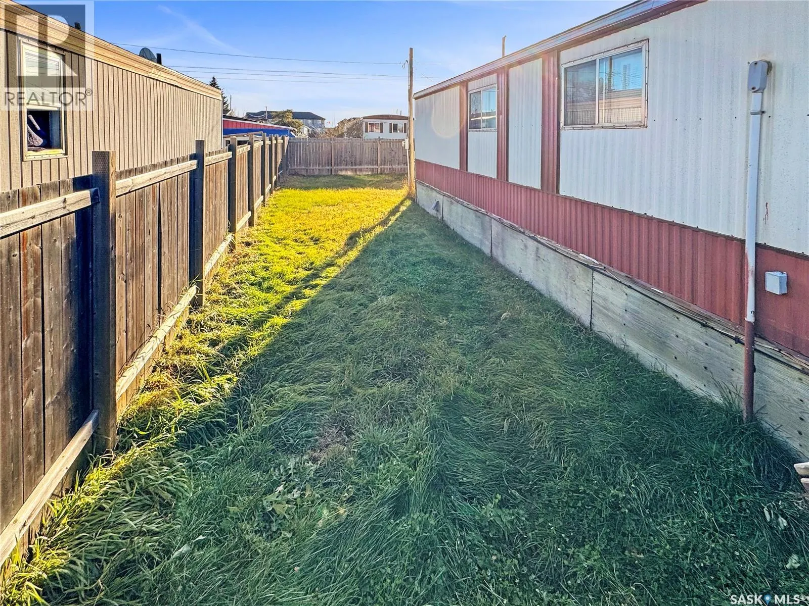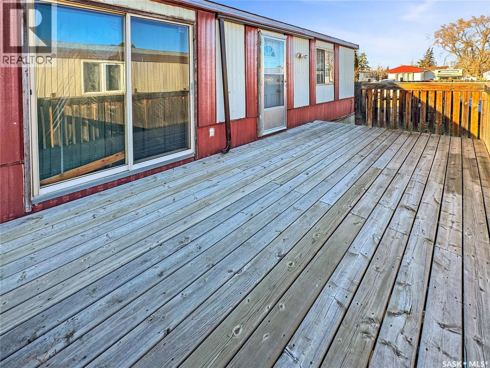 Affordable and Comfortable Living in Battleford! Discover great value with this well-cared-for mobile home situated on a titled lot in the Town of Battleford. Offering 1,092 sq. ft. of living space (including the addition), this home features 3 bedrooms plus a versatile flex room that could serve as a 4th bedroom, home office, or hobby space. The spacious living room is filled with natural light from a large picture window, while the kitchen offers ample cabinetry and is open to the dining area, complete with patio doors leading to a generous deckâperfect for relaxing or entertaining. The 4-piece bathroom is conveniently located off the kitchen, and all bedrooms are set toward the back for added privacy. Enjoy the ease of single-level living, plus many recent updates including new shingles (August 2022) and a new furnace (October 2022). The yard is fully fenced, offering a secure space for kids, pets, or gardening. This property is a fantastic opportunity for affordable home ownership in a great communityâmove-in ready and easy to maintain! (id:27476)