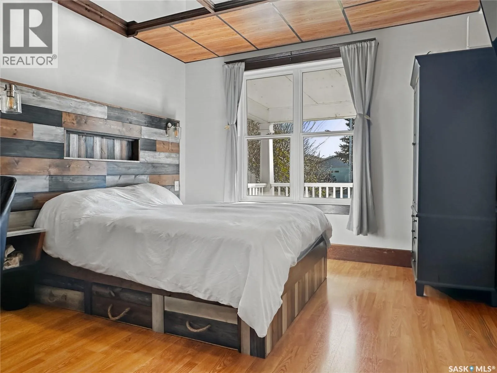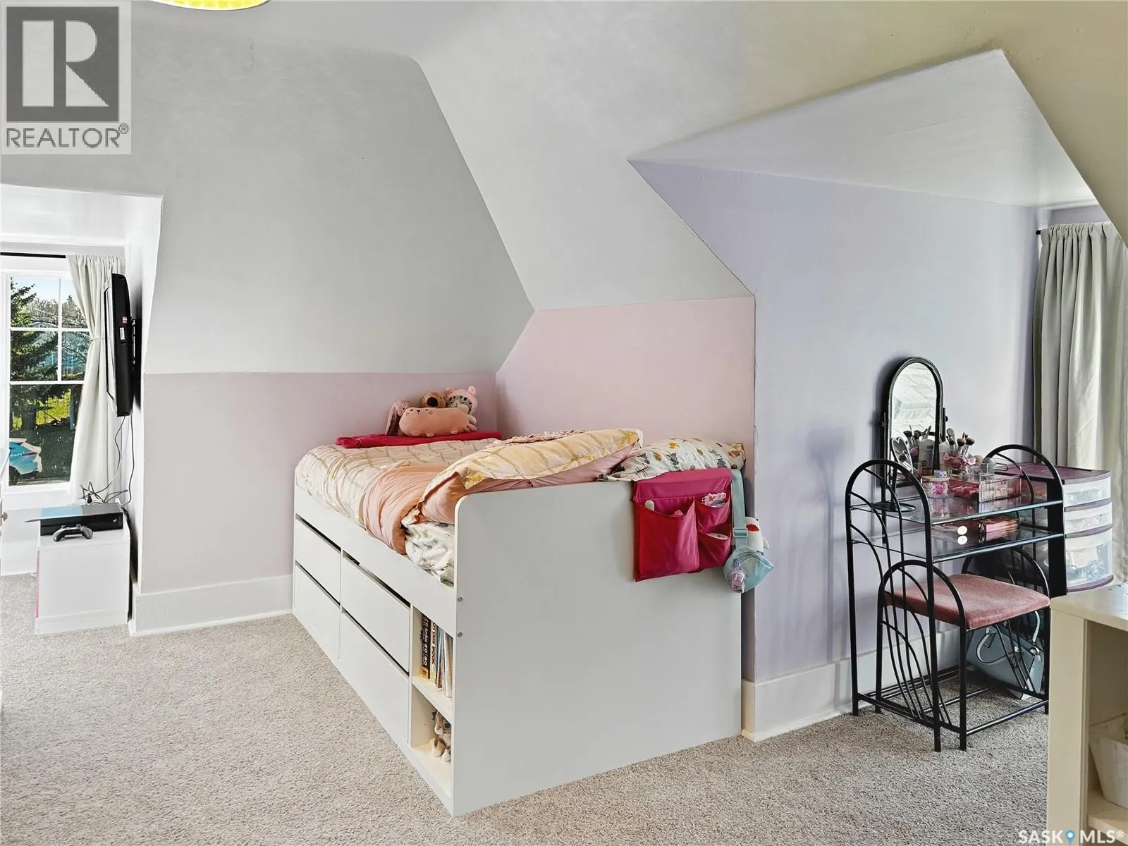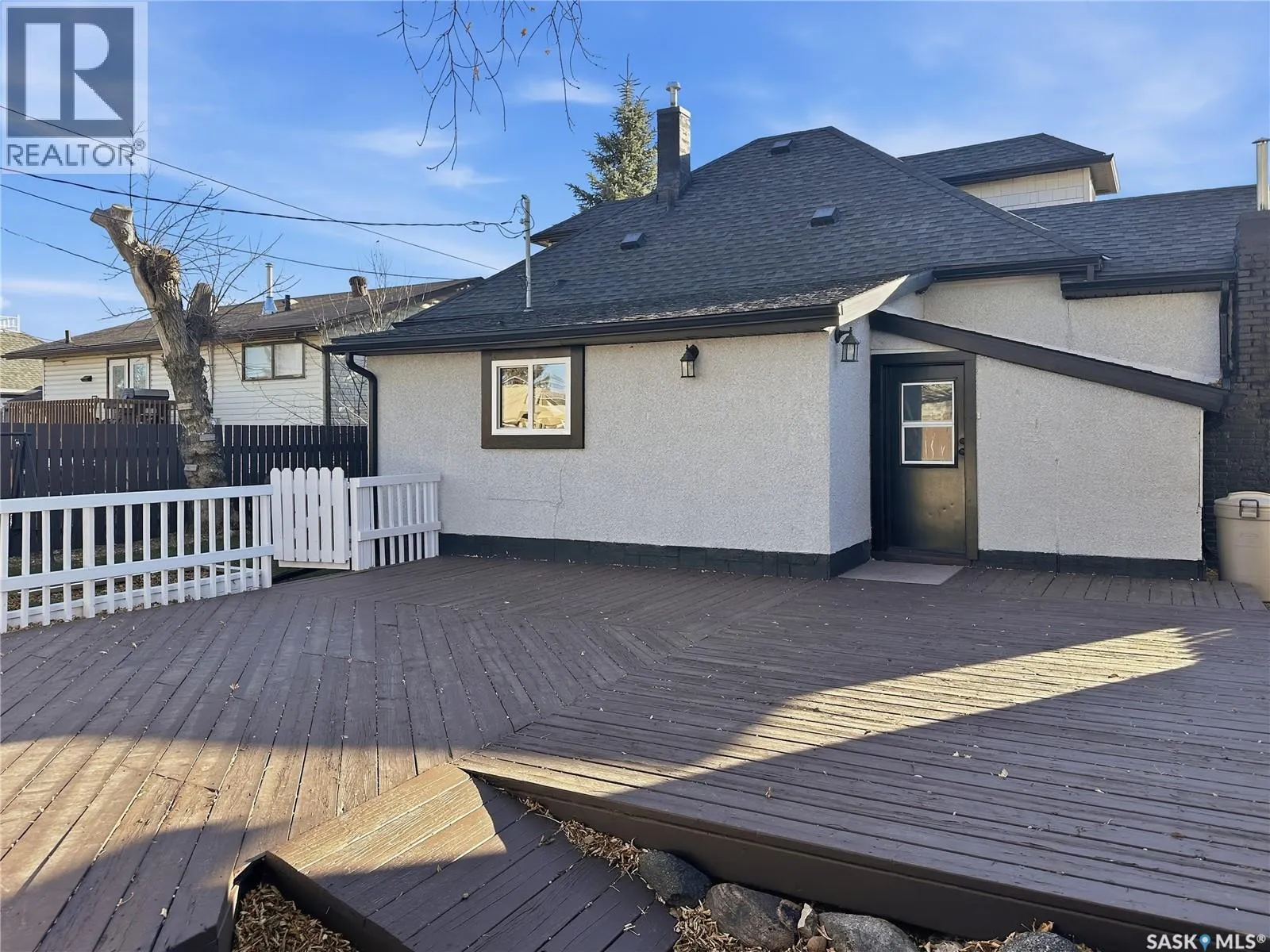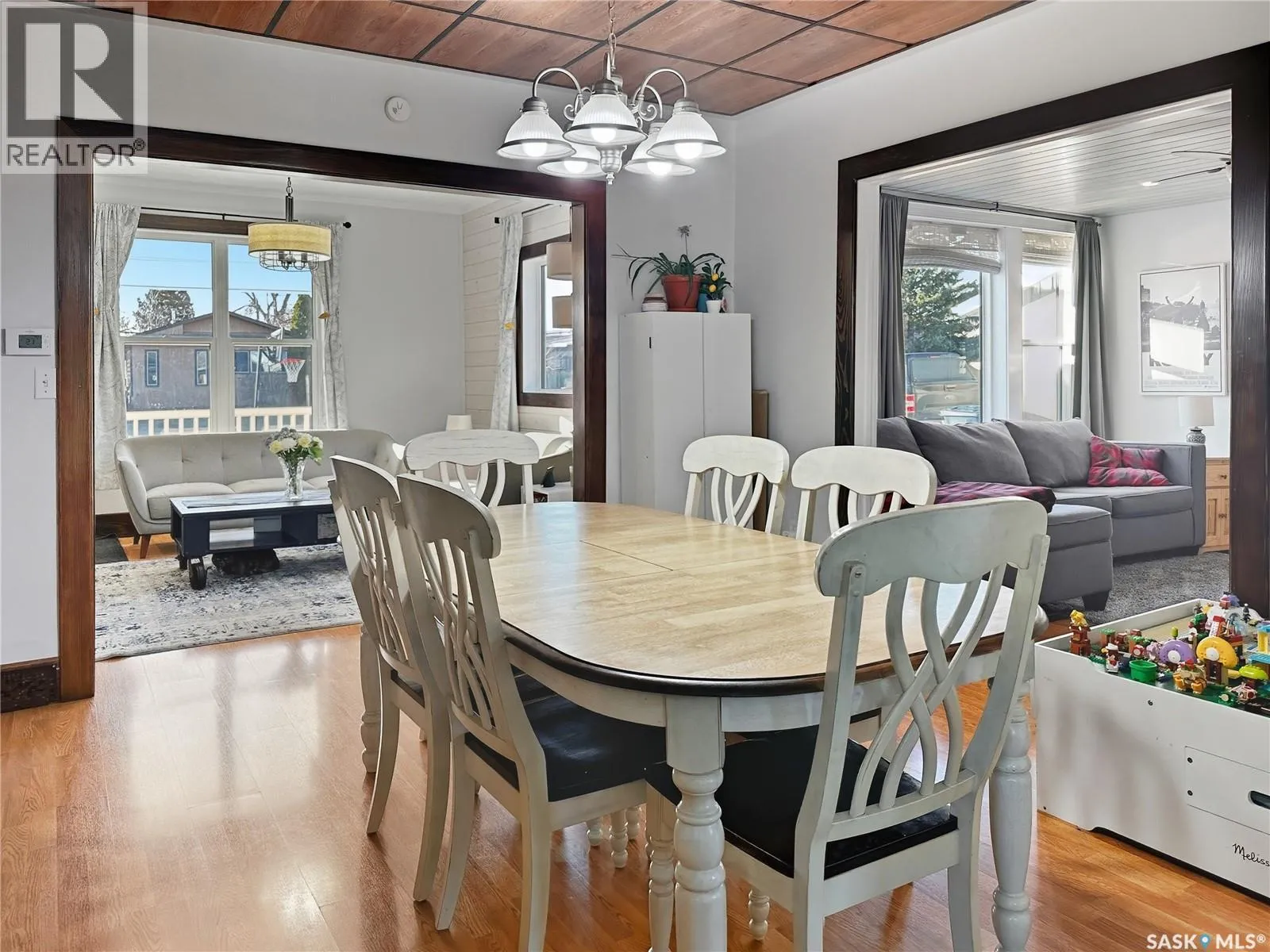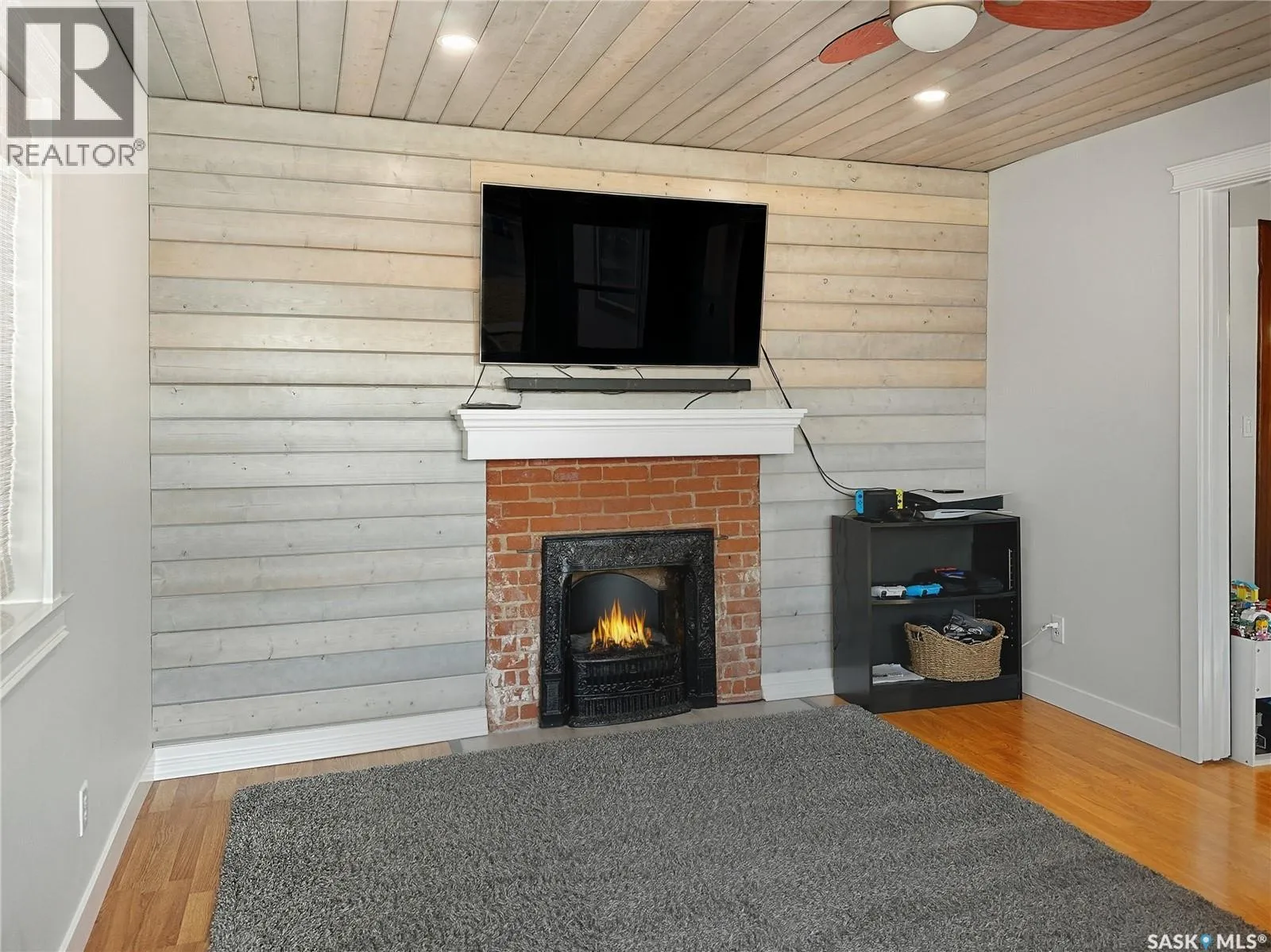 If these walls could talk⦠built in 1912, this solid and well-maintained home has countless stories to tell and all the character youâve been searching for. Located in the beautiful Town of Battleford, this property blends timeless charm with thoughtful updates. Step inside and feel the warmth right away. The spacious layout features large entryways connecting each room, with natural light pouring through the updated windows. A stunning solid wood banister greets you at the front doorâa classic hallmark of homes from this era. The living room is welcoming and flows seamlessly into the large dining area, perfect for hosting family and friends. Adjacent to the dining room is a cozy family room that was completely redoneâtaken down to the studs with new insulation, lighting, and a feature wall showcasing an electric fireplace set in the original brick surround. The kitchen offers excellent storage with an island, pantry, and plenty of cabinetry. Off the back door, youâll find a spacious mudroom ideal for winter gear and everyday use. The primary bedroom is conveniently located on the main floor, right next to the laundry area and a beautifully renovated 4-piece bathroom with quality finishes. Upstairs are two unique bedrooms, full of character and charmâeach with cozy nooks perfect for reading or play. The partial basement is great for storage and houses the updated furnace, hot water heater, and electrical panel. Central air conditioning was just installed in 2025 for added comfort. Outside, enjoy a large deck for entertaining, a fenced yard with a play structure and garden shed, and a single detached garage with a brand-new overhead door. And after a long dayâs work, unwind on the quaint covered front porchâa perfect spot to relax and take in the peaceful surroundings. This one-of-a-kind Battleford home is filled with history, charm, and comfortâready for its next story to begin. Call for your personal tour of this beautiful property today! (id:27476)