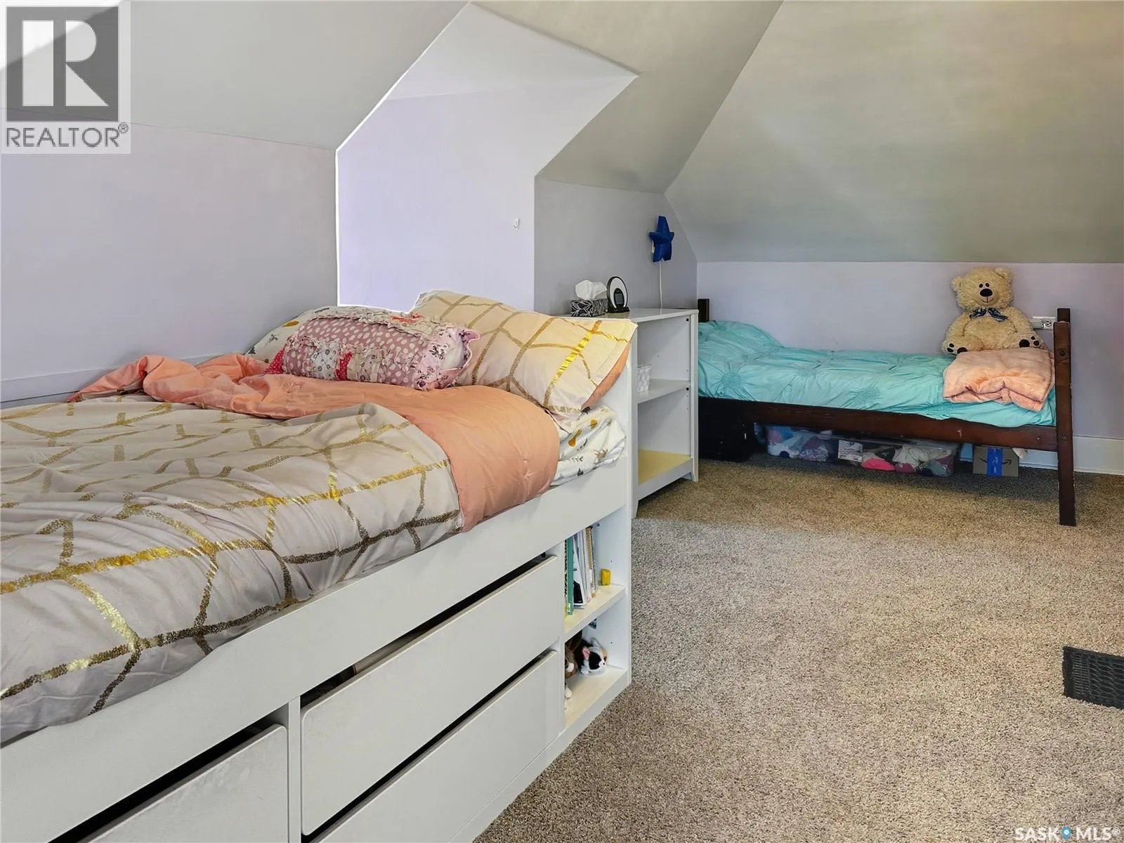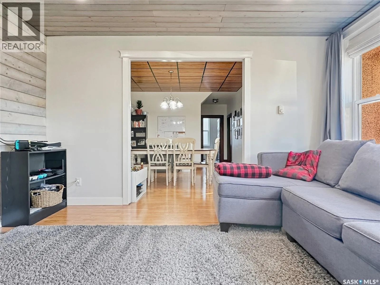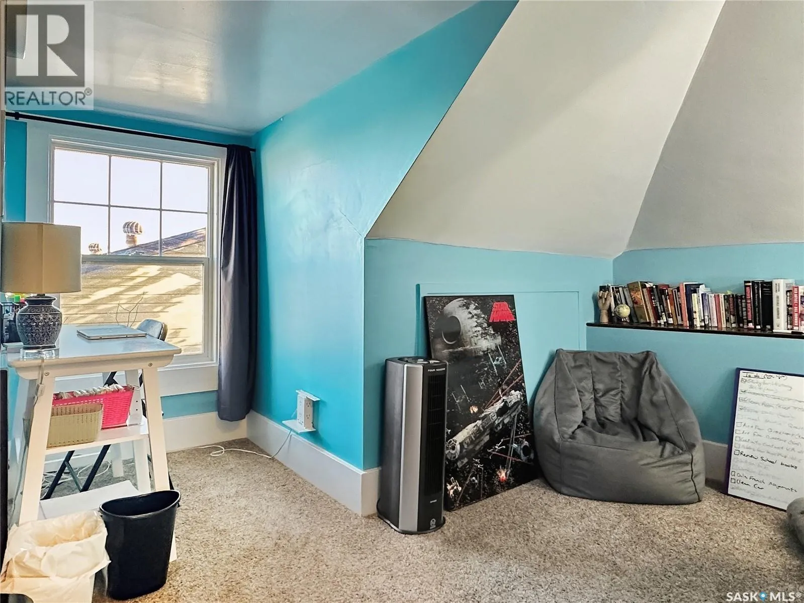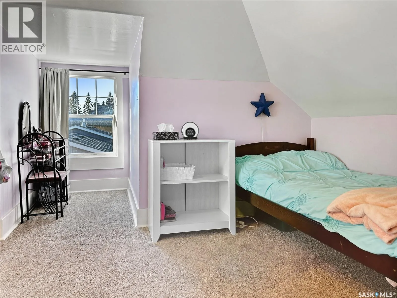 If these walls could talk⦠built in 1912, this solid and well-maintained home has countless stories to tell and all the character youâve been searching for. Located in the beautiful Town of Battleford, this property blends timeless charm with thoughtful updates. Step inside and feel the warmth right away. The spacious layout features large entryways connecting each room, with natural light pouring through the updated windows. A stunning solid wood banister greets you at the front doorâa classic hallmark of homes from this era. The living room is welcoming and flows seamlessly into the large dining area, perfect for hosting family and friends. Adjacent to the dining room is a cozy family room that was completely redoneâtaken down to the studs with new insulation, lighting, and a feature wall showcasing an electric fireplace set in the original brick surround. The kitchen offers excellent storage with an island, pantry, and plenty of cabinetry. Off the back door, youâll find a spacious mudroom ideal for winter gear and everyday use. The primary bedroom is conveniently located on the main floor, right next to the laundry area and a beautifully renovated 4-piece bathroom with quality finishes. Upstairs are two unique bedrooms, full of character and charmâeach with cozy nooks perfect for reading or play. The partial basement is great for storage and houses the updated furnace, hot water heater, and electrical panel. Central air conditioning was just installed in 2025 for added comfort. Outside, enjoy a large deck for entertaining, a fenced yard with a play structure and garden shed, and a single detached garage with a brand-new overhead door. And after a long dayâs work, unwind on the quaint covered front porchâa perfect spot to relax and take in the peaceful surroundings. This one-of-a-kind Battleford home is filled with history, charm, and comfortâready for its next story to begin. Call for your personal tour of this beautiful property today! (id:27476)