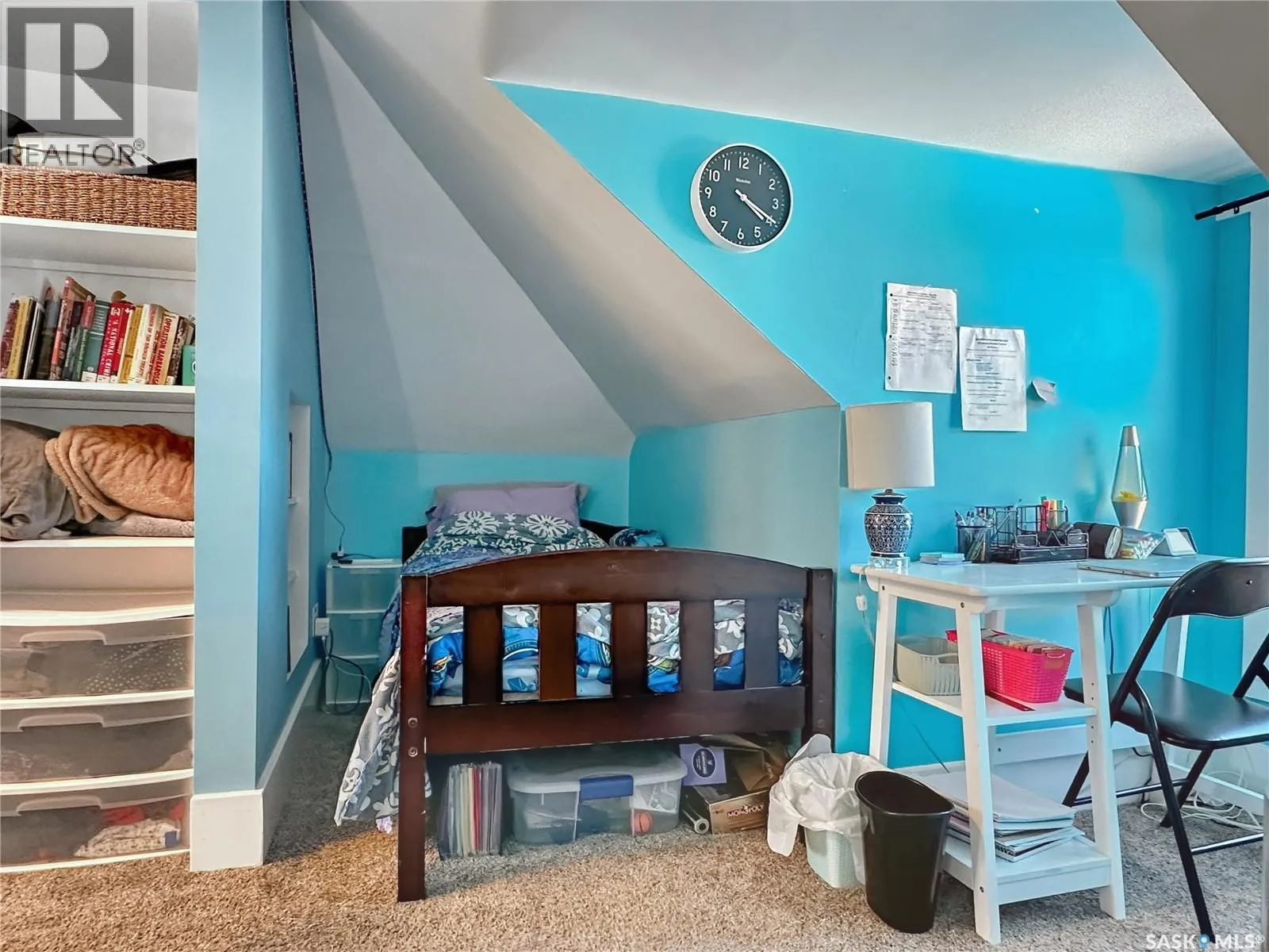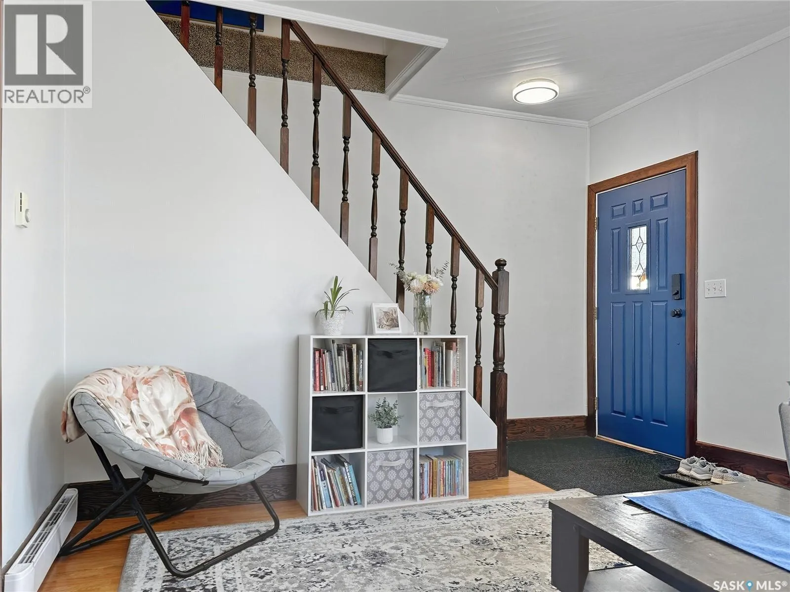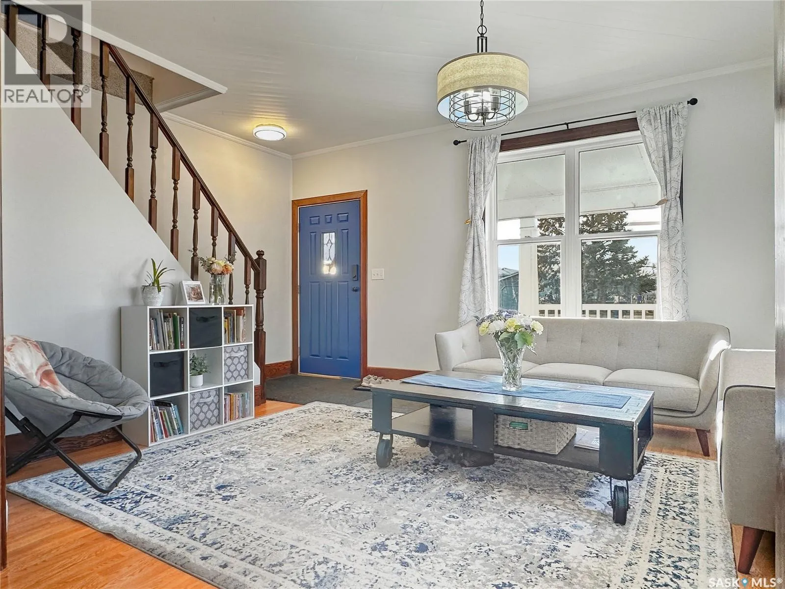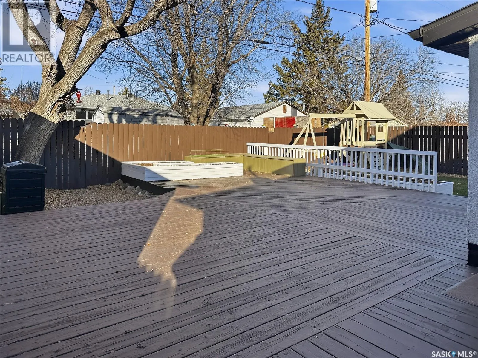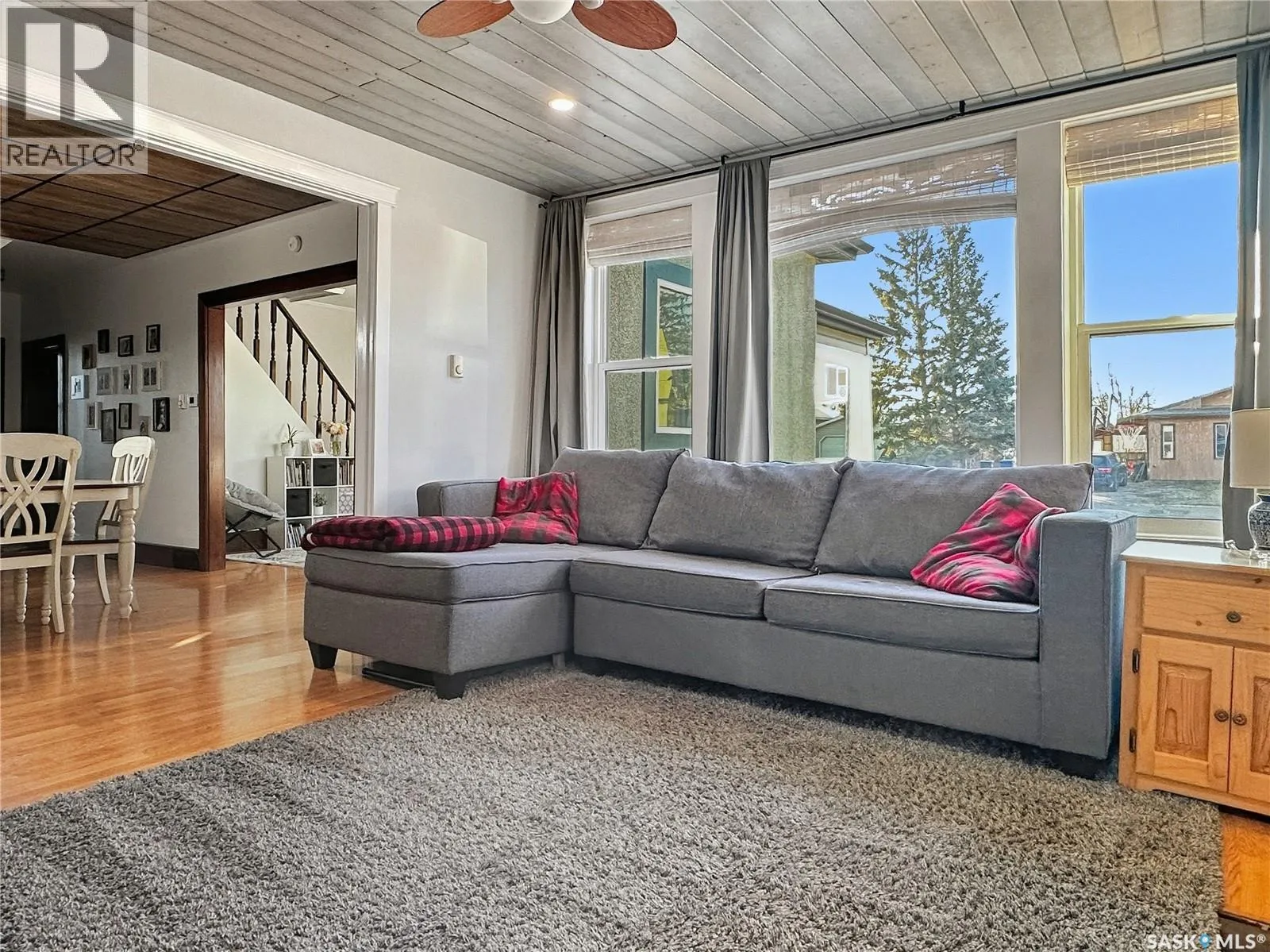 If these walls could talk⦠built in 1912, this solid and well-maintained home has countless stories to tell and all the character youâve been searching for. Located in the beautiful Town of Battleford, this property blends timeless charm with thoughtful updates. Step inside and feel the warmth right away. The spacious layout features large entryways connecting each room, with natural light pouring through the updated windows. A stunning solid wood banister greets you at the front doorâa classic hallmark of homes from this era. The living room is welcoming and flows seamlessly into the large dining area, perfect for hosting family and friends. Adjacent to the dining room is a cozy family room that was completely redoneâtaken down to the studs with new insulation, lighting, and a feature wall showcasing an electric fireplace set in the original brick surround. The kitchen offers excellent storage with an island, pantry, and plenty of cabinetry. Off the back door, youâll find a spacious mudroom ideal for winter gear and everyday use. The primary bedroom is conveniently located on the main floor, right next to the laundry area and a beautifully renovated 4-piece bathroom with quality finishes. Upstairs are two unique bedrooms, full of character and charmâeach with cozy nooks perfect for reading or play. The partial basement is great for storage and houses the updated furnace, hot water heater, and electrical panel. Central air conditioning was just installed in 2025 for added comfort. Outside, enjoy a large deck for entertaining, a fenced yard with a play structure and garden shed, and a single detached garage with a brand-new overhead door. And after a long dayâs work, unwind on the quaint covered front porchâa perfect spot to relax and take in the peaceful surroundings. This one-of-a-kind Battleford home is filled with history, charm, and comfortâready for its next story to begin. Call for your personal tour of this beautiful property today! (id:27476)