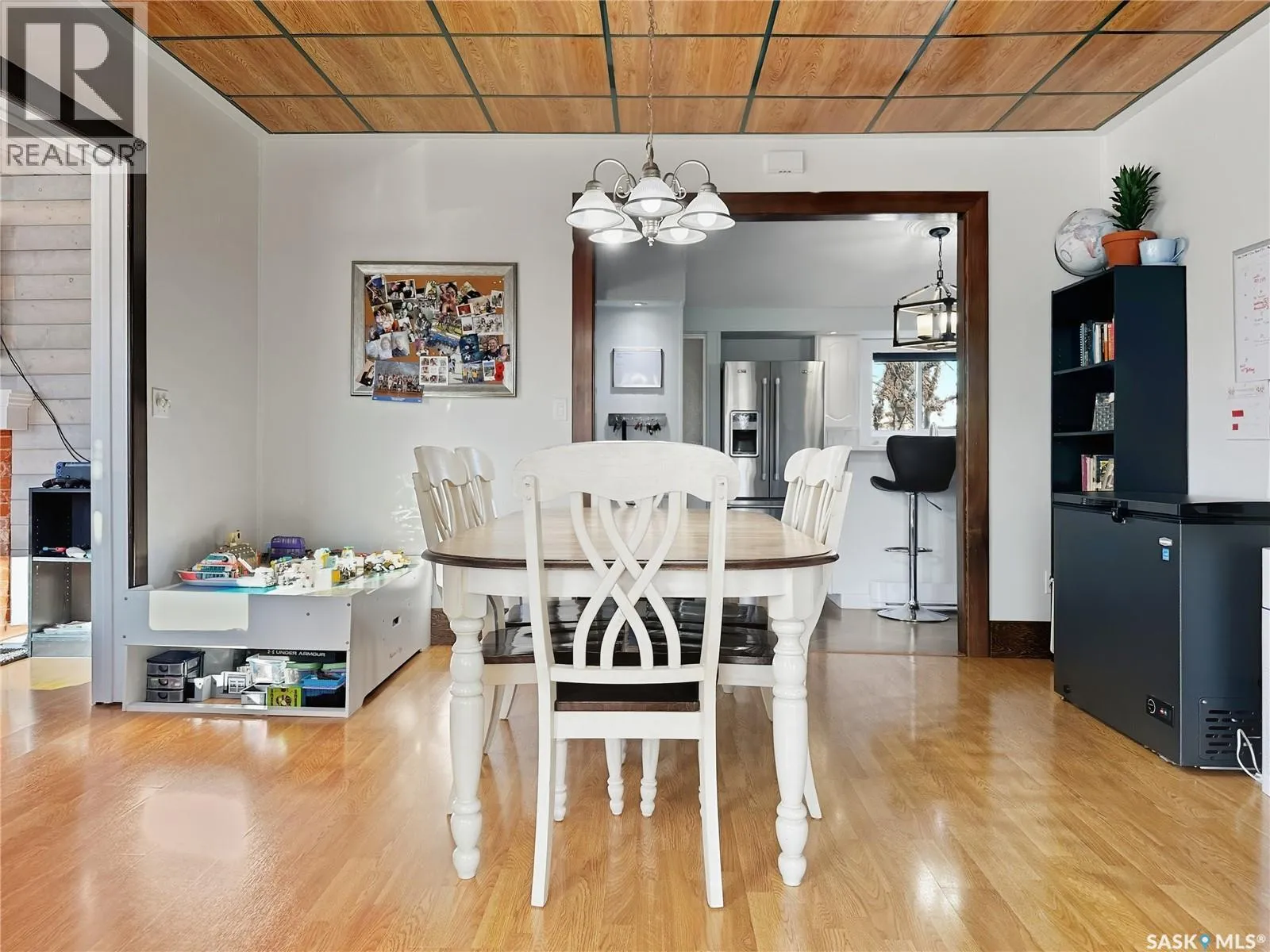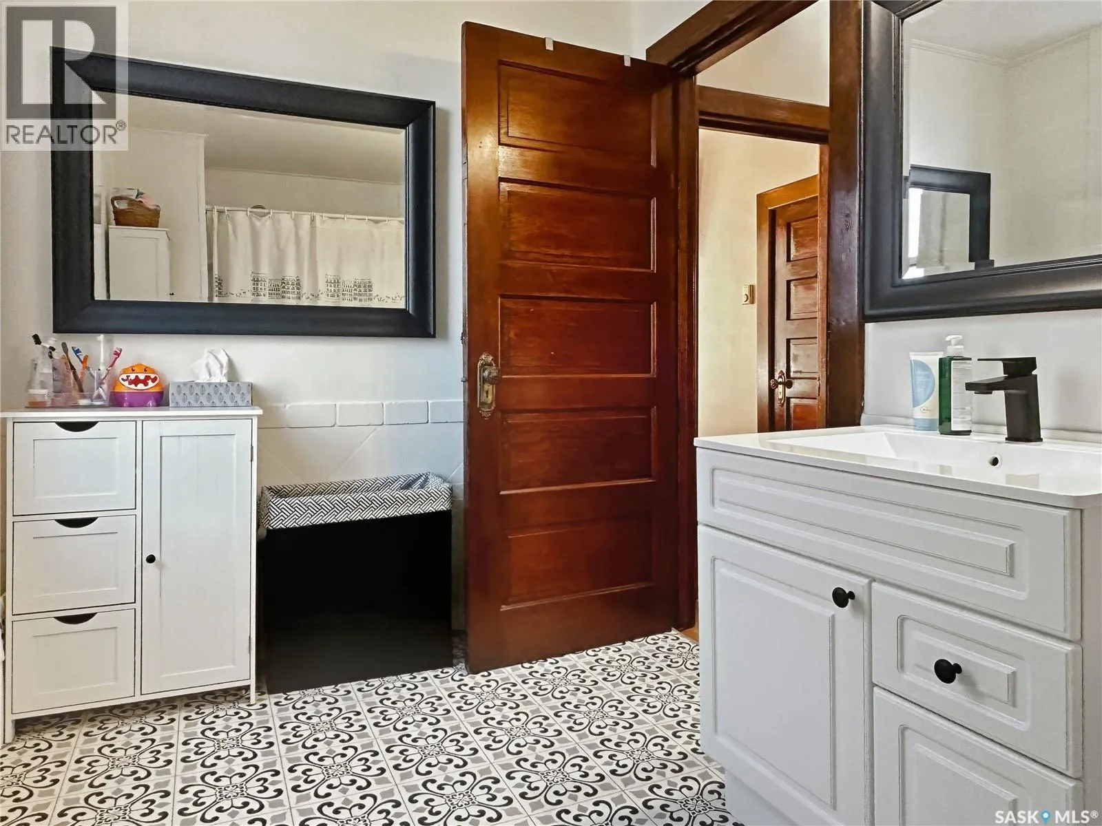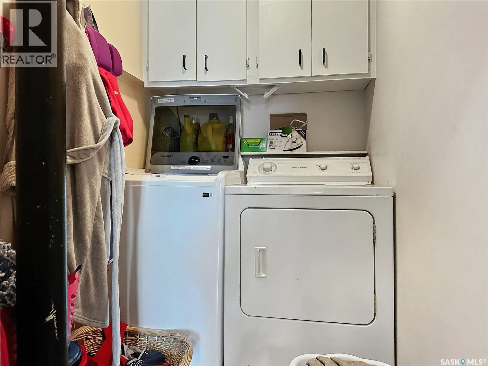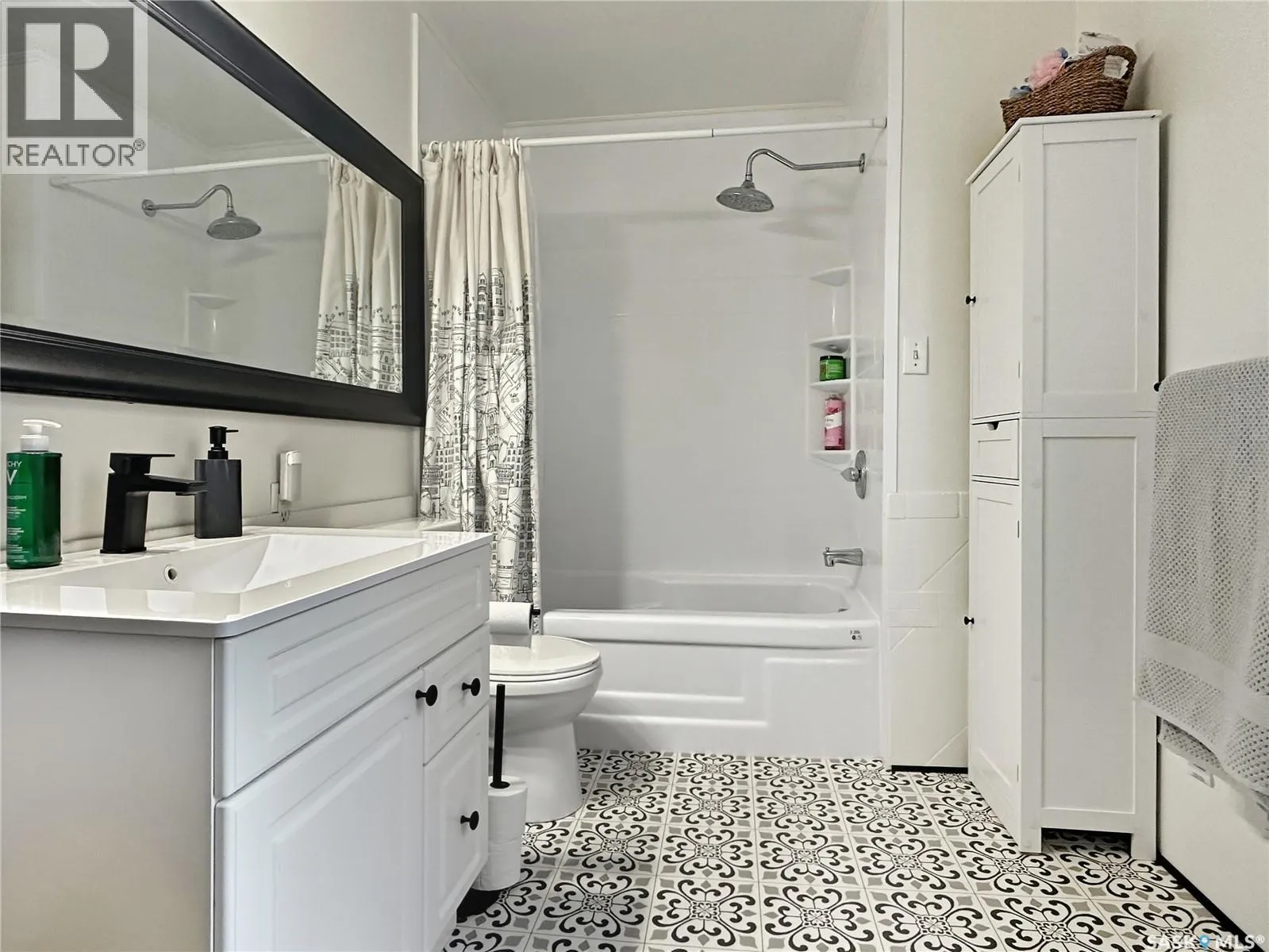 If these walls could talk⦠built in 1912, this solid and well-maintained home has countless stories to tell and all the character youâve been searching for. Located in the beautiful Town of Battleford, this property blends timeless charm with thoughtful updates. Step inside and feel the warmth right away. The spacious layout features large entryways connecting each room, with natural light pouring through the updated windows. A stunning solid wood banister greets you at the front doorâa classic hallmark of homes from this era. The living room is welcoming and flows seamlessly into the large dining area, perfect for hosting family and friends. Adjacent to the dining room is a cozy family room that was completely redoneâtaken down to the studs with new insulation, lighting, and a feature wall showcasing an electric fireplace set in the original brick surround. The kitchen offers excellent storage with an island, pantry, and plenty of cabinetry. Off the back door, youâll find a spacious mudroom ideal for winter gear and everyday use. The primary bedroom is conveniently located on the main floor, right next to the laundry area and a beautifully renovated 4-piece bathroom with quality finishes. Upstairs are two unique bedrooms, full of character and charmâeach with cozy nooks perfect for reading or play. The partial basement is great for storage and houses the updated furnace, hot water heater, and electrical panel. Central air conditioning was just installed in 2025 for added comfort. Outside, enjoy a large deck for entertaining, a fenced yard with a play structure and garden shed, and a single detached garage with a brand-new overhead door. And after a long dayâs work, unwind on the quaint covered front porchâa perfect spot to relax and take in the peaceful surroundings. This one-of-a-kind Battleford home is filled with history, charm, and comfortâready for its next story to begin. Call for your personal tour of this beautiful property today! (id:27476)