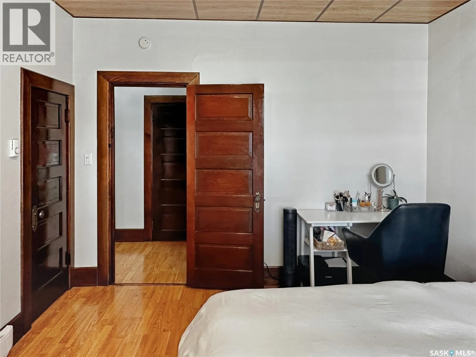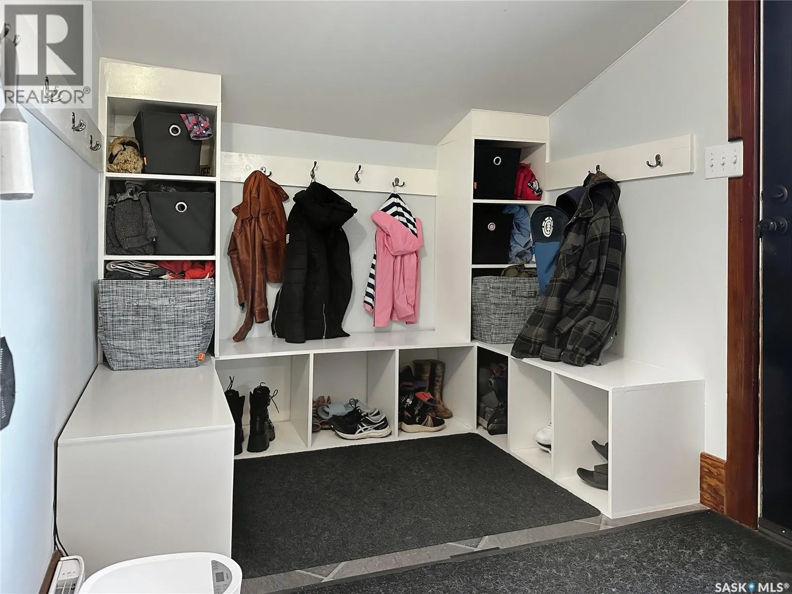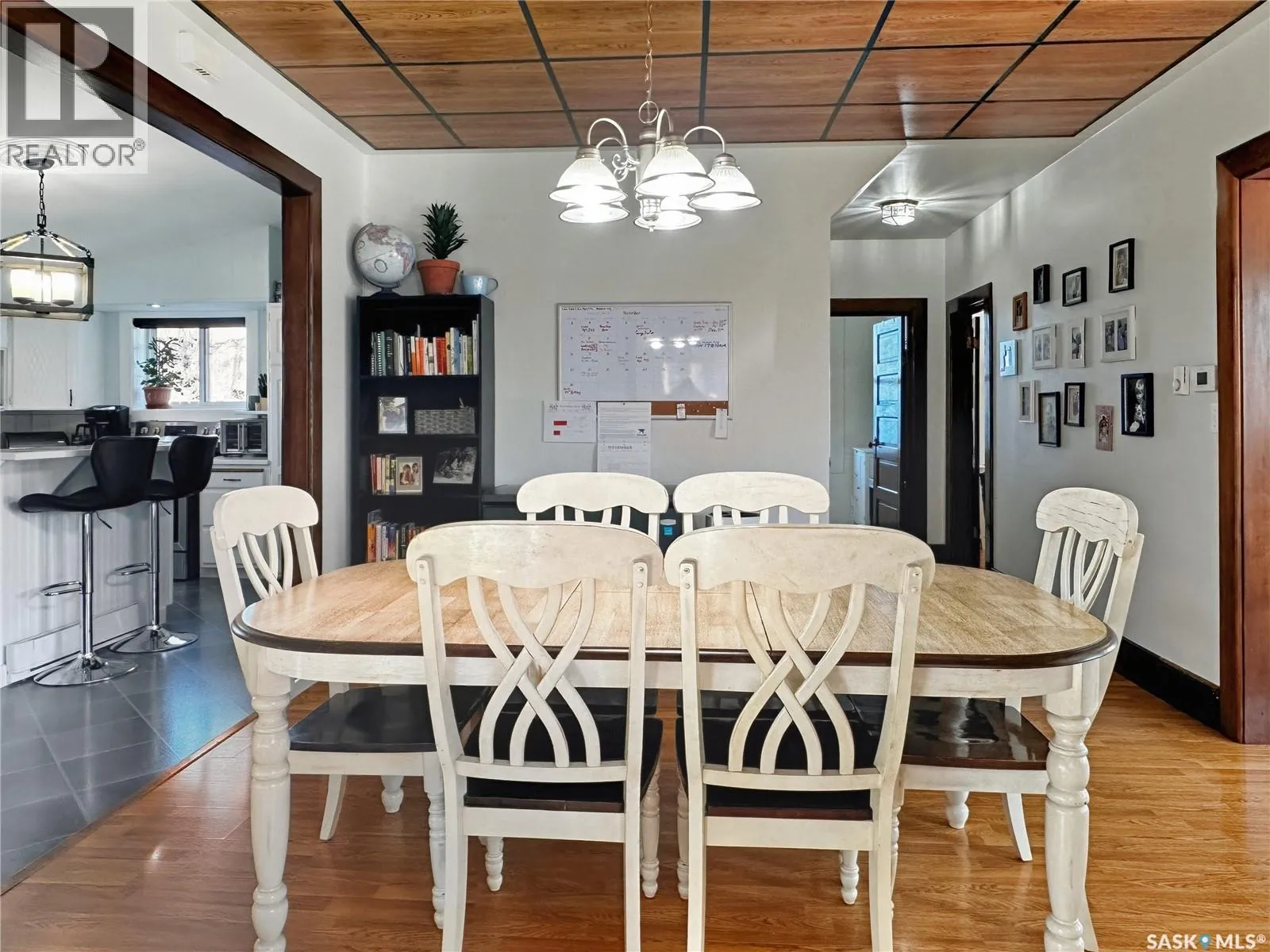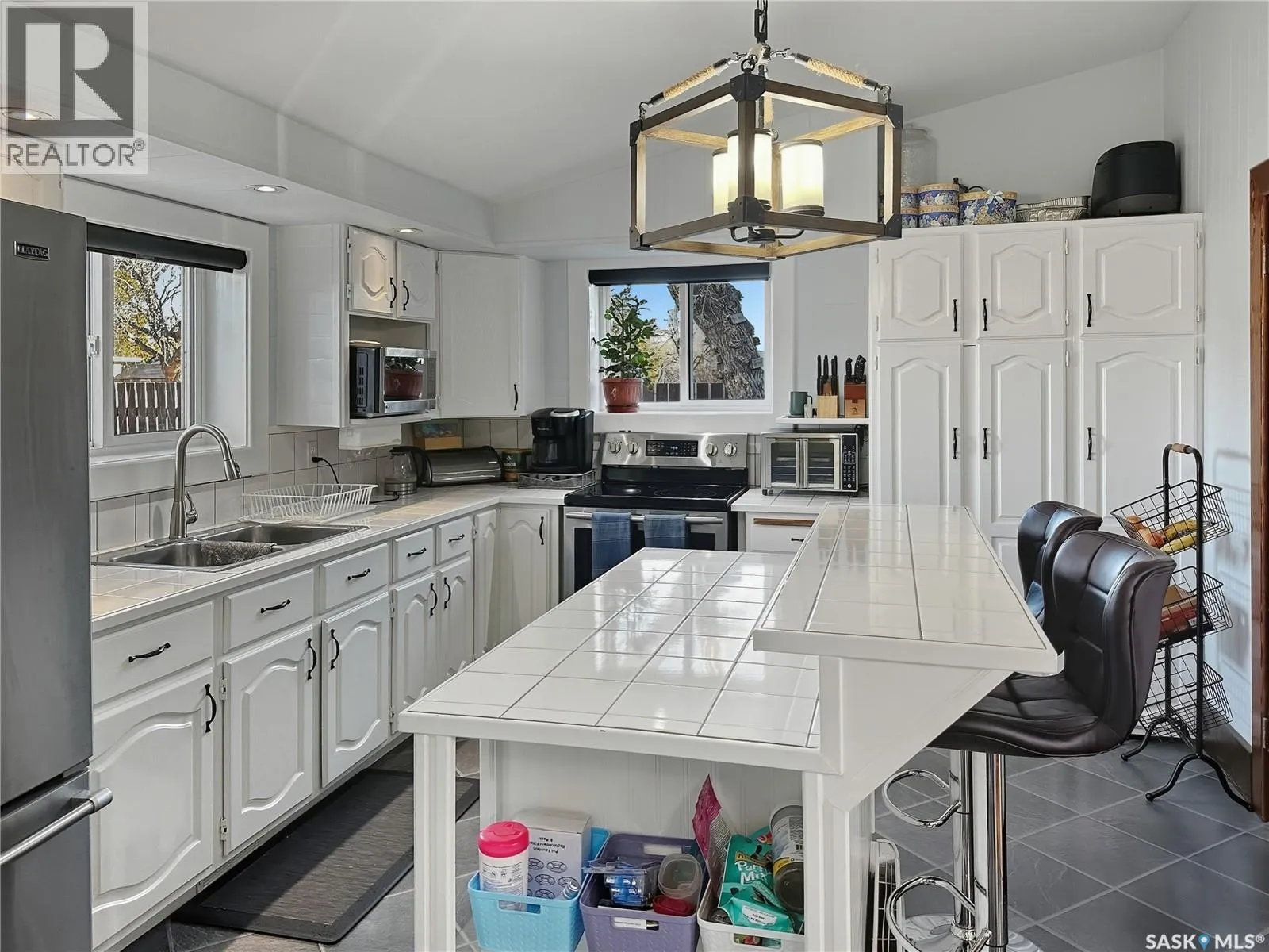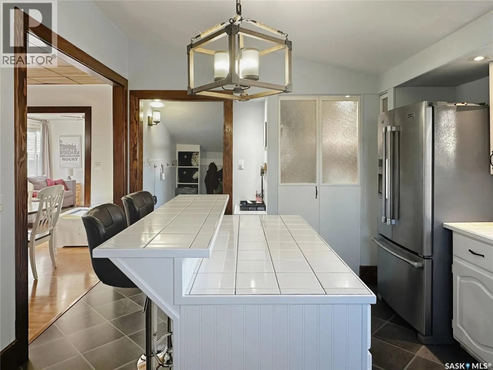 If these walls could talk⦠built in 1912, this solid and well-maintained home has countless stories to tell and all the character youâve been searching for. Located in the beautiful Town of Battleford, this property blends timeless charm with thoughtful updates. Step inside and feel the warmth right away. The spacious layout features large entryways connecting each room, with natural light pouring through the updated windows. A stunning solid wood banister greets you at the front doorâa classic hallmark of homes from this era. The living room is welcoming and flows seamlessly into the large dining area, perfect for hosting family and friends. Adjacent to the dining room is a cozy family room that was completely redoneâtaken down to the studs with new insulation, lighting, and a feature wall showcasing an electric fireplace set in the original brick surround. The kitchen offers excellent storage with an island, pantry, and plenty of cabinetry. Off the back door, youâll find a spacious mudroom ideal for winter gear and everyday use. The primary bedroom is conveniently located on the main floor, right next to the laundry area and a beautifully renovated 4-piece bathroom with quality finishes. Upstairs are two unique bedrooms, full of character and charmâeach with cozy nooks perfect for reading or play. The partial basement is great for storage and houses the updated furnace, hot water heater, and electrical panel. Central air conditioning was just installed in 2025 for added comfort. Outside, enjoy a large deck for entertaining, a fenced yard with a play structure and garden shed, and a single detached garage with a brand-new overhead door. And after a long dayâs work, unwind on the quaint covered front porchâa perfect spot to relax and take in the peaceful surroundings. This one-of-a-kind Battleford home is filled with history, charm, and comfortâready for its next story to begin. Call for your personal tour of this beautiful property today! (id:27476)