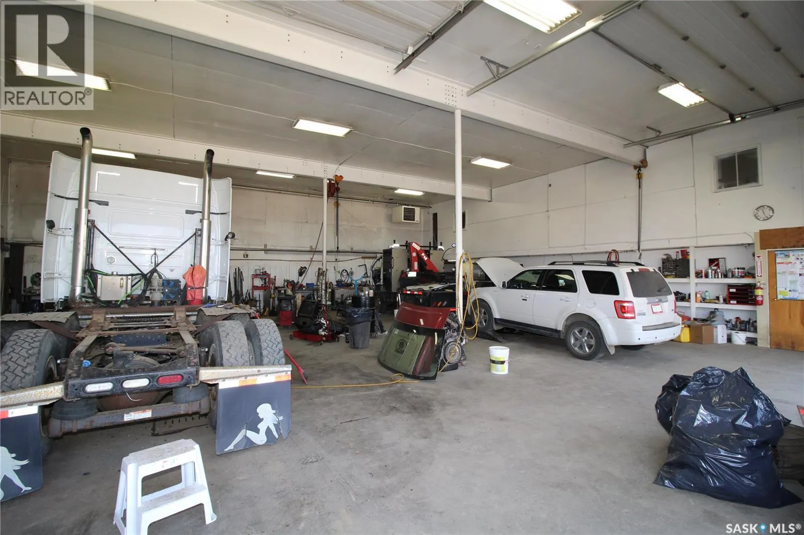 Located in Battleford industrial area is this 5500 sq ft building with 1.3 acres of land and fenced compound. 3000 sq ft end of building has 2 16x14 doors and 16â ceilings. 2500 sq ft end has 16x10 door and 12â ceilings. Main level offices, bathroom and utility area, coffee room and additional storage on the second floor. Great for trucking, construction, mechanical, body shop, manufacturing and fabrication or whatever you may have. Endless possibilities for a shop and building this size. Call soon for your private viewing. (id:27476)