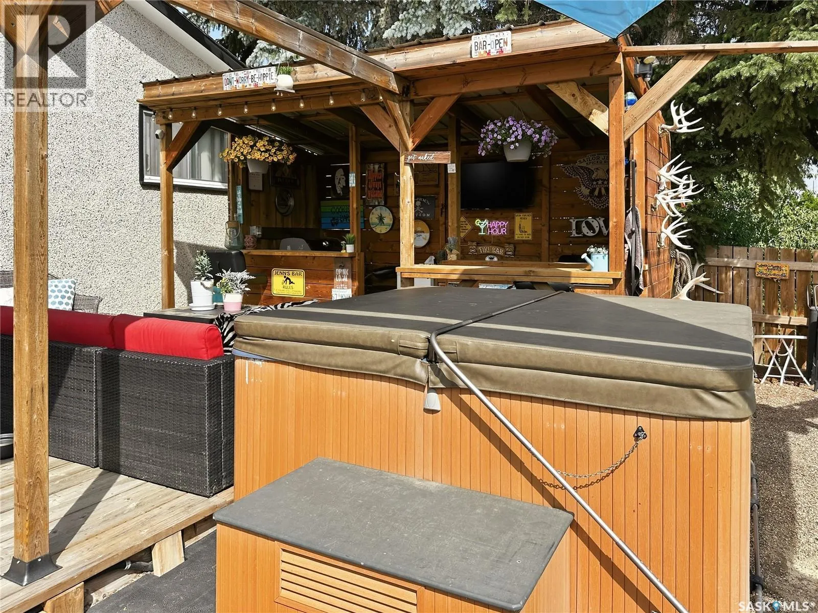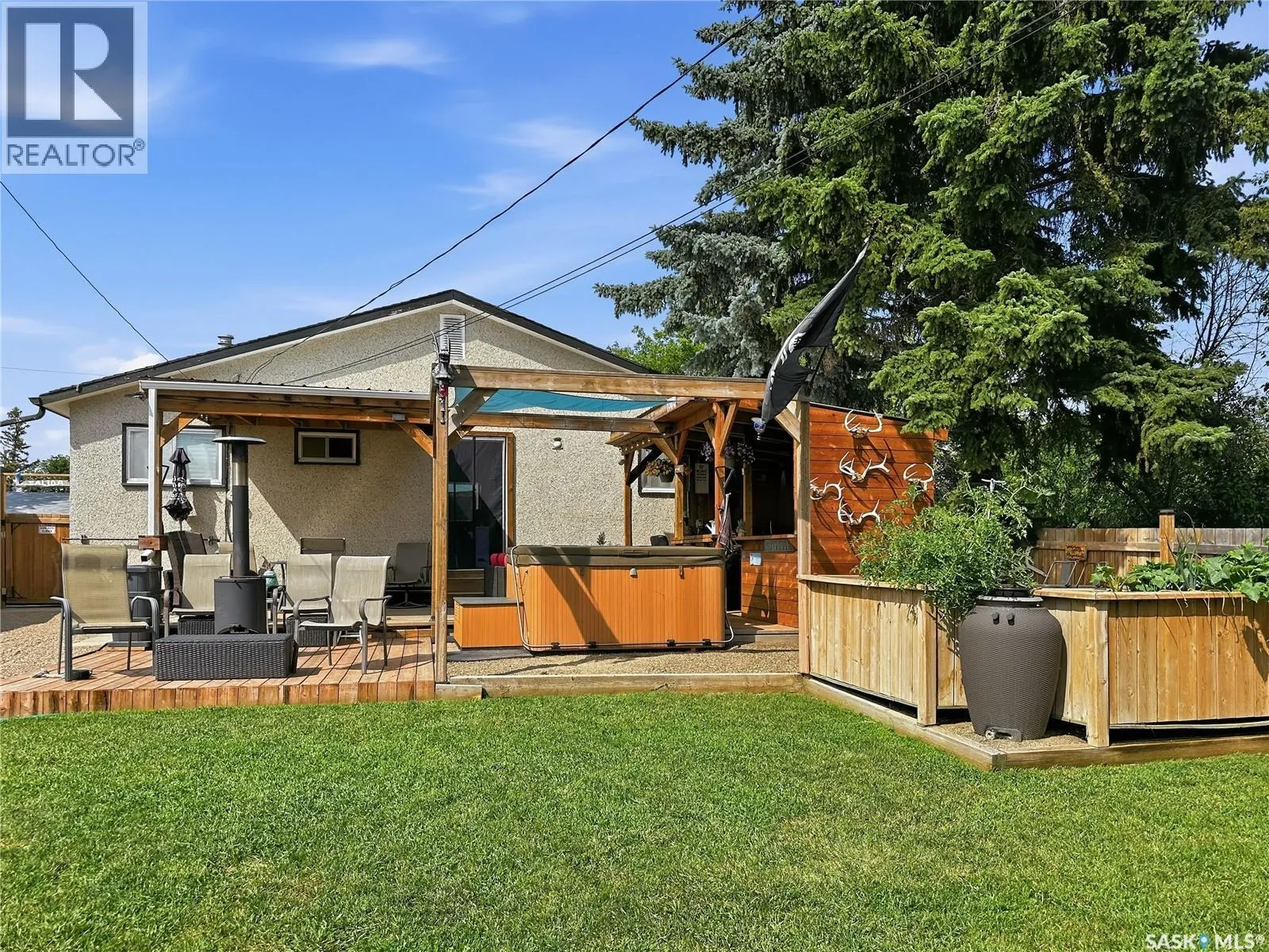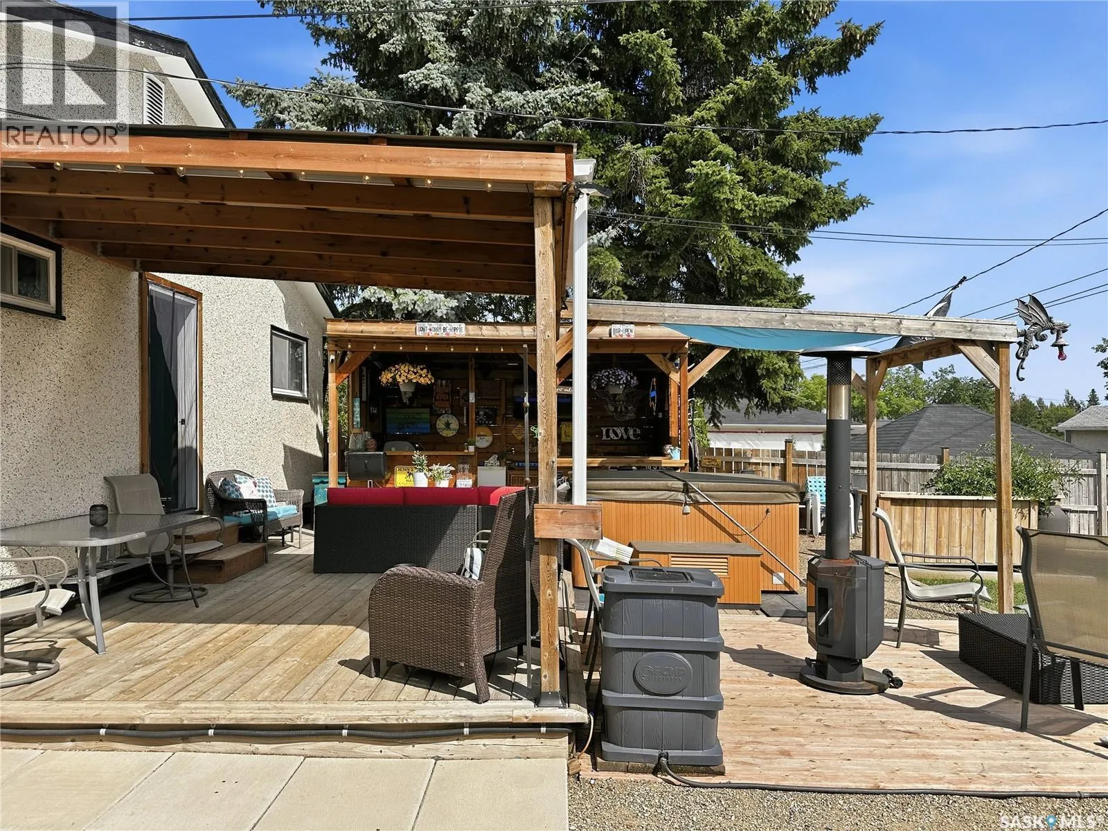 Welcome to this move-in ready 3 bedroom, 2 bathroom home located in the Town of Battleford, providing an ideal combination of comfort, modern updates, and everyday practicality. The main floor features a bright open concept layout where the kitchen, dining, and living room flow seamlessly together, creating an inviting space for everyday living and entertaining. The kitchen is complete with sleek stainless steel appliances, all of which remain, and the front windows have recently been replaced to add both efficiency and curb appeal. Upstairs, youâll find two spacious bedrooms along with a full 4-piece bathroom. The primary bedroom is located next to an impressive change room offering tons of closet space and a dedicated area to get ready, making organization effortless. The fully finished and updated basement adds even more living space, featuring an additional bedroom, a modern 3-piece bathroom, and a cozy family room perfect for movie nights or relaxing with friends. Step outside to your own summer oasis with a deck featuring multiple sitting areas, complete with an amazing tiki bar and hot tub, ideal for hosting gatherings or unwinding after a long day. Garden boxes are ready for the green thumb in the family, while lush grass in both the front and backyard creates a beautiful outdoor setting. The single detached garage includes extra fenced storage space behind it, perfect for a dog run, storage, or whatever suits your needs. With shingles replaced in 2025, this home is truly move-in ready and waiting for you to simply enjoy. Book your personal tour today to see for yourself! As per the Sellerâs direction, all offers will be presented on 02/17/2026 11:00AM. (id:27476)