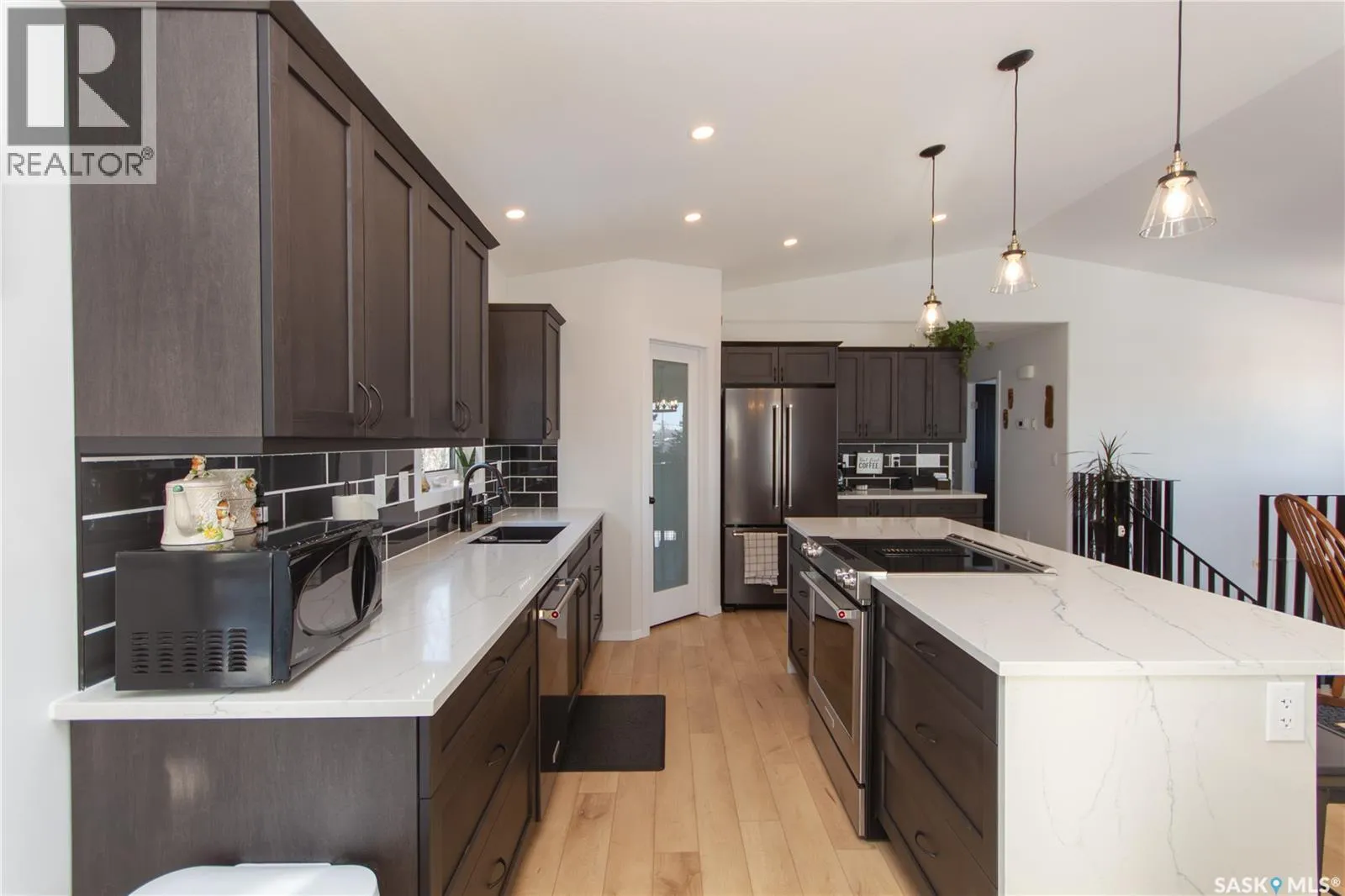 This beautifully built 2024 bi-level home offers modern living with 5 bedrooms, 3 bathrooms, & a fully finished basement. The main floor features 1,378 square feet, the basement offers 1,344 square feet of living space. On the main floor the kitchen is designed with granite countertops, anchor grey cabinets, a waterfall island, under-cabinet & island lighting. The in-island stove has a unique feature with the direct venting to outside to take about humidity & unwanted smells during cooking. The spacious dining area features garden doors that lead directly to the deck. A walk-in pantry includes a reverse osmosis tap & the same system plumbed to the fridge. The home features a solid steel staircase with an epoxy finish, & built-in lighting. There are 3 bedrooms on the main floor, the primary suite features a walk-in closet & a 3-piece tiled shower with glass doors. Vinyl plank & tile flooring run throughout the main level. The fully finished basement has ICF block walls, including 2-ICF interior walls for added support. A foyer with direct access to the garage has 2 spacious closets. There is a large family room, 2 bedrooms, a 4-piece bathroom, & convenient under-stair storage. Laminate & tile flooring were used throughout this level. The property has a fully fenced yard, an asphalt double driveway, & a 24x24 attached double garage (natural gas line & chimney installed, ready for a heater) The backyard is landscaped & includes a deck for a BBQ with NG hook-up & patio set, as well as a stunning pond with a multi-tier waterfall. Recently planted oak & maple trees will grow up & enhance the yard as well there is a variety of fruit trees & bushes including apple, plum, apricot, saskatoon berry, strawberry, blueberry, & a juniper bush. A rock walkway welcomes you in the front yard, & underground sprinkler & drip lines have already been laid out & are ready to be completed with sod. Itâs stunning and a must see! Call today to book your private showing! (id:27476)