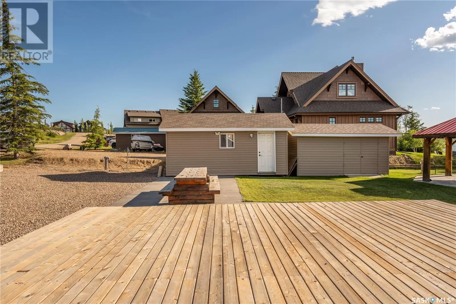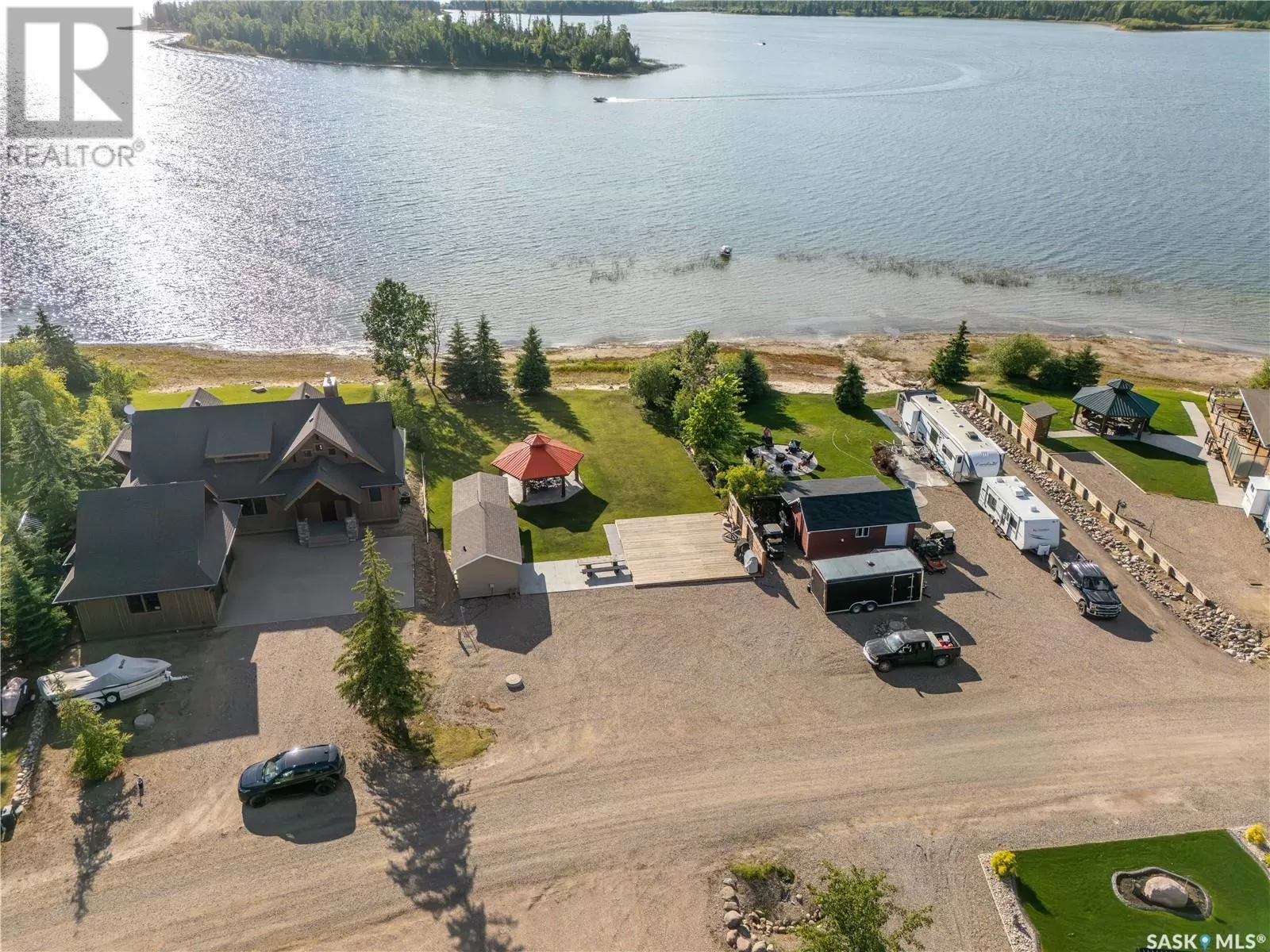 Discover your perfect lake retreat on this 0.2+ acre waterfront lot in Lauman's Landing, nestled on the shores of Lac Des Iles Lake. This property is ideal for building your dream home by 2030, offering ample time to plan your vision. Rendered photos of the Salt Spring by Beaver Homes and Cottages gives you just one of many homes that would fit perfectly on this lot. Enjoy immediate lake access with your private boat slip and lift. Lac Des Iles is a fantastic lake for boating and fishing, known for its clear waters and abundant Walleye, Pike, and Perch. Not ready to build? No problem! Hook up your RV right by the deck with full power, water, and septic connections. Your guests will love the cozy sleep shack, complete with two bunk beds, a full bathroom (with shower), washer/dryer, and a fridge/freezer. This property is fully serviced with the subdivision's reverse osmosis system for water, a septic tank already installed, and power and natural gas run to the lot. Relax under your custom gazebo and enjoy a fire as you watch breathtaking sunsets. This isn't just a lot; it's your invitation to a vibrant lakeside lifestyle, where every day feels like a vacation. Lauman's Landing offers a boat launch, fish filleting shack, and a playground. Beyond the subdivision, Meadow Lake Provincial Park provides endless opportunities for hiking, biking, swimming, and winter sports. The highly-rated Northern Meadows Golf Course is also nearby. Offering a peaceful escape without sacrificing accessibility you are just two hours north of Lloydminster, 45 minutes east of Cold Lake, and 3 hours and 45 minutes east of Edmonton (id:27476)
