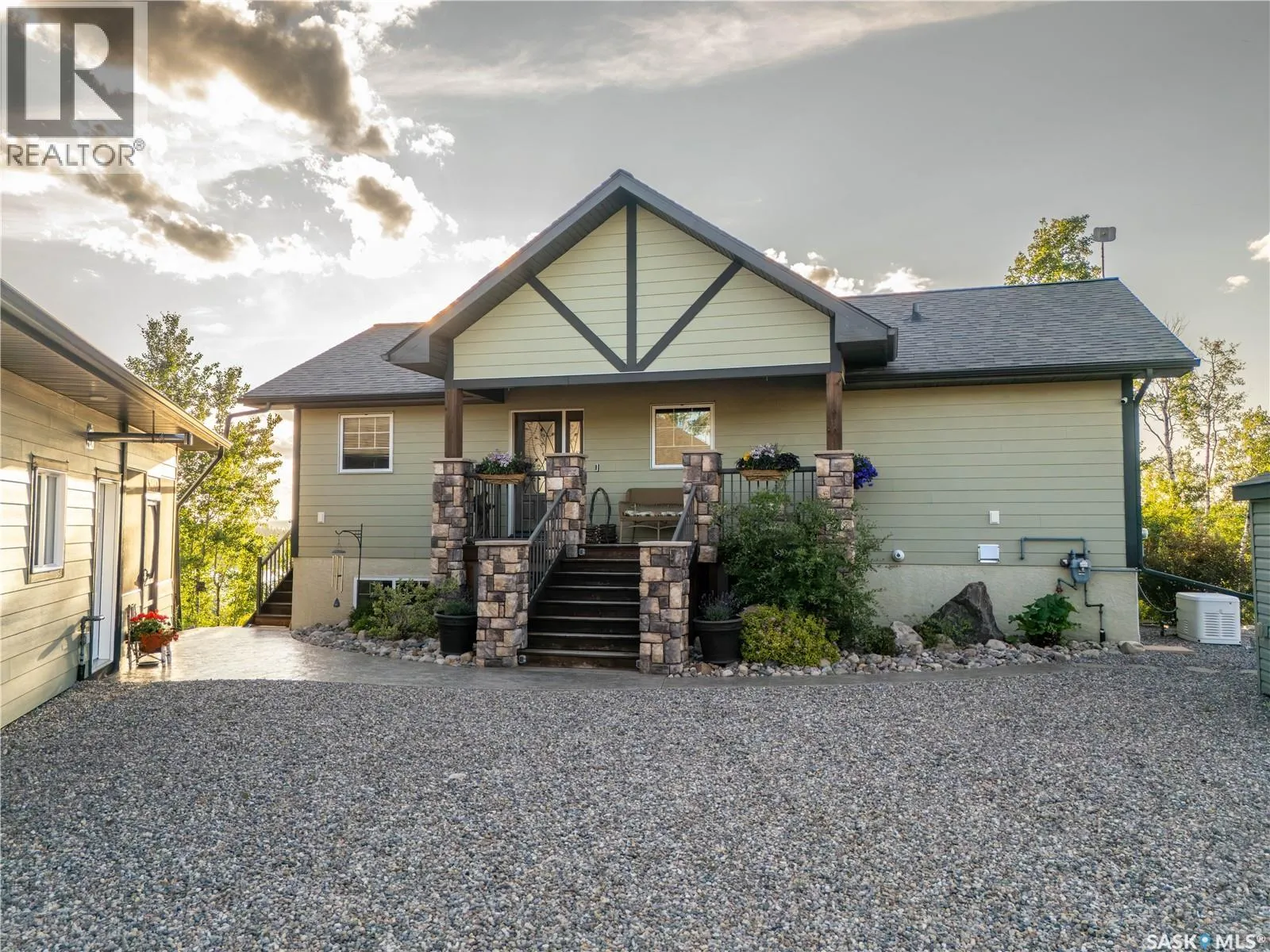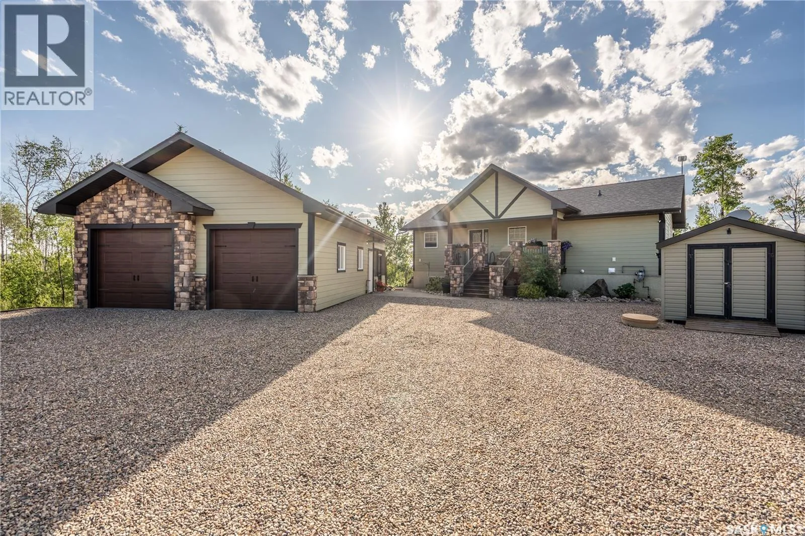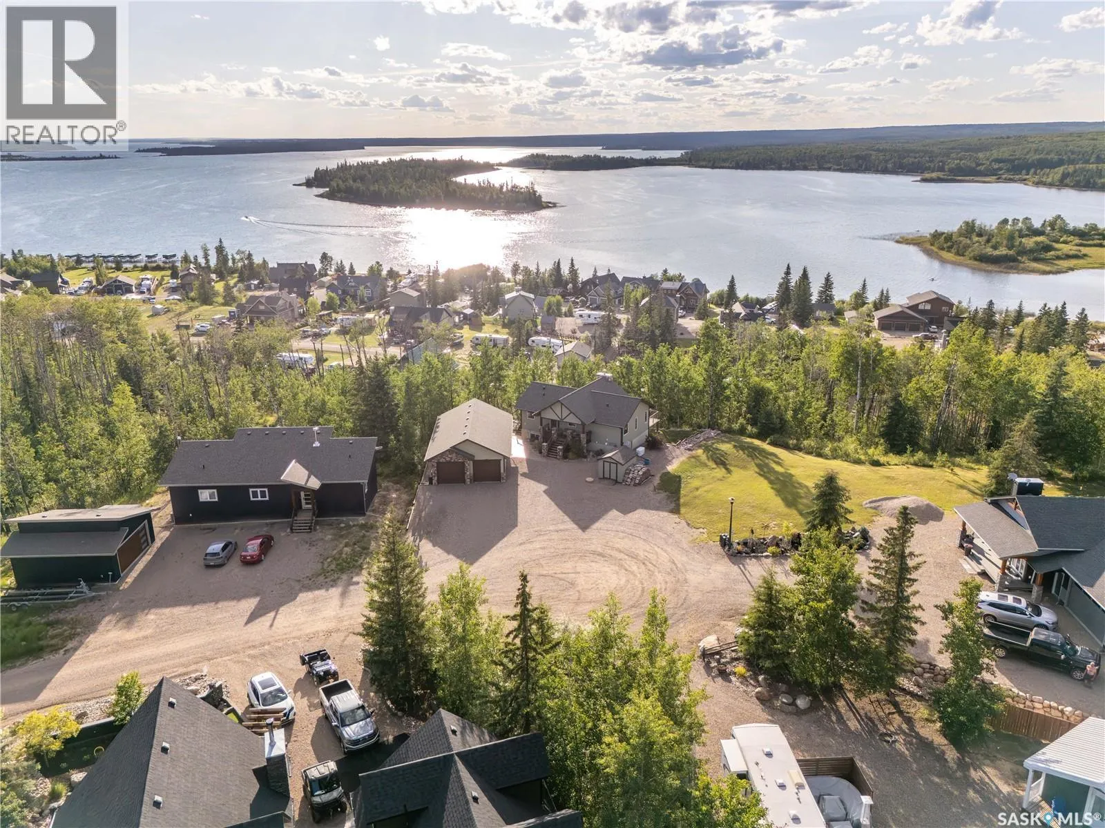 Luxurious 2,200 sq. ft. year-round home in Laumans Landing at Lac des Ãles Lake, offering panoramic lake views and a bright open-concept layout. This exquisite 4-bedroom, 3-bathroom residence features vaulted ceilings, vinyl plank flooring throughout, a gourmet kitchen with a spacious butlerâs pantry, and a natural gas fireplace. The main-level primary suite includes a spa-like ensuite, while the fully developed walkout basement offers a private entrance, three additional bedrooms, a full bathroom, a comfortable family room, heated floors throughout, and ample storage. Year-round comfort is ensured with hot water on demand (supplied by the subdivisionâs reverse osmosis system), air conditioning, and a 15 kW auto-transfer Generac generator. Outdoor living shines with a 12â x 24â screened-in area with electrical and water, overlooking a seating area with a built-in rock fireplace, plus over 500 sq. ft. of Duradek decking. Built to last with Hardie Board siding and 50-year Malarkey shingles, the property also includes a 24â x 30â detached garage and storage shed, with the adjacent lot available for added privacy. Enjoy easy access to the boat launch and community playground, just 5 minutes from Northern Meadows 18-hole Golf Course, all within Meadow Lake Provincial Parkâideal for fishing Northern Pike, Walleye, Yellow Perch, and Whitefish. Conveniently located approximately 2 hours north of Lloydminster, 4 hours north of Saskatoon, and 3 hours and 45 minutes northeast of Edmonton. (id:27476)