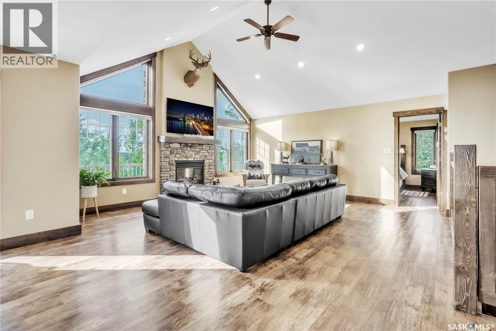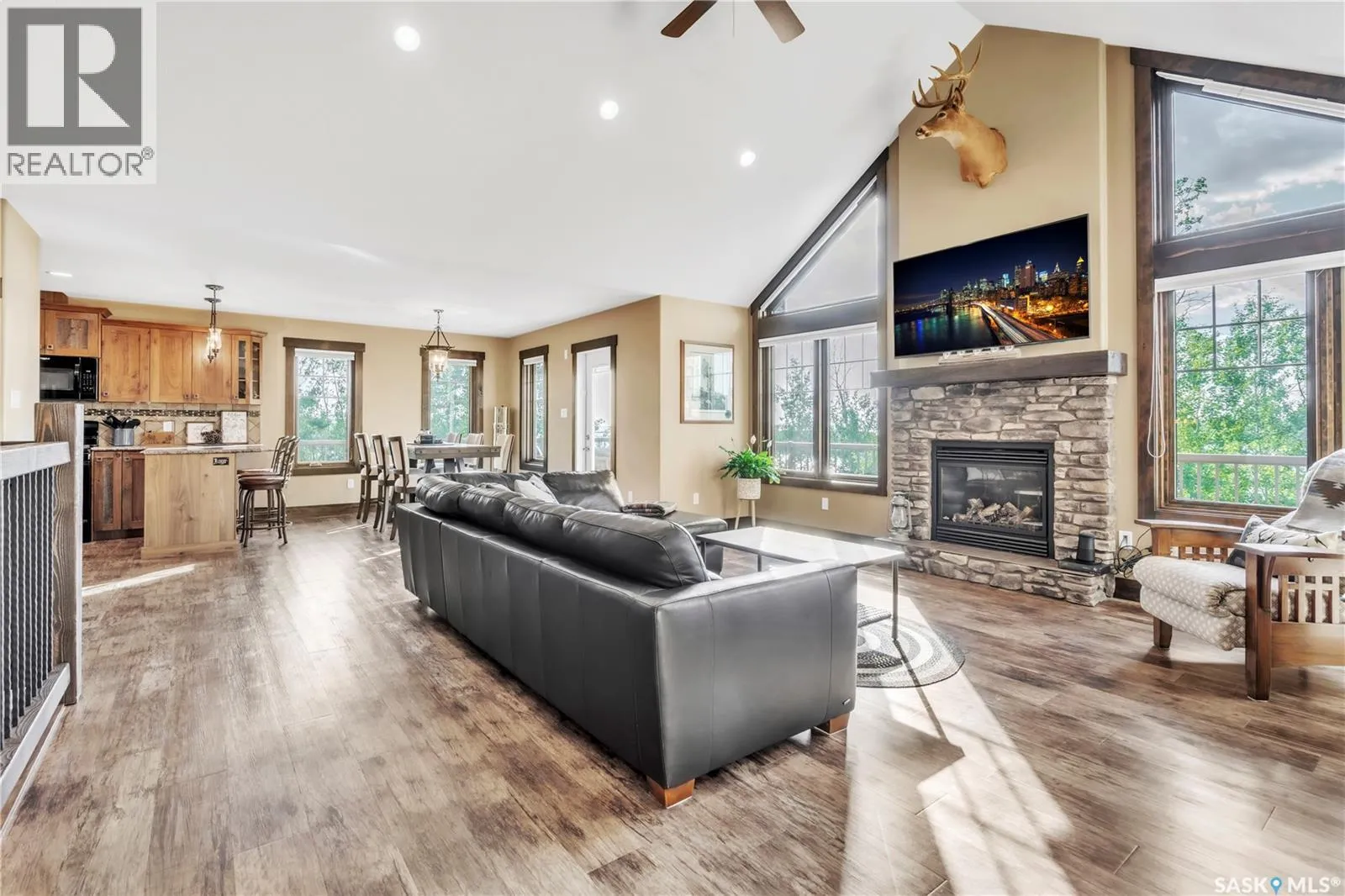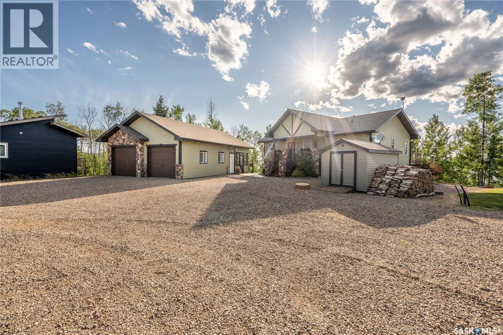 Luxurious 2,200 sq. ft. year-round home in Laumans Landing at Lac des Ãles Lake, offering panoramic lake views and a bright open-concept layout. This exquisite 4-bedroom, 3-bathroom residence features vaulted ceilings, vinyl plank flooring throughout, a gourmet kitchen with a spacious butlerâs pantry, and a natural gas fireplace. The main-level primary suite includes a spa-like ensuite, while the fully developed walkout basement offers a private entrance, three additional bedrooms, a full bathroom, a comfortable family room, heated floors throughout, and ample storage. Year-round comfort is ensured with hot water on demand (supplied by the subdivisionâs reverse osmosis system), air conditioning, and a 15 kW auto-transfer Generac generator. Outdoor living shines with a 12â x 24â screened-in area with electrical and water, overlooking a seating area with a built-in rock fireplace, plus over 500 sq. ft. of Duradek decking. Built to last with Hardie Board siding and 50-year Malarkey shingles, the property also includes a 24â x 30â detached garage and storage shed, with the adjacent lot available for added privacy. Enjoy easy access to the boat launch and community playground, just 5 minutes from Northern Meadows 18-hole Golf Course, all within Meadow Lake Provincial Parkâideal for fishing Northern Pike, Walleye, Yellow Perch, and Whitefish. Conveniently located approximately 2 hours north of Lloydminster, 4 hours north of Saskatoon, and 3 hours and 45 minutes northeast of Edmonton. (id:27476)