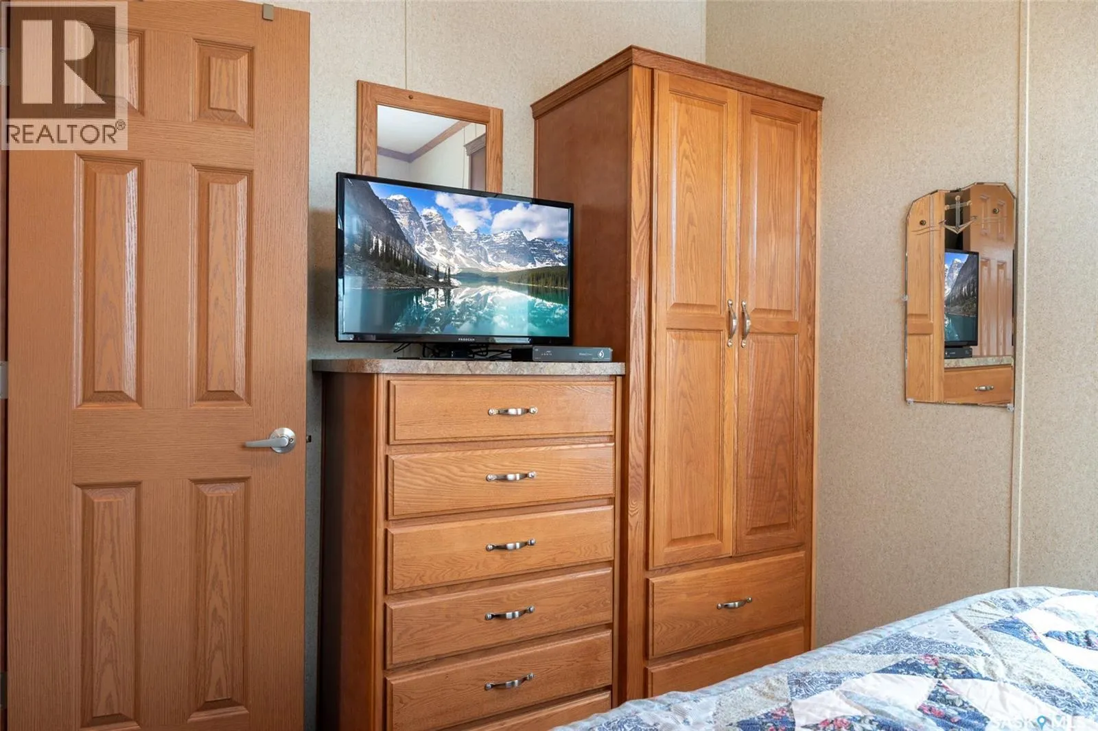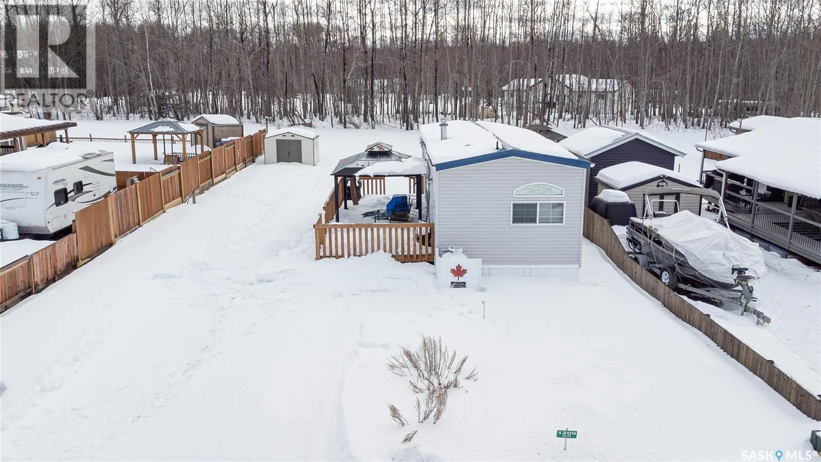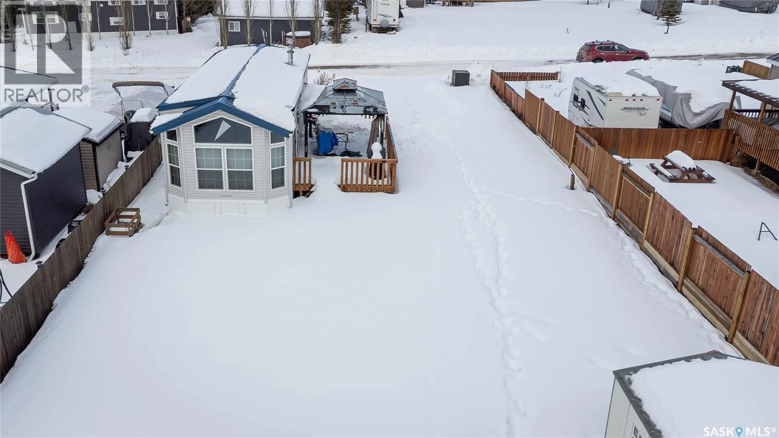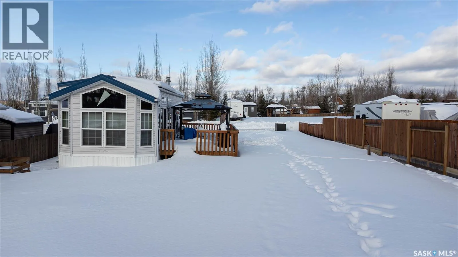 A fantastic all season escape at Lac Des Iles in Laumanâs Landing. This beautiful park model trailer offers an easy retreat with the comforts of home. A full-length deck with gazebo backs onto the trees, creating a private and relaxing outdoor space, and the living room also has a southern exposure and a view of the forest. Furniture is included, so you can arrive and start enjoying right away. The layout is designed to sleep up to eight people comfortably, with built-in wardrobes in each bedroom, extra storage under the primary bed, double bunks in the second bedroom, and lofted ceilings for excellent headroom. A pullout in the living room adds even more flexibility for guests. There is a full hook-up RV spot for visitors, an 8x8 storage shed for your toys, and a woodshed to keep firewood handy for evenings around the backyard fire pit. The lake and a playground are just a short walk away, perfect for kids and adults alike. This property is only about 10 minutes to Goodsoil for groceries and essentials. Golf enthusiasts are minutes from Northern Meadows Golf Club, a well-regarded 18-hole course. Itâs approximately 45 minutes from Cold Lake and Meadow Lake, just over 4 hours to Edmonton and around 4 hours to Saskatoon for a full range of services and amenities. Whether you are looking for a seasonal getaway or a low-maintenance retreat, this property checks all the boxes. (id:27476)