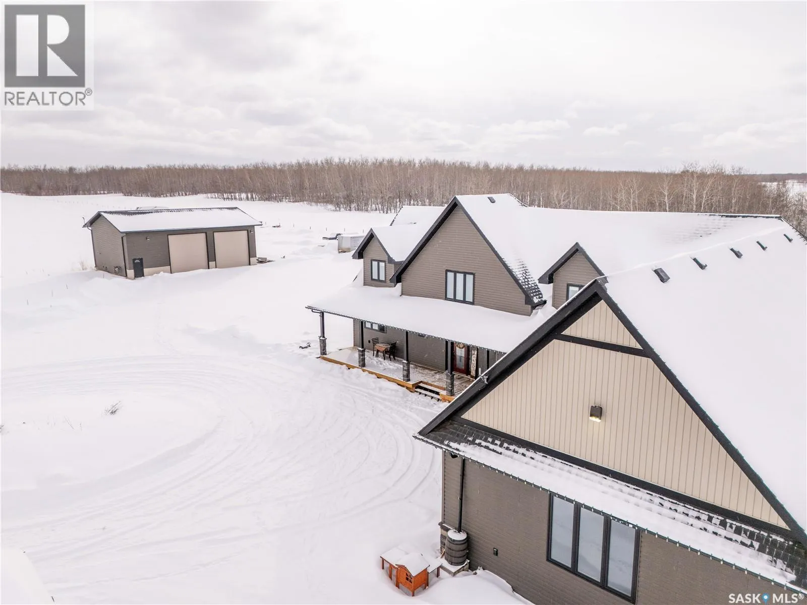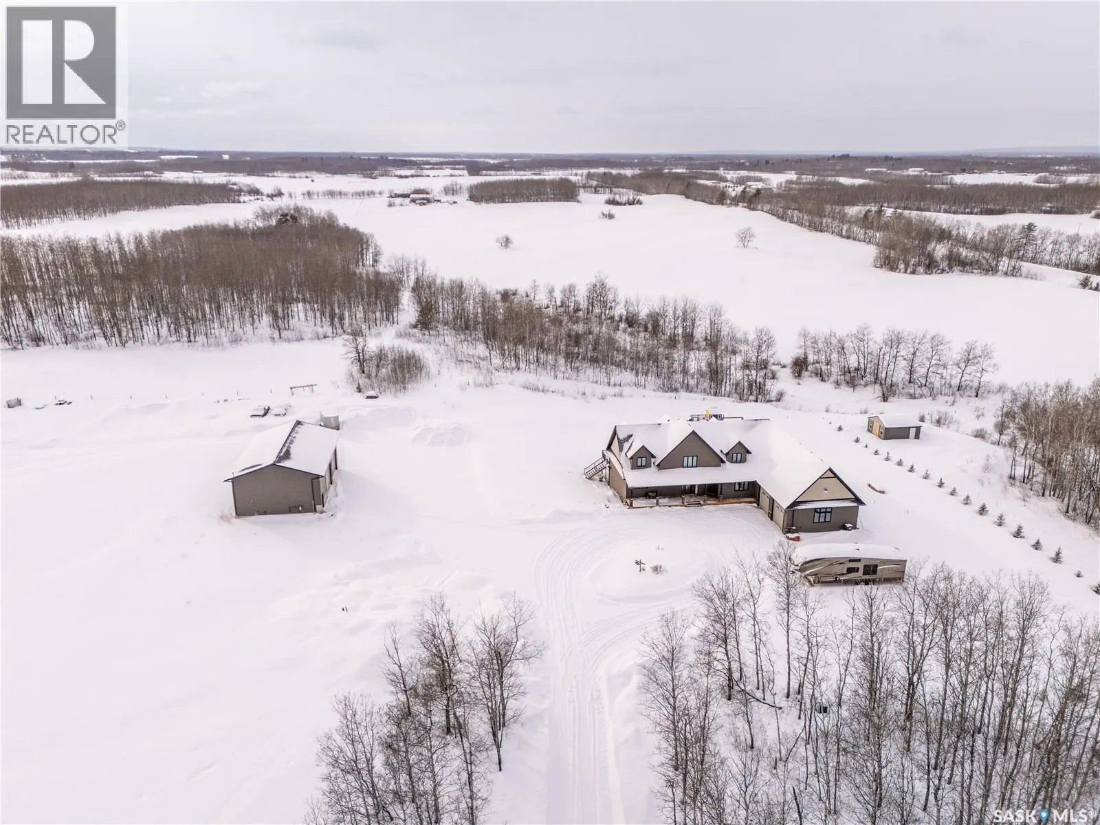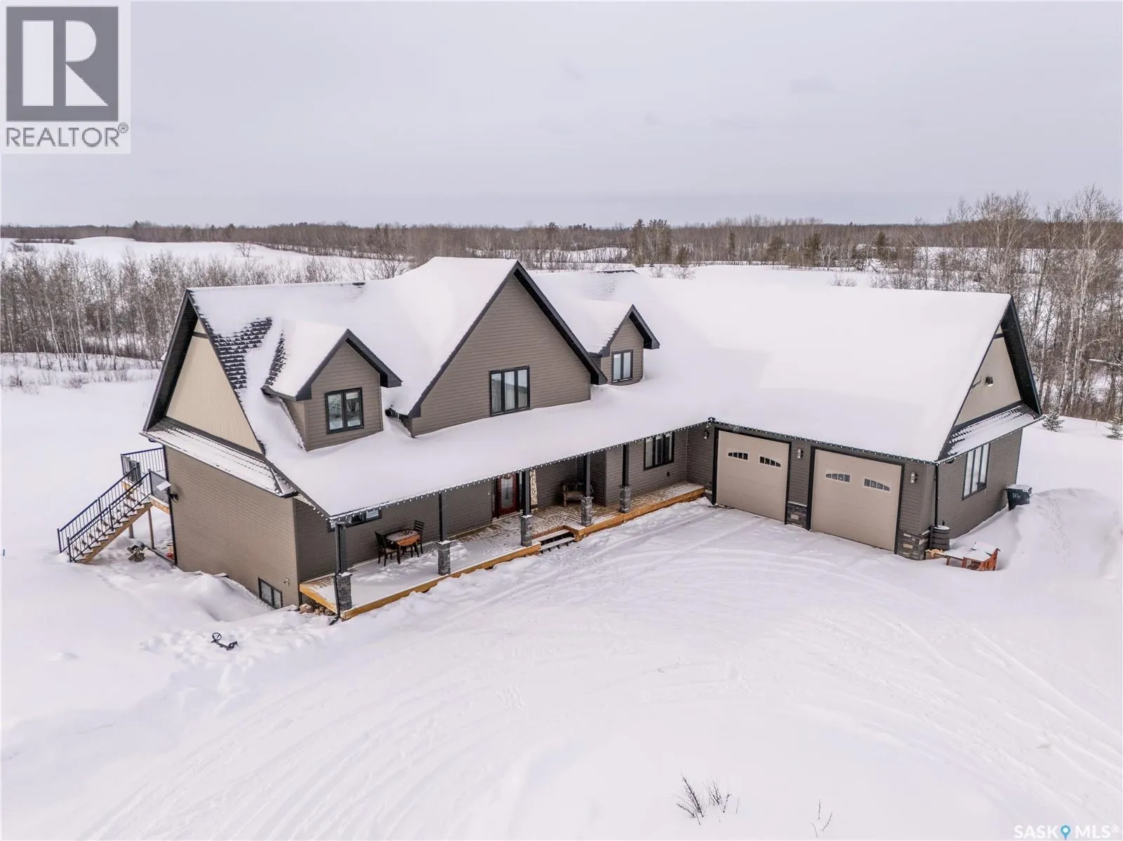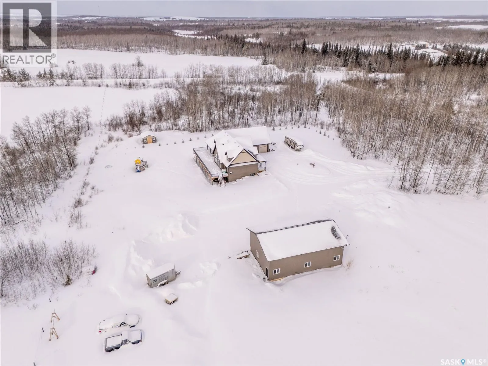 With over 4,000 sq. ft. of living space, this stunning 6-bedroom, 4-bathroom home sits on 9.99 acres and is sure to impress. Step into the tiled main entrance where a striking two-sided gas fireplace and floor-to-ceiling west-facing windows create an inviting first impression. The kitchen is thoughtfully designed with Bordeleau cabinetry, quartz countertops, vinyl plank flooring, a dedicated coffee bar complete with sink and beverage fridge, a walk-through pantry, and a commercial-sized fridge/freezer. From here, step out onto the covered deck, spacious enough for all your patio furniture and outdoor kitchen appliances . The main level also offers two bedrooms, a full bathroom, a half bath, and a dedicated laundry room. Upstairs, the primary retreat features a massive ensuite with dual sinks, a walk-in closet, a standalone shower, and a jetted tub (tile surround to be completed prior to possession). This level also includes a dedicated office space and an additional bedroom, previously used as a nursery. The walk out basement is equally impressive, offering a large recreation area with space for a pool table, home gym, and additional living area. Two more bedrooms and a full bathroom complete the basement. This home is equipped with air conditioning, in-floor heating in both the basement and the double car attached garage, and is designed for year-round comfort. Outside, youâll find a matching garden shed and a 36x48 radiant-heated shop with 16-foot doors, ideal for storage, equipment, or business use. The property is serviced by a well with a reverse osmosis system and water softener. Septic is an open discharge system. This home is only 20min away from Cold Lake, making it an easy commute for work if need be. (id:27476)