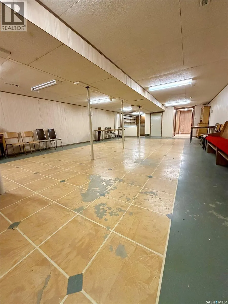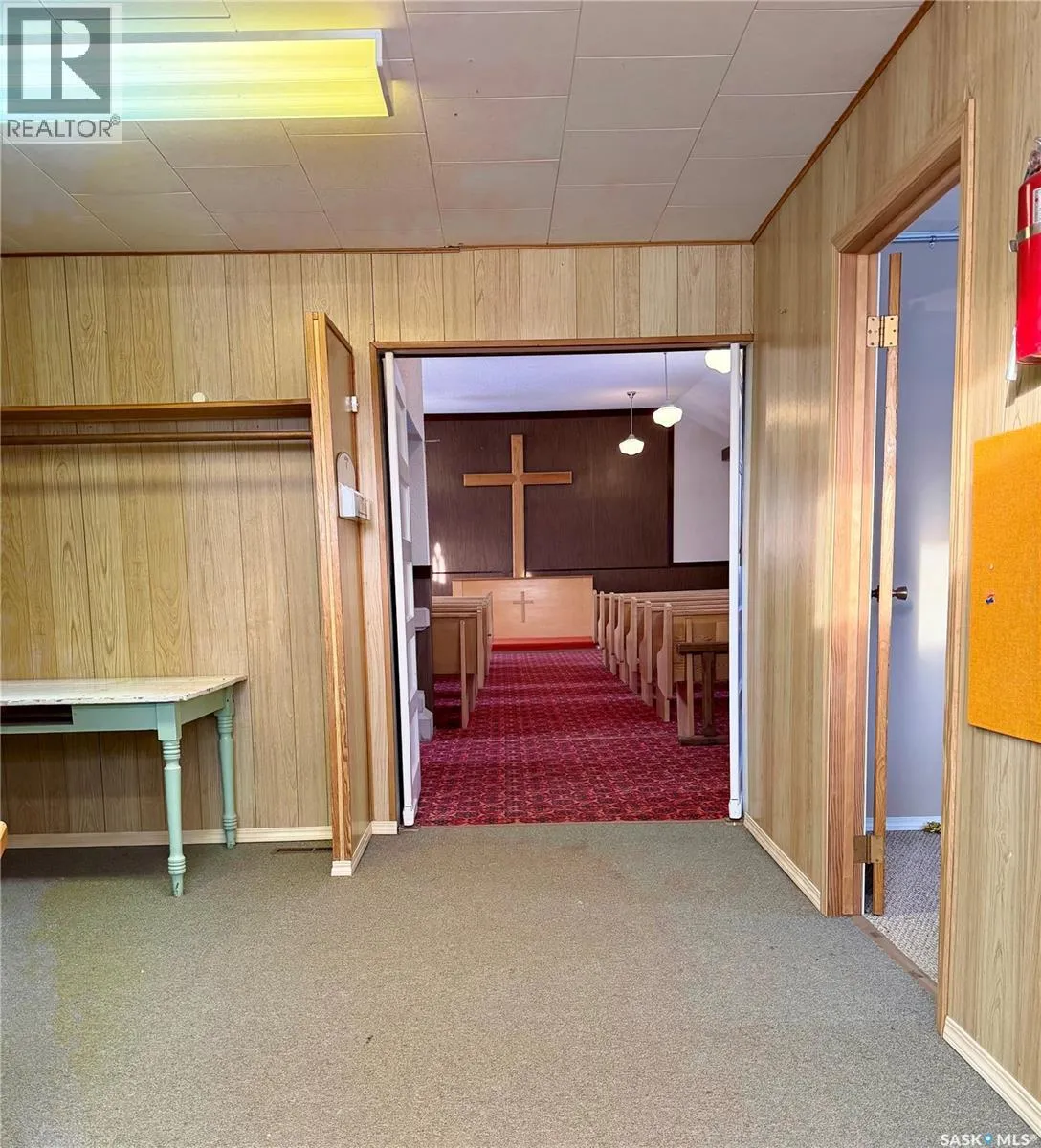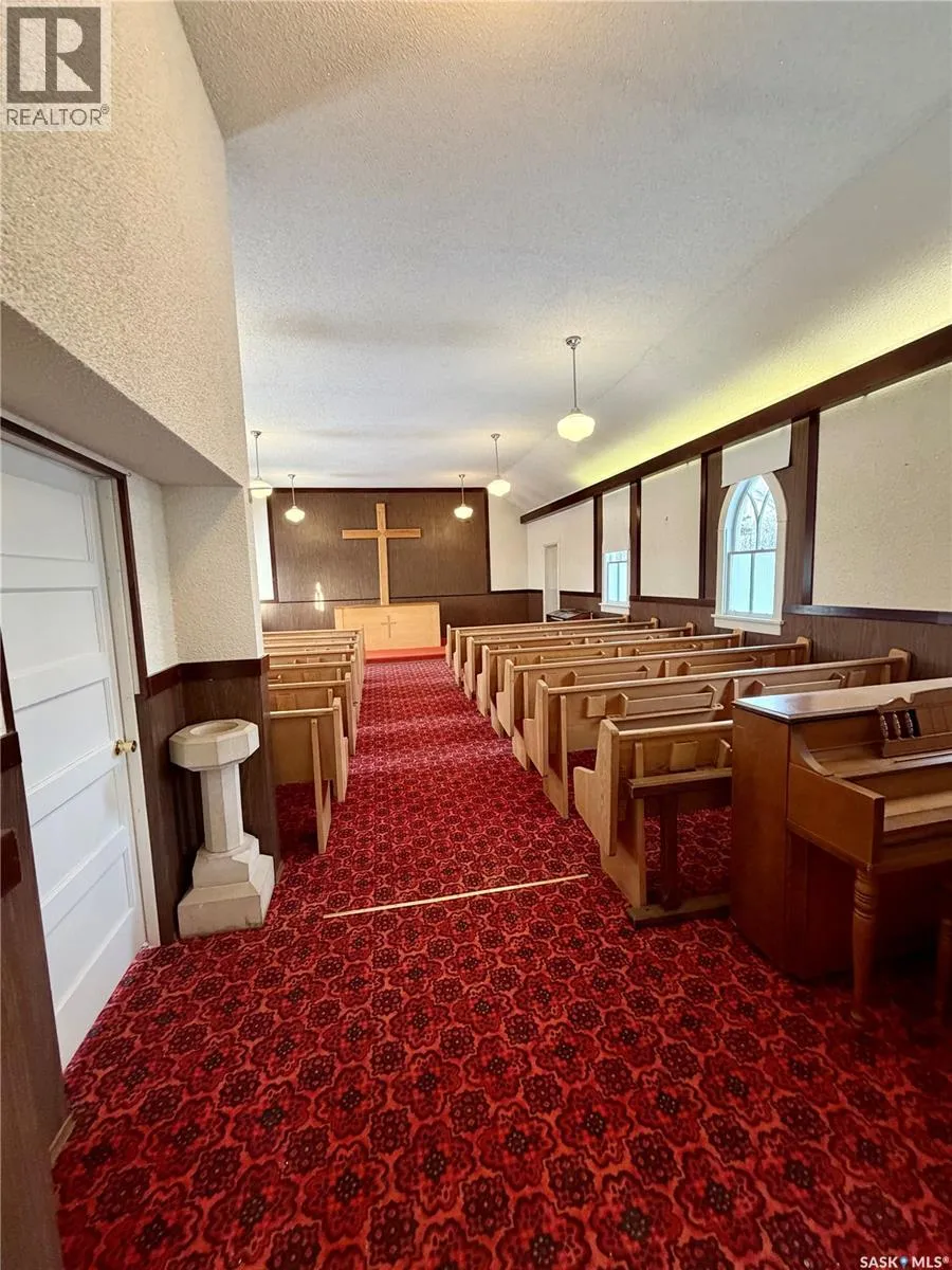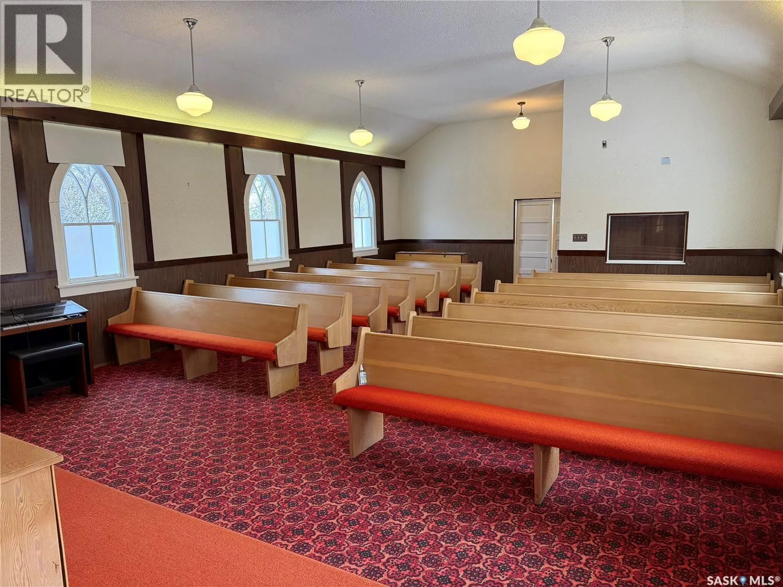 If you are looking for a unique investment property in Beechy, this could be a great purchase for you! Built in 1940, this character-filled church offers 1472 square feet of above grade space and a full basement, providing a unique opportunity for potentially being repurposed into a residence, an office space, studio, shop and more! The main floor features a large open sanctuary area with a vaulted ceiling, that could be ideal for gatherings, events, or an open-concept living space. Three additional smaller rooms on the main floor could offer flexible use as potential offices, storage, or bedrooms. The flooring on the main level is all carpeted, while the basement is concrete. Downstairs, there are 2 half bathrooms, and a functional kitchen. The house is heated with a furnace with forced air. The building is in relatively good shape overall. Call me today for a tour! (id:27476)