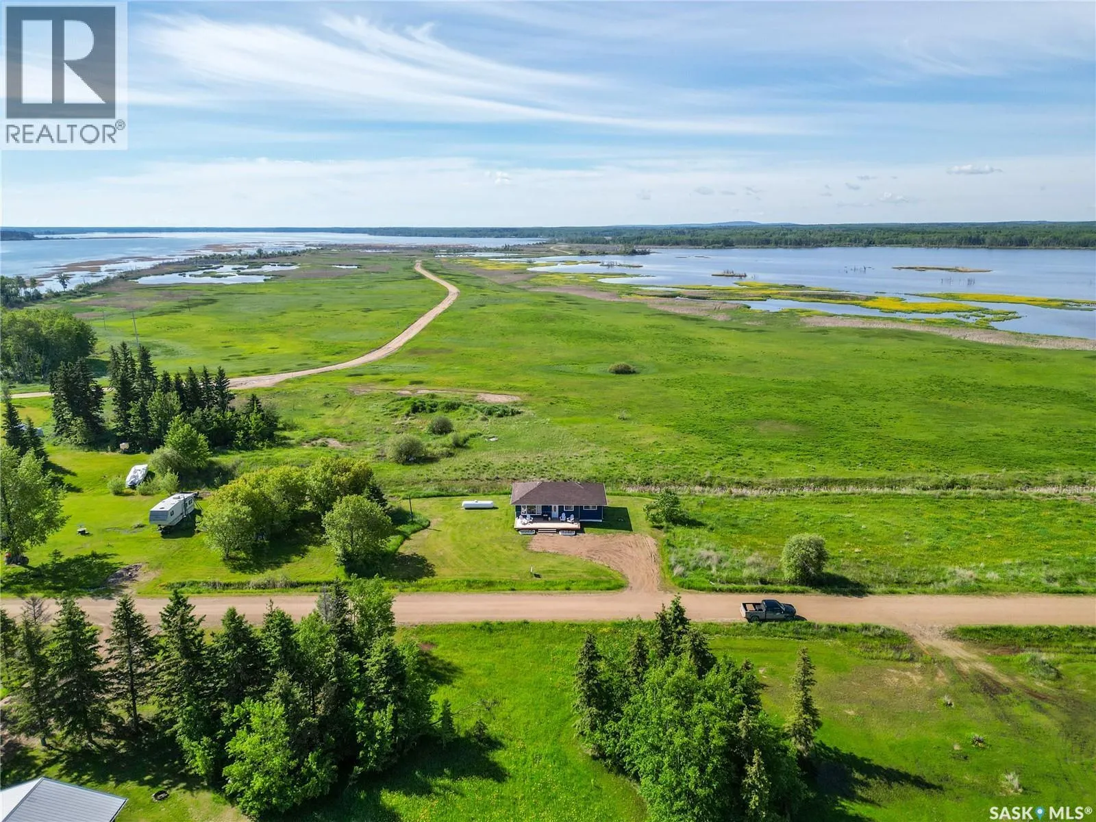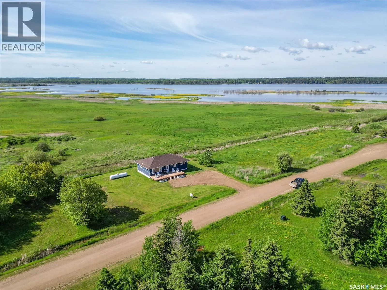 Move in ready! Cozy 3 bedroom 1,060 sqft bungalow located at beautiful Delaronde Resort. Fully turn-key with all new furniture, bedding, cooking utensils and appliances included. This property features many upgrades including paint and vinyl plank flooring throughout, bathroom, plumbing, new 1000 gallon septic tank, 40 gallon hot water heater and sump pit with sump pump. Large picture windows in the living room provides a nice amount of natural light. This remarkable property not only offers a comfortable living space but also comes with a valuable additionâan owned 1000-gallon propane tank. The advantages of propane-powered appliances, cost-effective heating compared to electric heating and the flexibility to choose the most affordable propane provider make this property a smart investment. The kitchen has upgraded counter tops as well as a gas stove. Situated on a 0.28 acre lot with newly planted trees and lake views from the front and back. Exterior renovations include siding, freshly painted stucco and a brand new pressure treated deck. The foundation is ICF concrete. This is a year round resort with gravel road access cleared by the RM of Big River. Includes access to the expanded beautiful beach at Delaronde Resort, marina, and a kids playground. Garbage services are included in the property taxes. Excellent year round recreational activities offered at Delaronde Lake. Seller is willing to do rent to own or financing. (id:27476)
