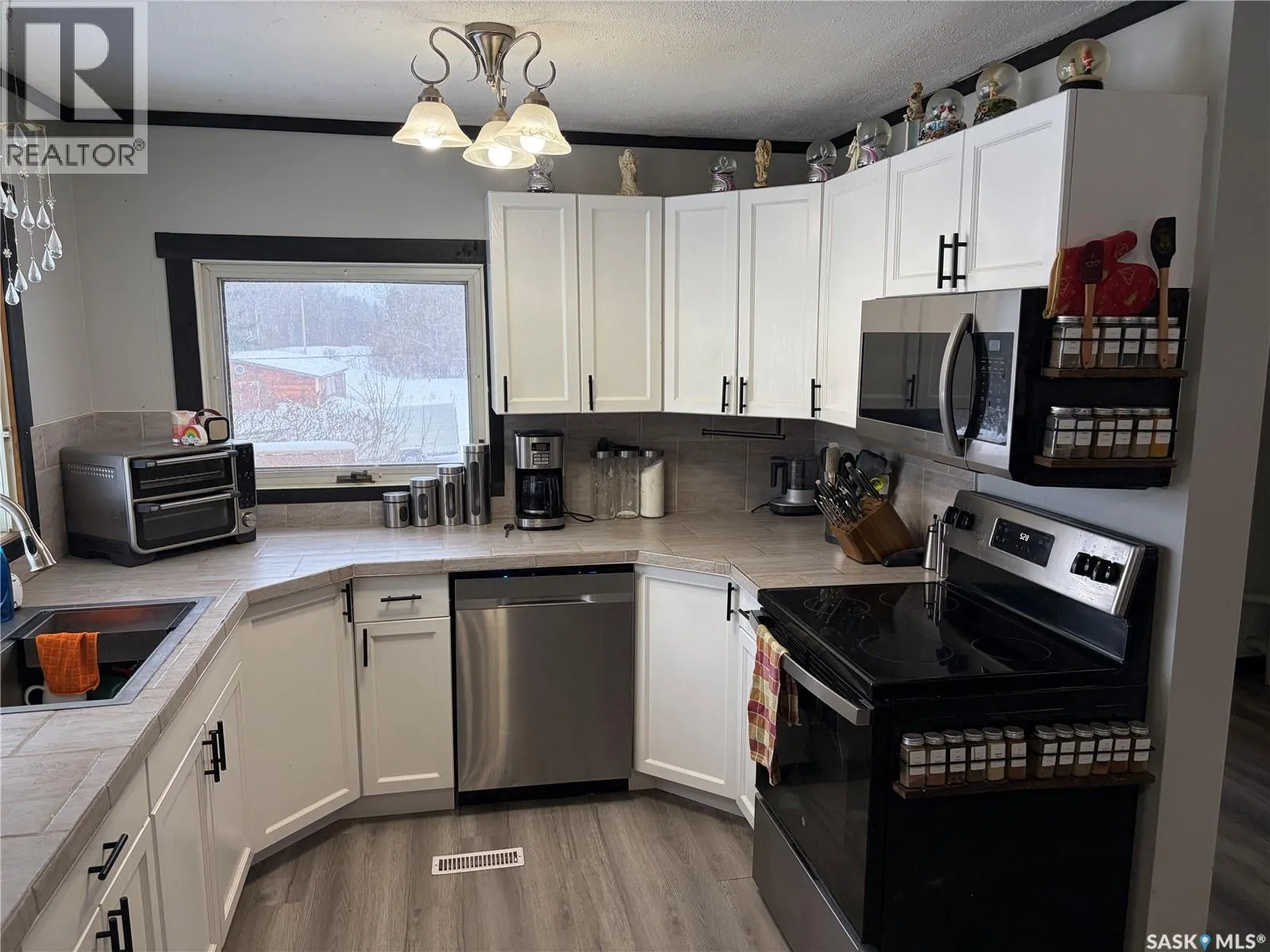 This beautifully redone 5 bedroom home is just a short 9km from the town of Big River. The home offers a brand new 20x30 addition making the home a total of 1608 sqft. The siding was just redone in 2024, as well as the counter tops, all new paint and new bathroom. The flooring was all redone in 2023. Theres many upgrades done to the home opening up the floor plan and making bedrooms bigger, and adding in a new large pantry as well as new water lines. The home also has a large porch with main floor washer and dryer as well. Theres plenty of large windows in the home making it very open and bright. The home also comes with 156 acres of land. The owners will be leaving the built in fireplace and tv, the zero turn lawn mower as well. There is a 30x40 shop, as well as a 20x40 barn, 8x10 greenhouse, and a 14x16 garden shed. The basement has had two bedrooms framed in as well as a toilet. This home is in the perfect location very close to all the amenities of Big River while having the privacy that 156 acres offers. Contact today to have a look (id:27476)