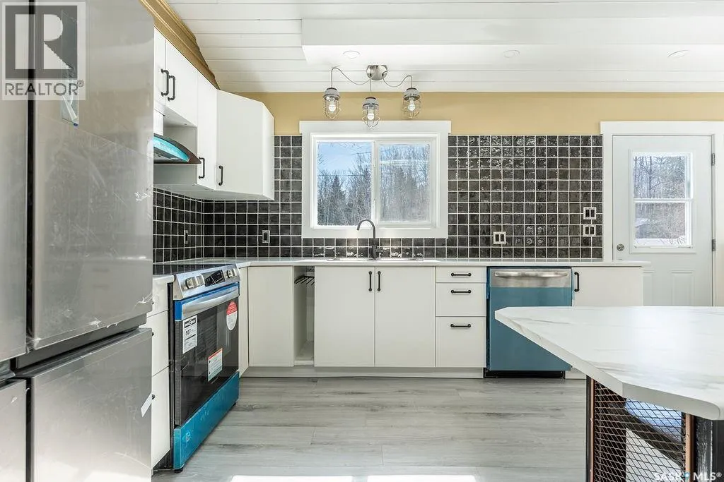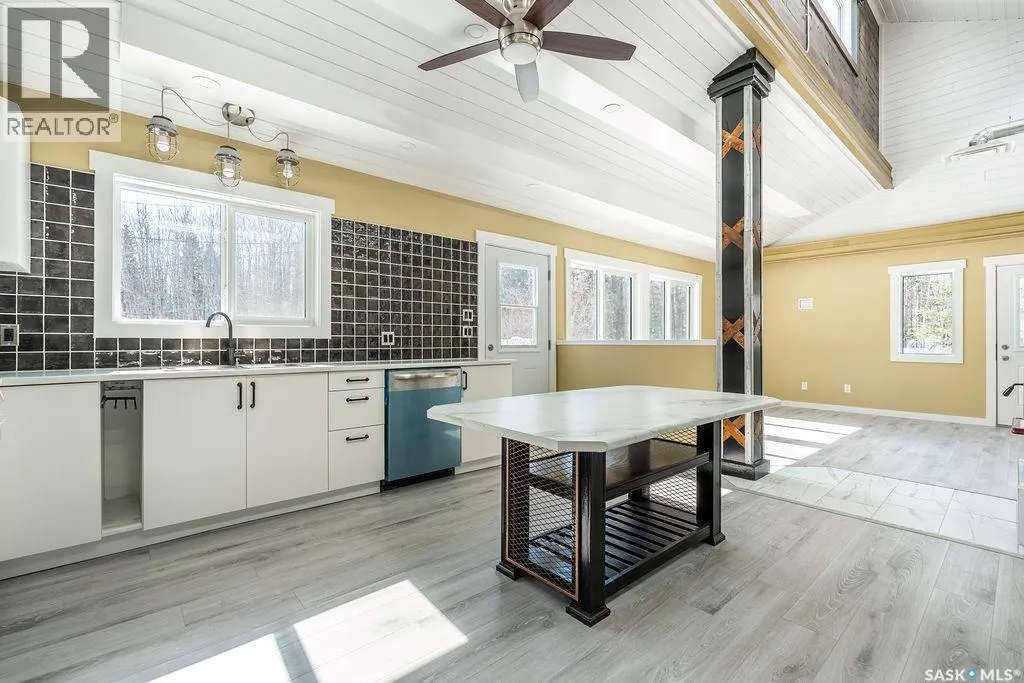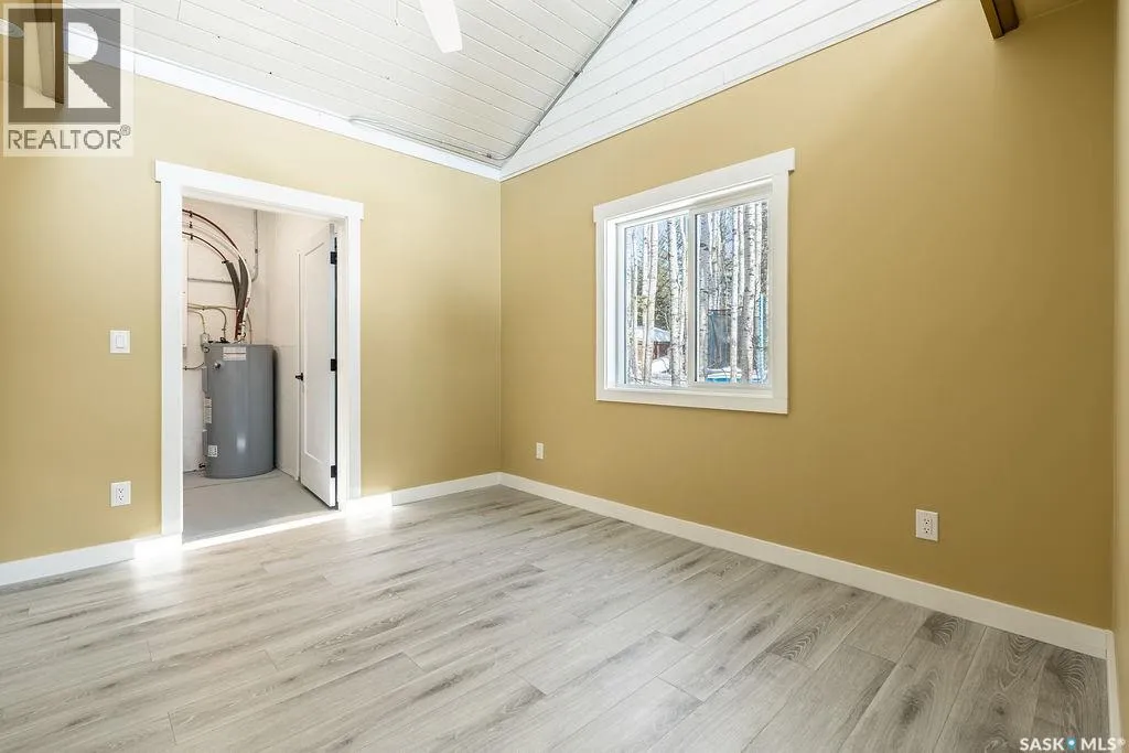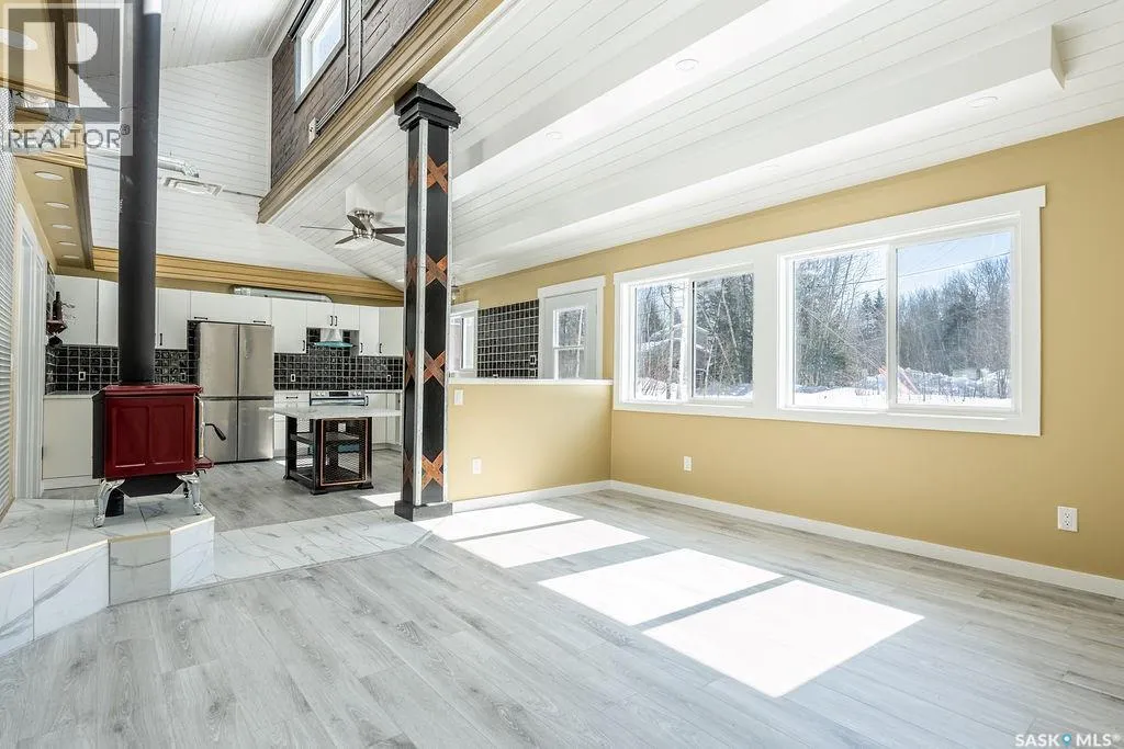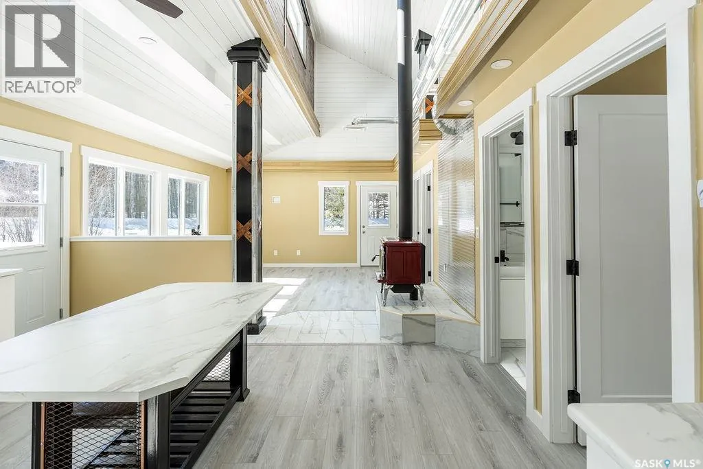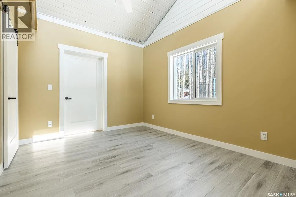 18km NE of Big River, in Pickerel Point. See MLS pin or scan QR code for directions Welcome to 1 May Bay in Pickerel Point at Delaronde Lake â a brand new, never-lived-in cabin that perfectly blends modern industrial style with the peaceful beauty of lake life. This stunning 998 sq. ft. cabin features 3 bedrooms and 1 full bathroom, designed for comfort, style, and easy living. Step inside and youâll immediately notice the impressive 18-ft vaulted ceilings and the abundance of windows that fill the space with natural light. The upper windows are equipped with electric blinds for convenience and comfort. The kitchen is beautifully finished with an eat-up island, brand new stainless steel appliances, and soft-close cabinetry throughout, while extra pot lights have been added across the home to create a bright, welcoming space day or night. Each bedroom includes its own closet with a custom-built barn door complete with coat hooks, adding both character and functionality. The living room features a striking red porcelain wood stove, creating a cozy focal point for cooler evenings. Heated floors run throughout the entire cabin, and vinyl plank flooring makes for durable, low-maintenance living. Custom gold trim accents around the rooms add a unique and stylish finishing touch. The cabin also includes in-home laundry for everyday convenience. Outside, the property offers plenty of space with room to build a future garage, a long gravel driveway perfect for parking RVs and boats, and a gravel patio area ready for outdoor entertaining. The yard is beautifully natural with bush, Saskatoon berry bushes, and newly planted oak trees. Located just a short walk to the water, marina, and boat dock, this property is part of a fantastic lake community and is the perfect place for boating, fishing, relaxing, and making memories year-round. (id:27476)