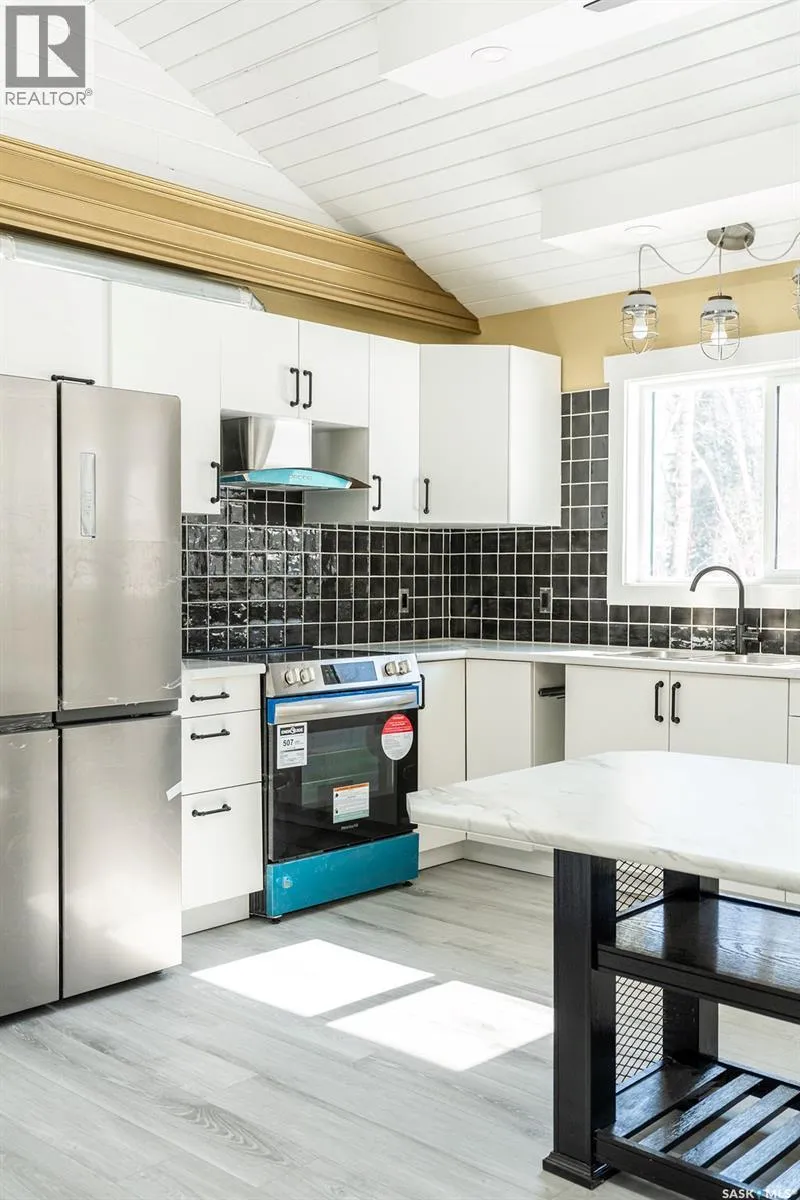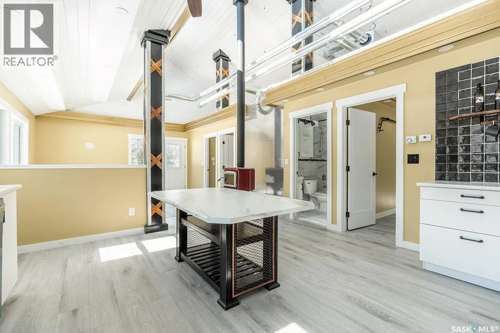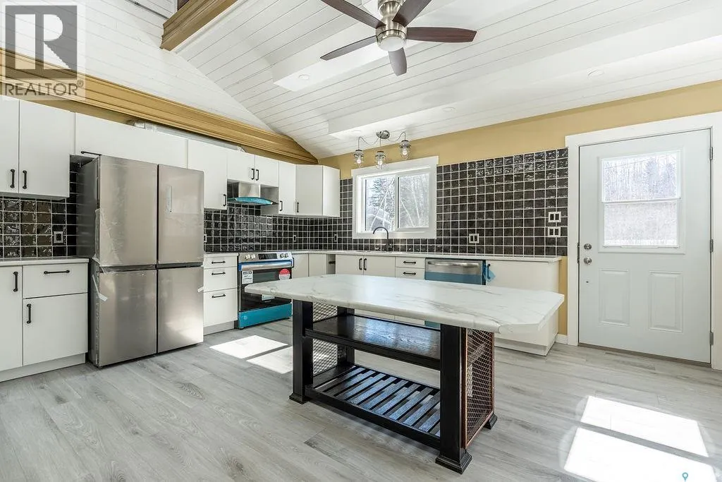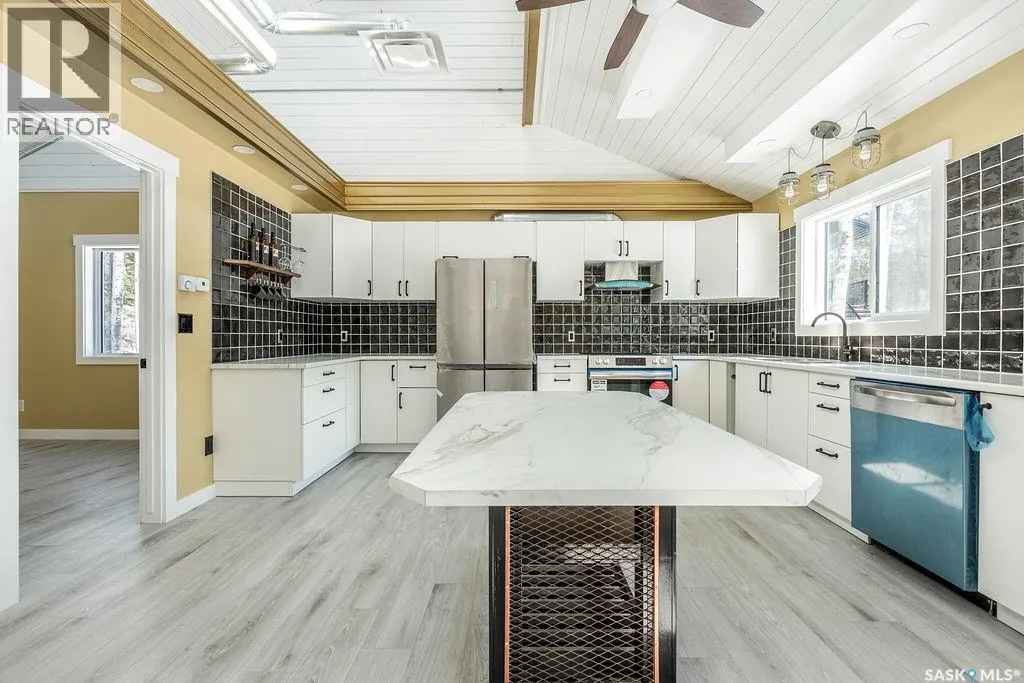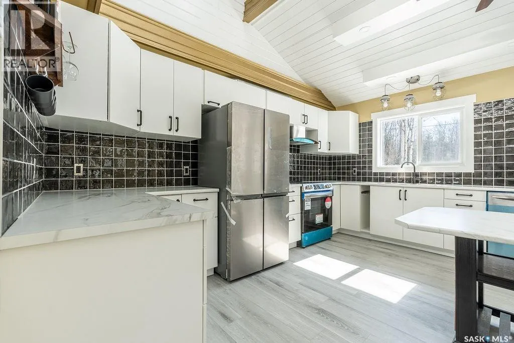 18km NE of Big River, in Pickerel Point. See MLS pin or scan QR code for directions Welcome to 1 May Bay in Pickerel Point at Delaronde Lake â a brand new, never-lived-in cabin that perfectly blends modern industrial style with the peaceful beauty of lake life. This stunning 998 sq. ft. cabin features 3 bedrooms and 1 full bathroom, designed for comfort, style, and easy living. Step inside and youâll immediately notice the impressive 18-ft vaulted ceilings and the abundance of windows that fill the space with natural light. The upper windows are equipped with electric blinds for convenience and comfort. The kitchen is beautifully finished with an eat-up island, brand new stainless steel appliances, and soft-close cabinetry throughout, while extra pot lights have been added across the home to create a bright, welcoming space day or night. Each bedroom includes its own closet with a custom-built barn door complete with coat hooks, adding both character and functionality. The living room features a striking red porcelain wood stove, creating a cozy focal point for cooler evenings. Heated floors run throughout the entire cabin, and vinyl plank flooring makes for durable, low-maintenance living. Custom gold trim accents around the rooms add a unique and stylish finishing touch. The cabin also includes in-home laundry for everyday convenience. Outside, the property offers plenty of space with room to build a future garage, a long gravel driveway perfect for parking RVs and boats, and a gravel patio area ready for outdoor entertaining. The yard is beautifully natural with bush, Saskatoon berry bushes, and newly planted oak trees. Located just a short walk to the water, marina, and boat dock, this property is part of a fantastic lake community and is the perfect place for boating, fishing, relaxing, and making memories year-round. (id:27476)