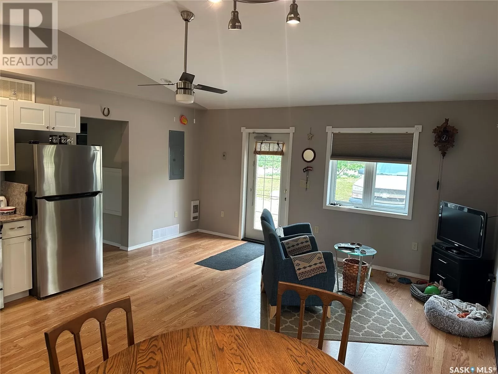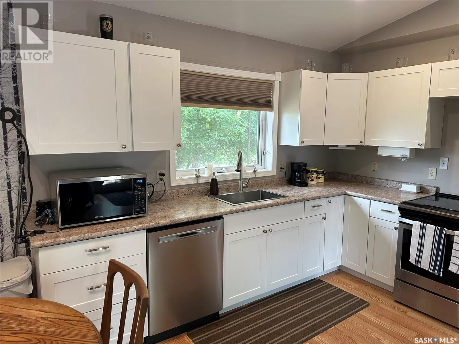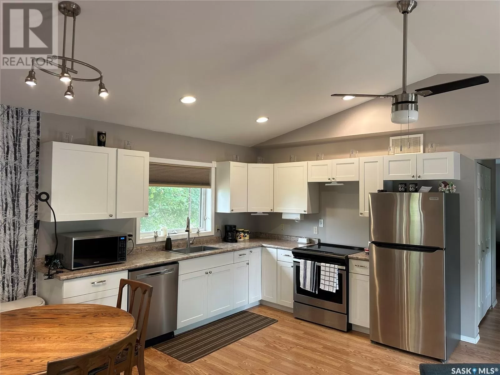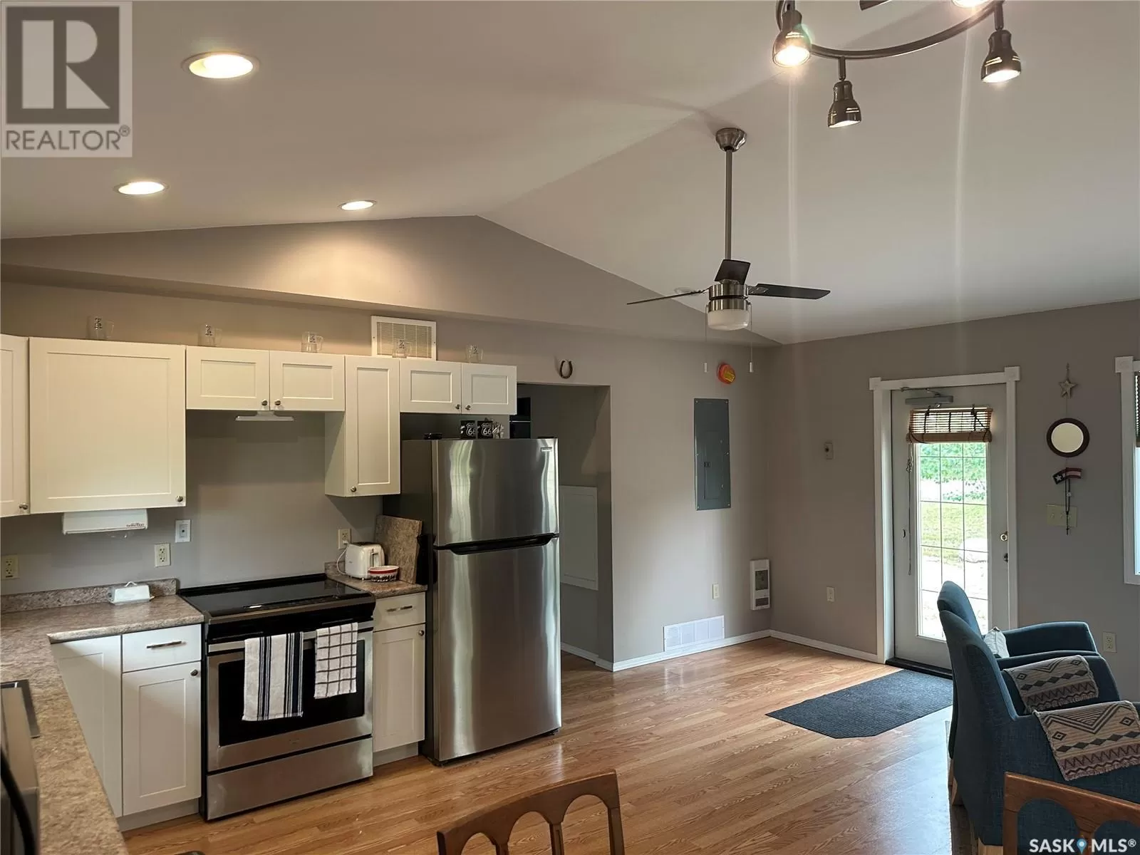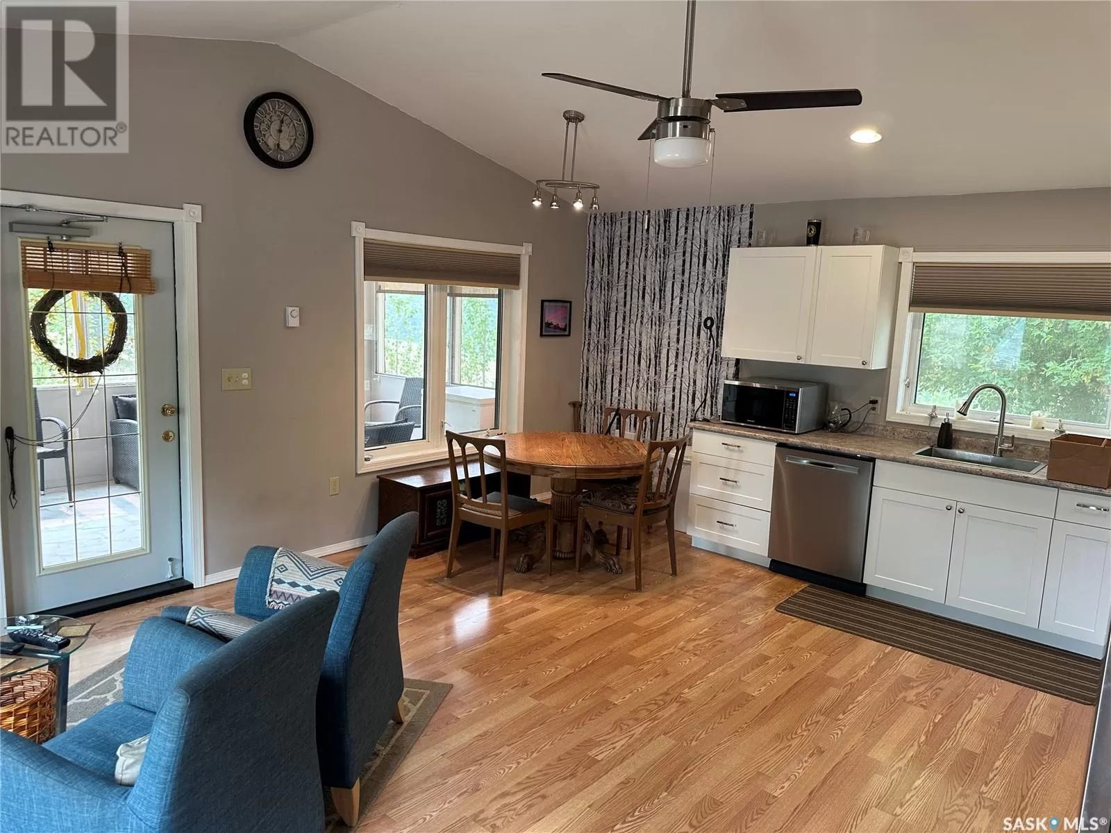 112 3rd Ave S Big River SK This newly build home sits on a very large oversized well landscaped and treed lot in the town of Big River. This home is close to all ammenities yet very private. The home offers one very large bedroom with a large walk in closet and a patio door leading to a nice deck to sit on. The bathroom is spacious with a nice barn door feature. The living room and kitchen are wide open with bright white cupboards, and nice stainless steel appliances. There is also a very large sun room which is great to sit in and enjoy the beautiful views or if you need a second bedroom it would be an easy conversion to change this room into another bedroom. The home has 200 amp power for rv hook up on the home for your guests that would like to come for a visit and have there own space. This home is well built and wheel chair accessible with wide doors and everything on one level. call today to come have a look (id:27476)