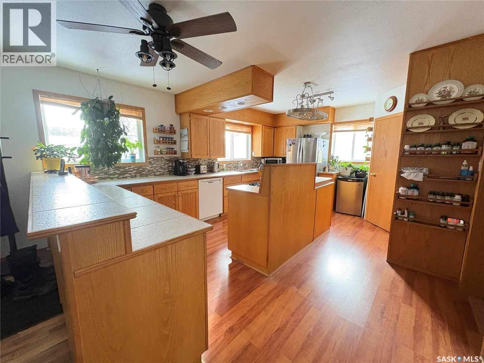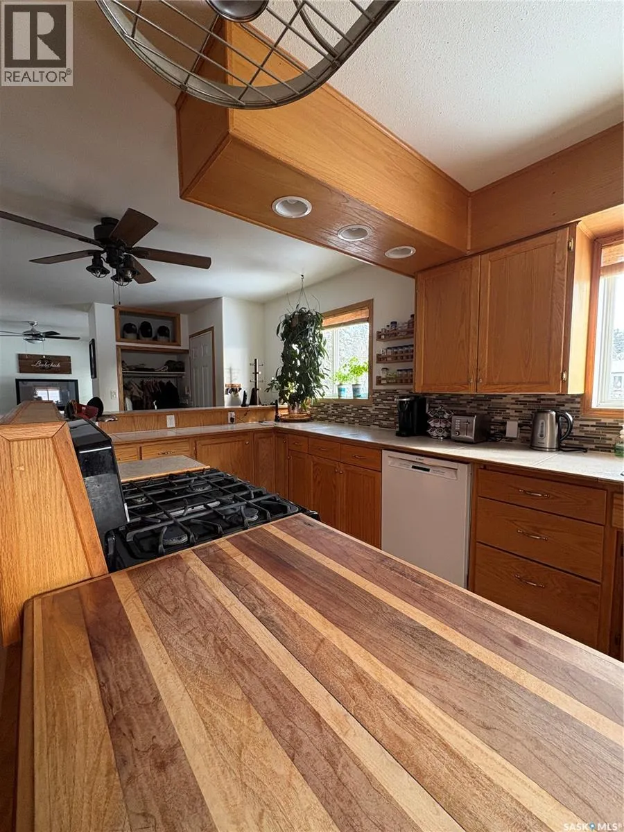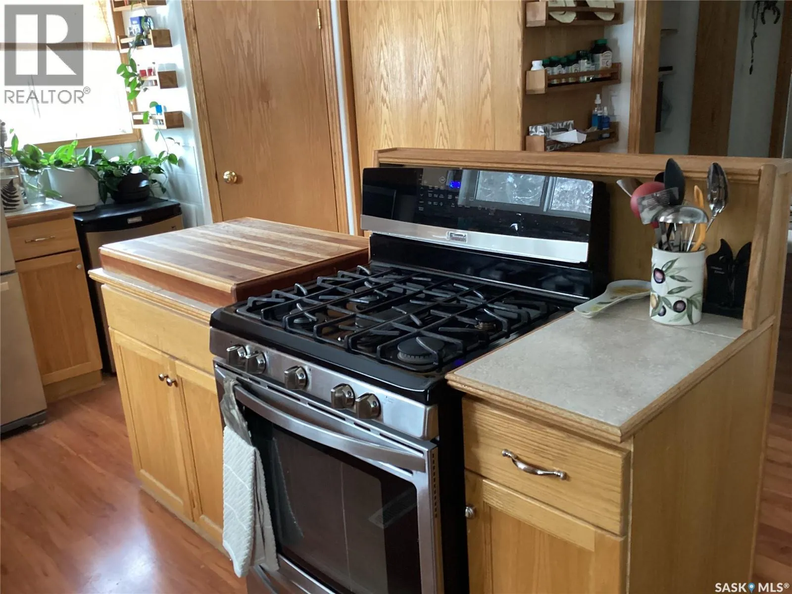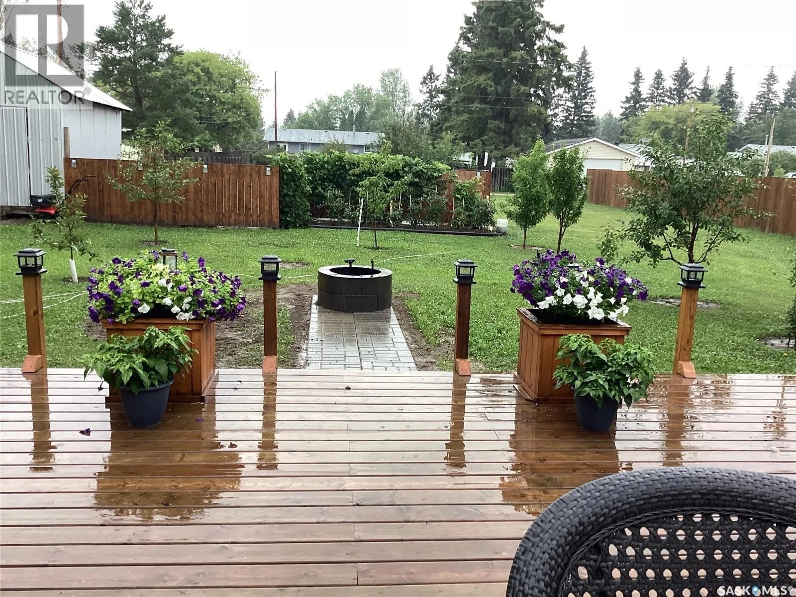 Town of Big River Welcome to Big River. This Home offers a nice large kitchen, with bar top for eating, lots of counter top, cupboards, pantry, and 2 stoves (one gas and one gas stove top) for the person who likes to bake and or can. Main floor offers 2 Bedroom, 4 piece bathroom, large back porch for freezers and or extra fridge. Basement is fully finished with family room, 3 bedrooms, 4 piece bathroom, laundry and cold storage. Beautifully landscaped yard, deck, perennials, partially fenced, raised garden beds, trees, fruit trees, saskatoon bushes, rhubarb, raspberries, haskap bushes. Ask for a list of details on work that has been completed in the home. This home originally had a suite in the basement and can easily be turned back into a legal suite. Call today for a personal tour. (id:27476)